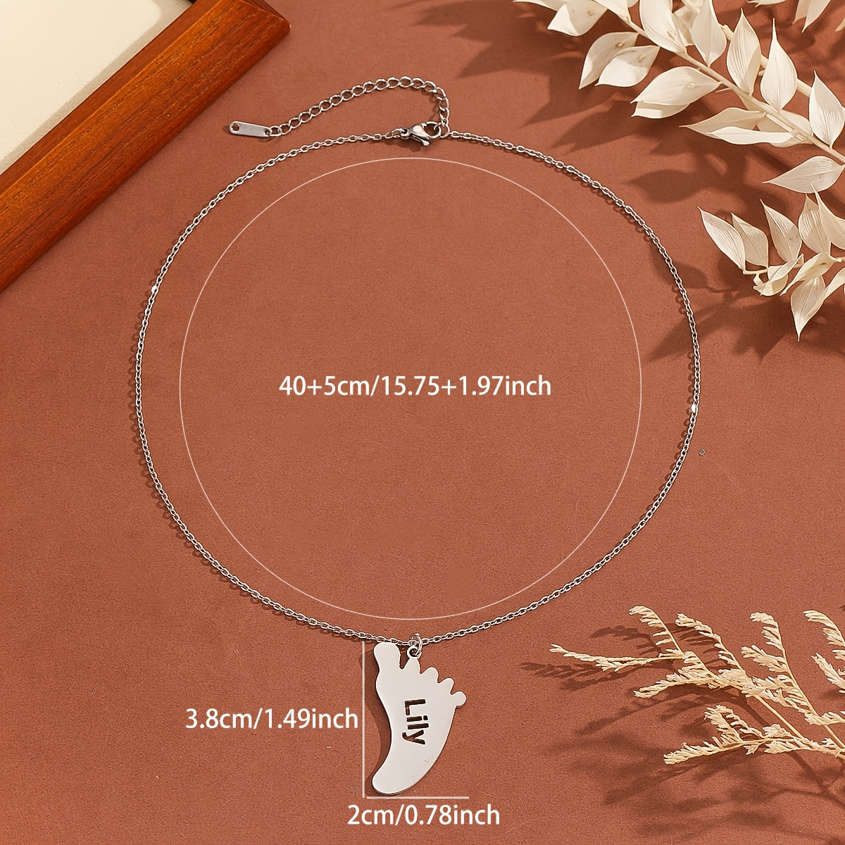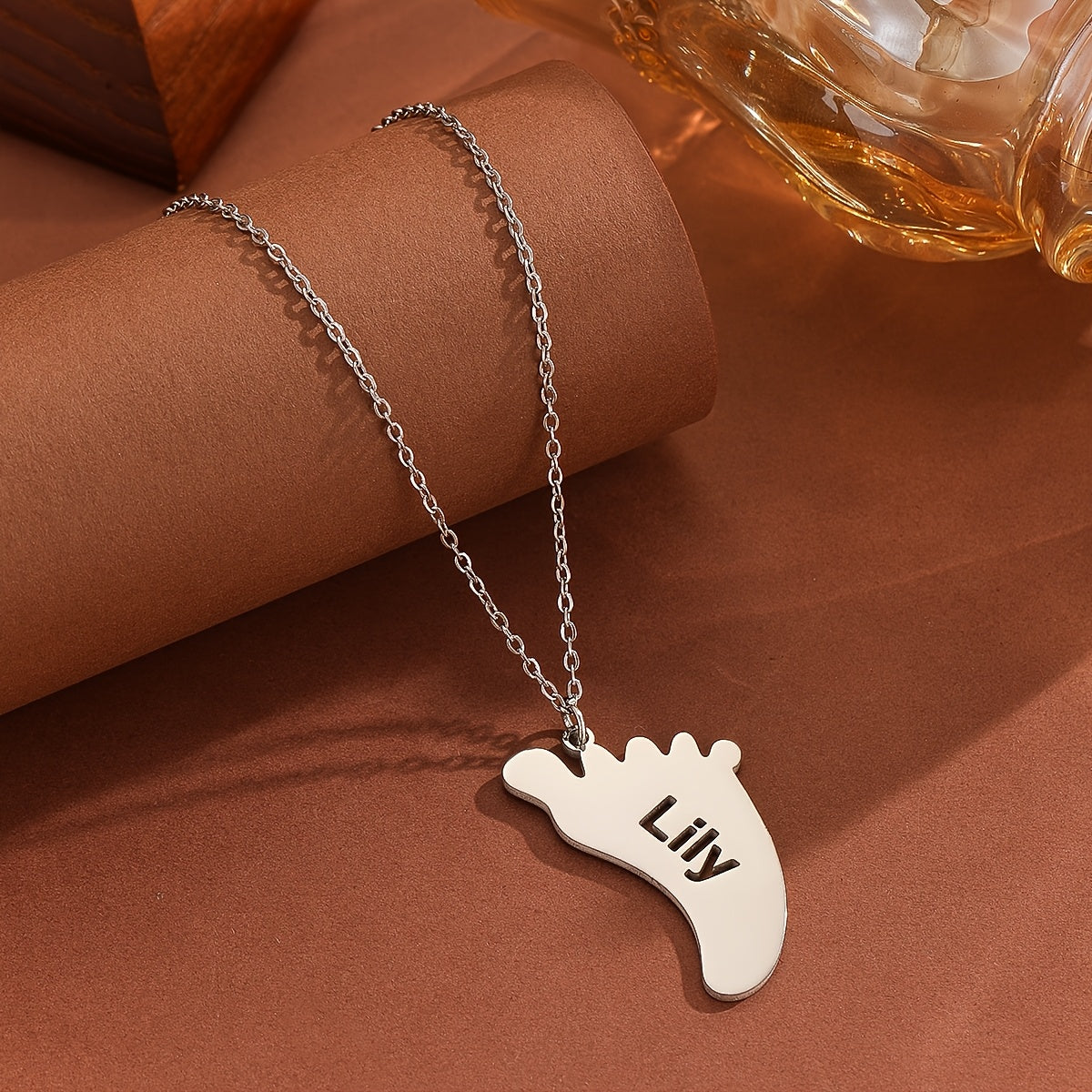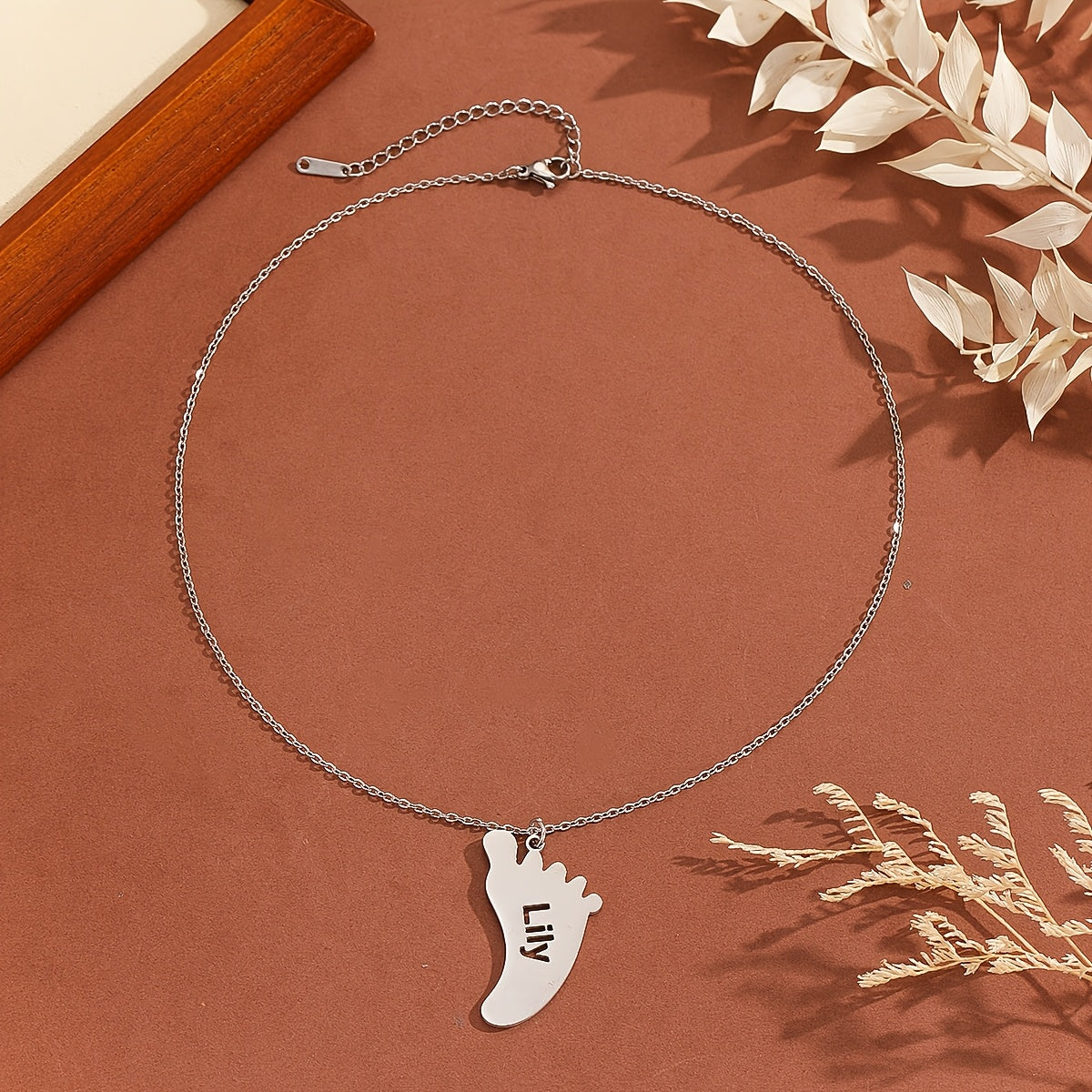 Custom Engraved Baby Footprint Necklace Stainless Steel