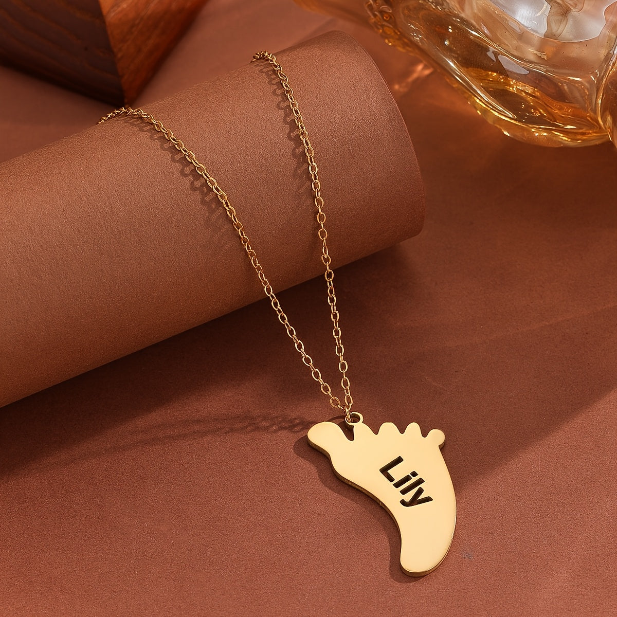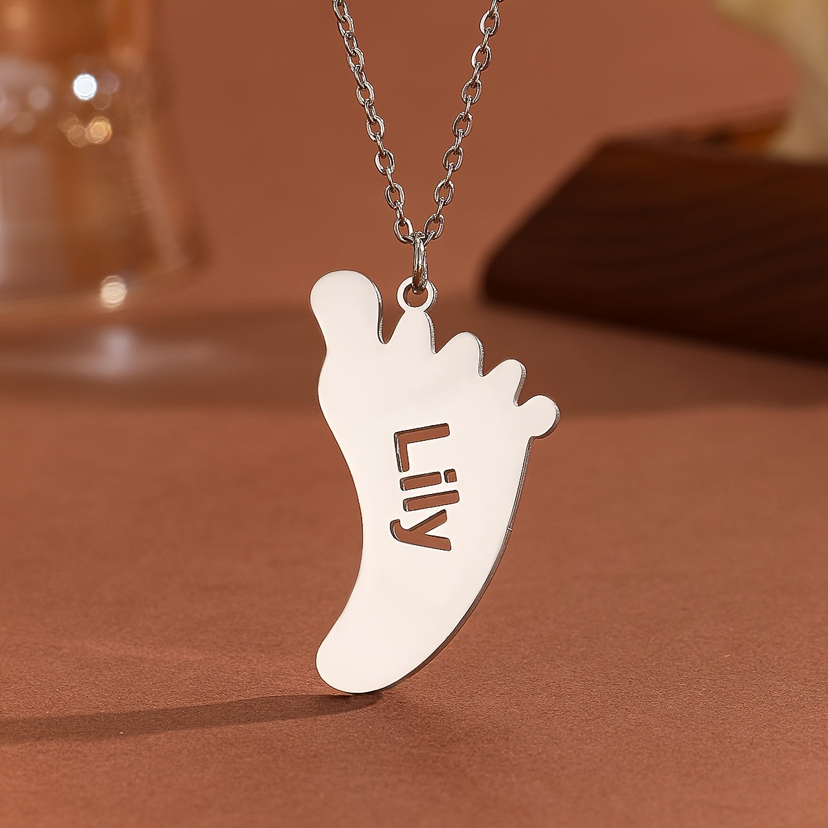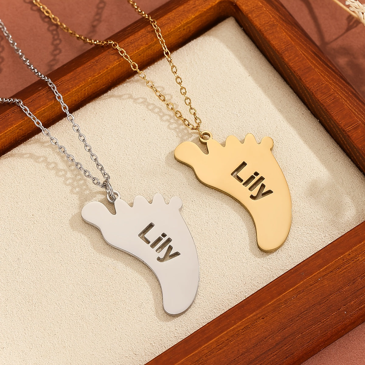 Custom Engraved Baby Footprint Necklace Stainless Steel