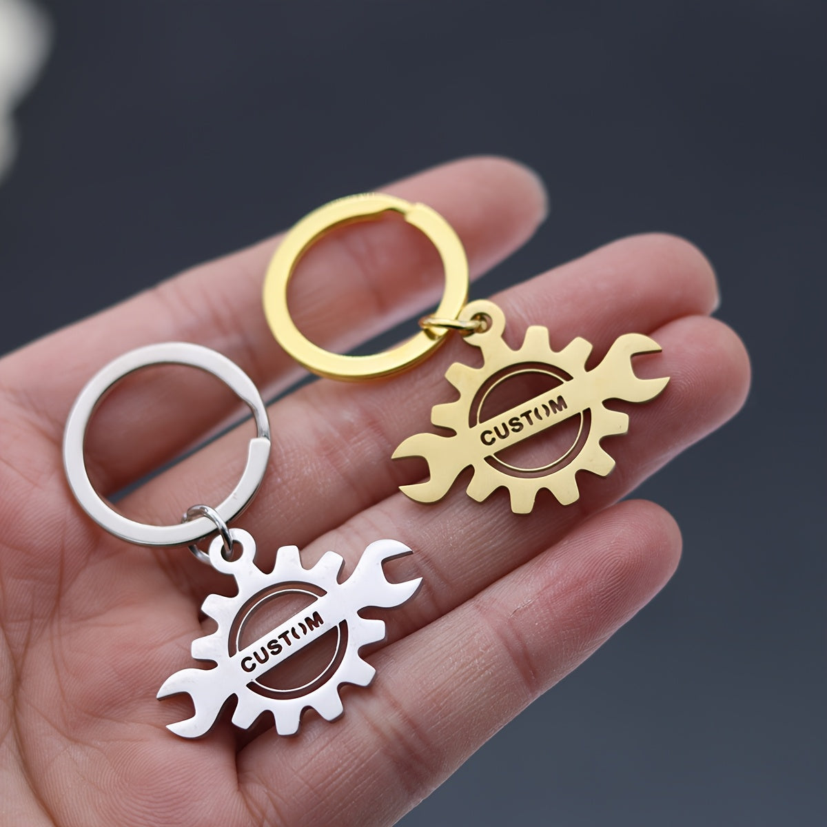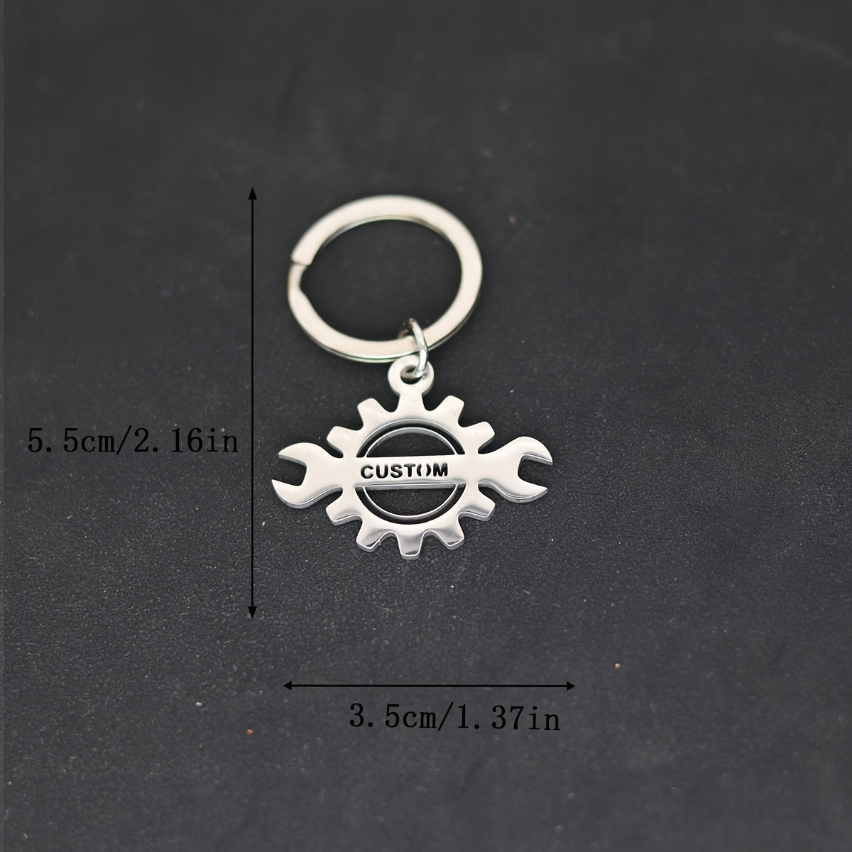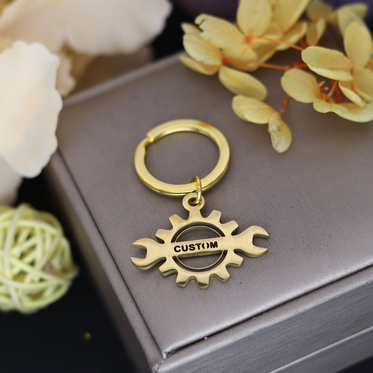 This customized keychain features gears and wrenches design, made of durable stainless steel. It's an ideal birthday gift for men who love mechanical themes.