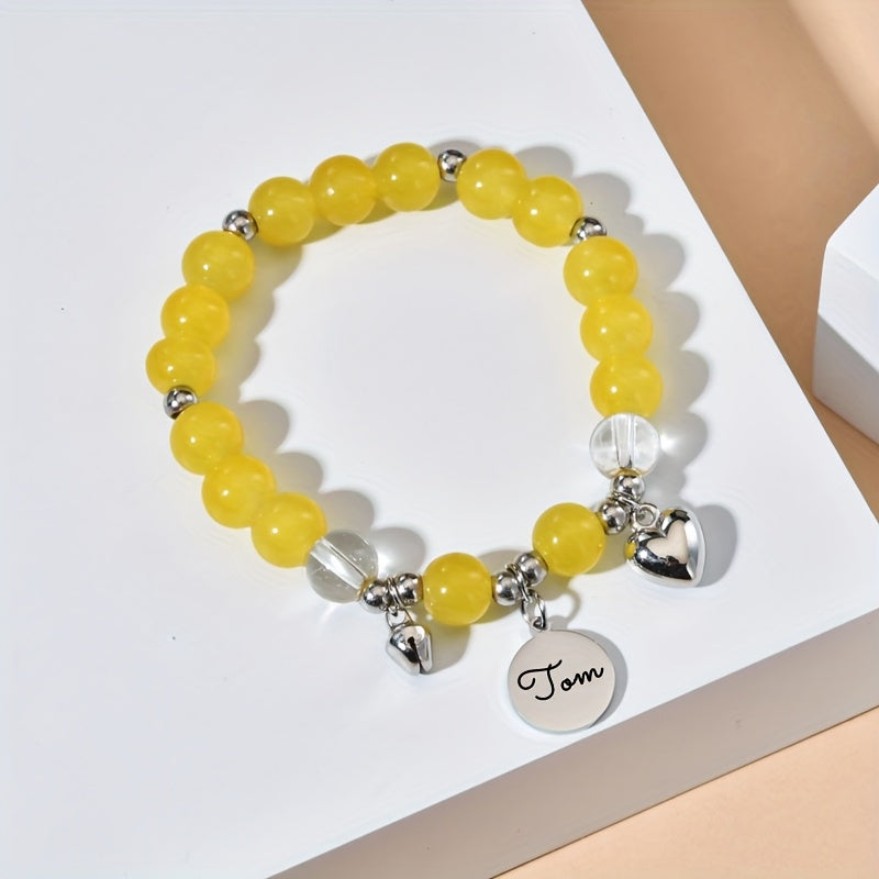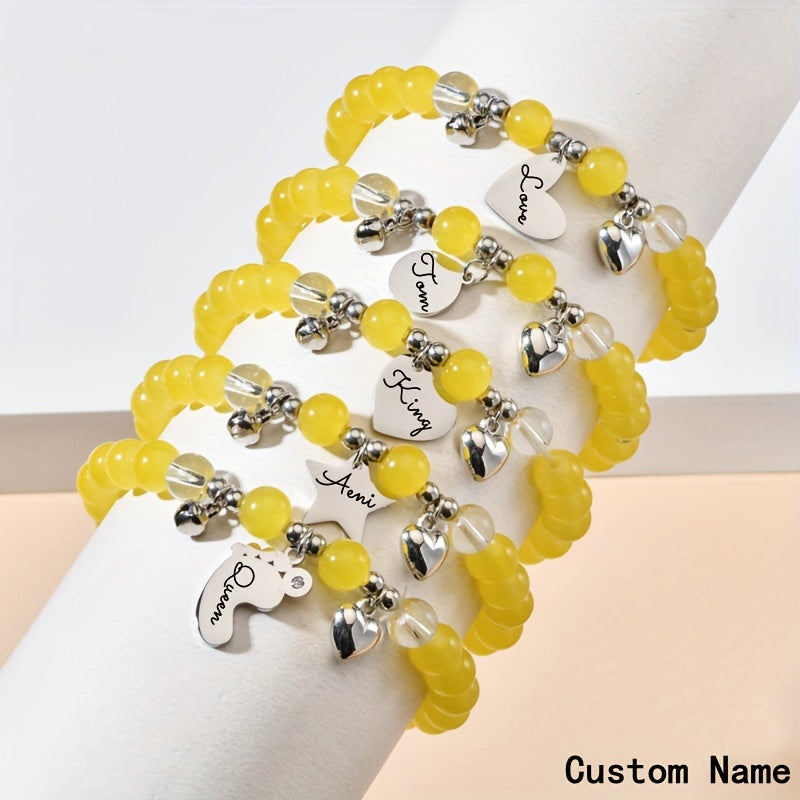 This custom name beaded bracelet is a stylish and thoughtful gift for friends and family. It features a personalized pendant that adds a special touch to any outfit. Perfect for all seasons and occasions.