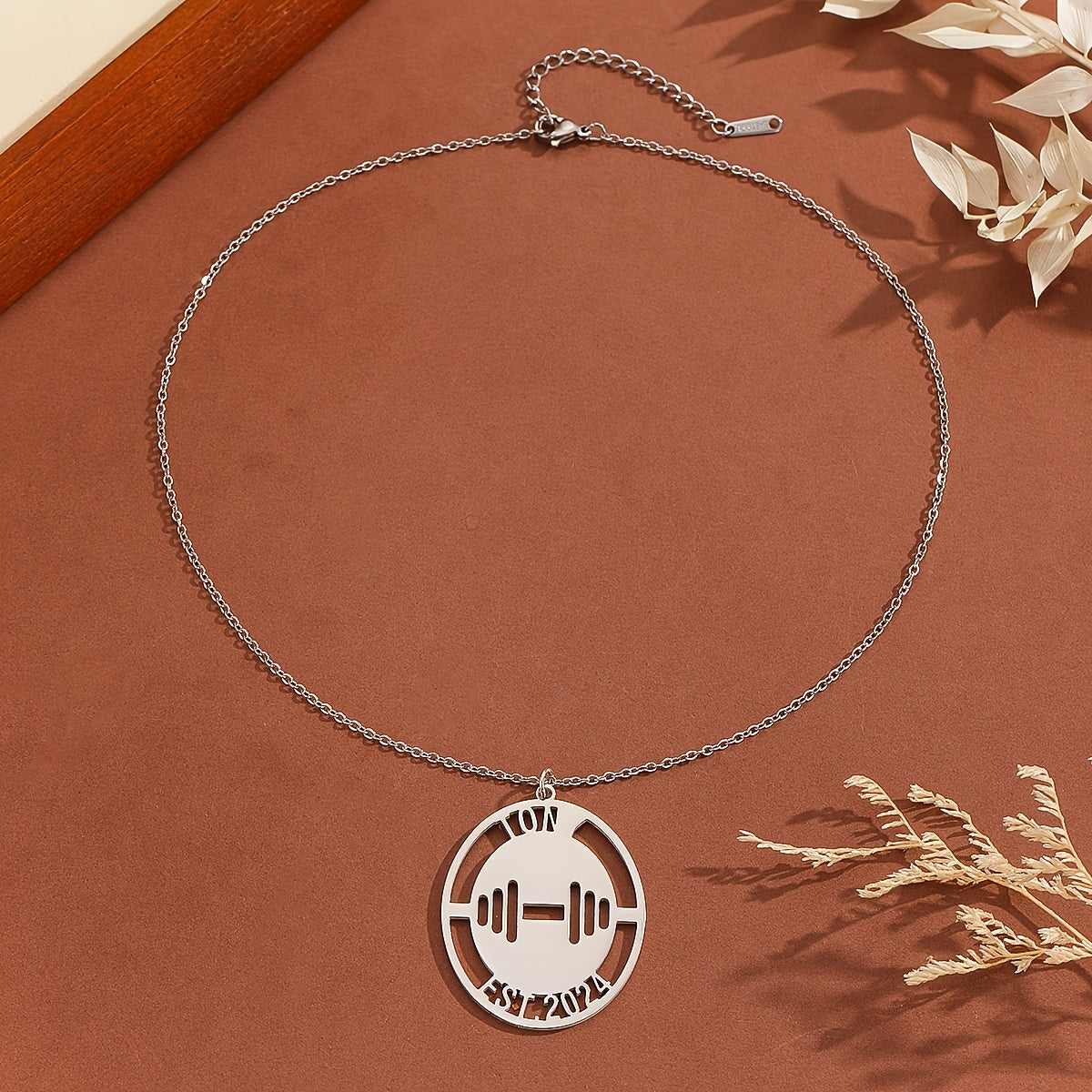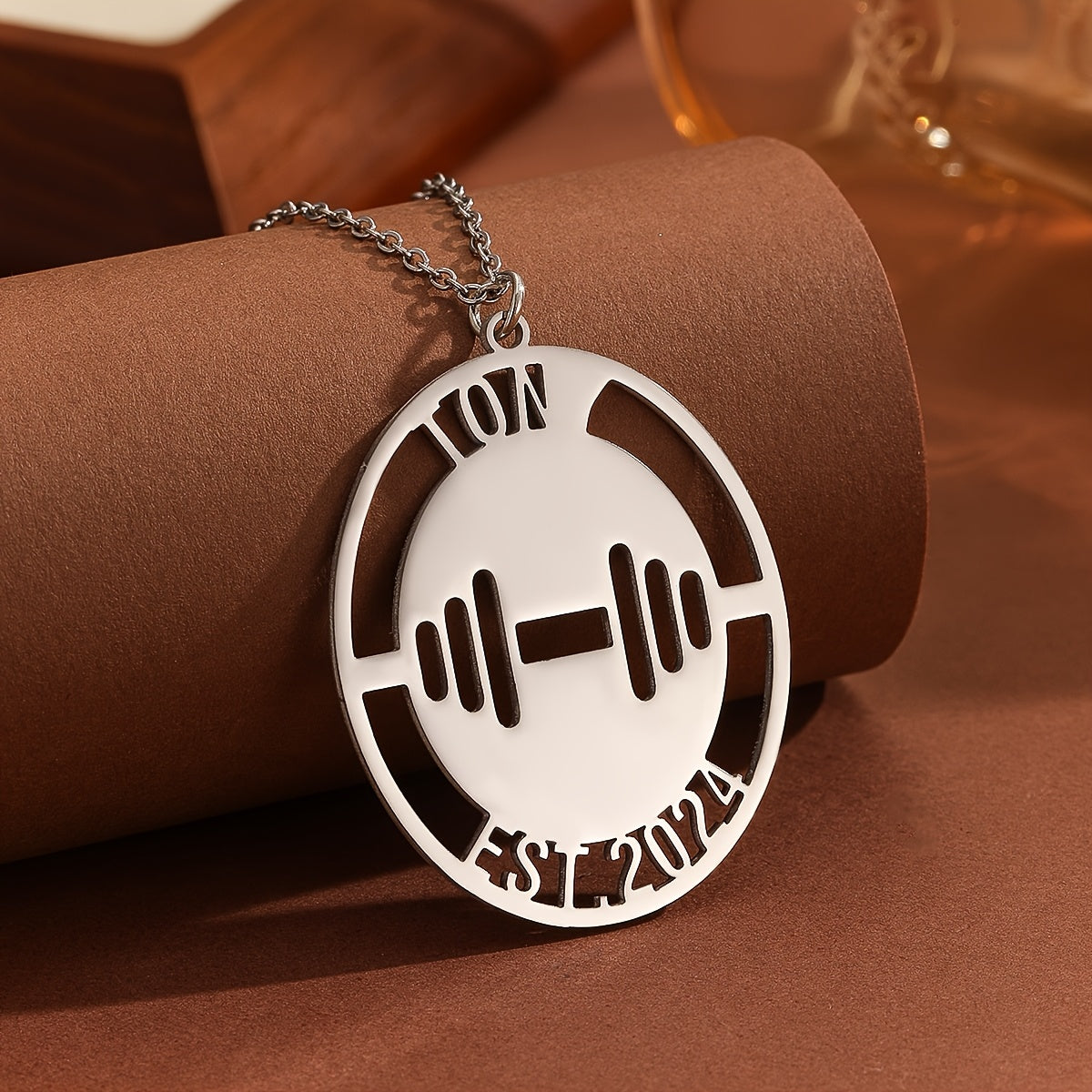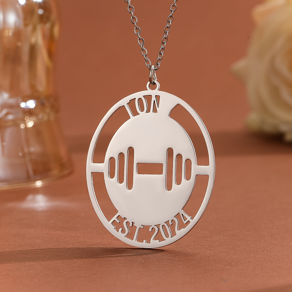 Get your own personalized name and number engraved on this stylish dumbbell shape pendant made of stainless steel.