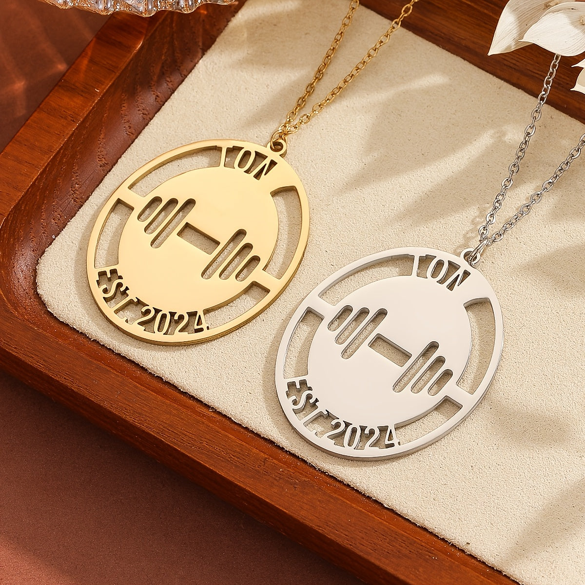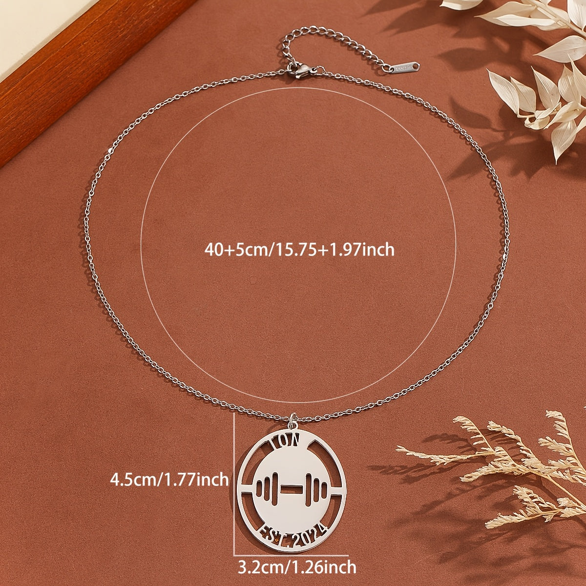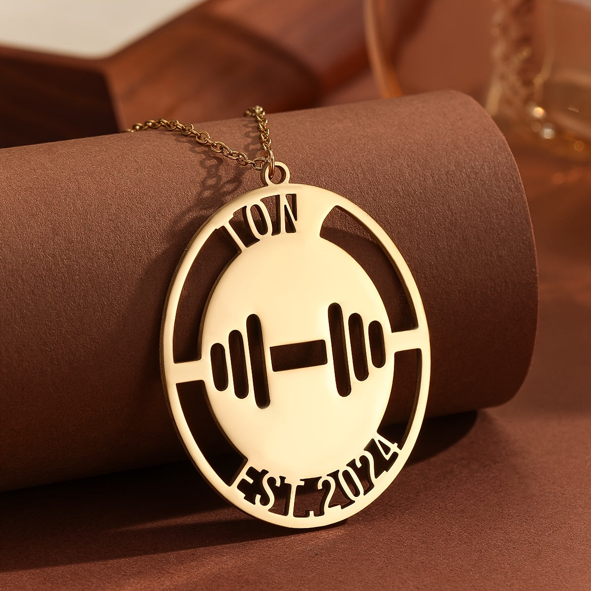 Get your own personalized name and number engraved on this stylish dumbbell shape pendant made of stainless steel.