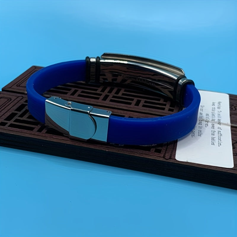 This personalized men's leather bracelet features a stainless steel charm that can be customized with your own unique text. A stylish accessory for men.