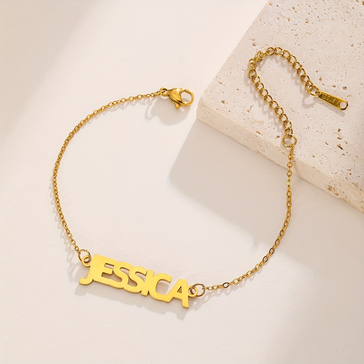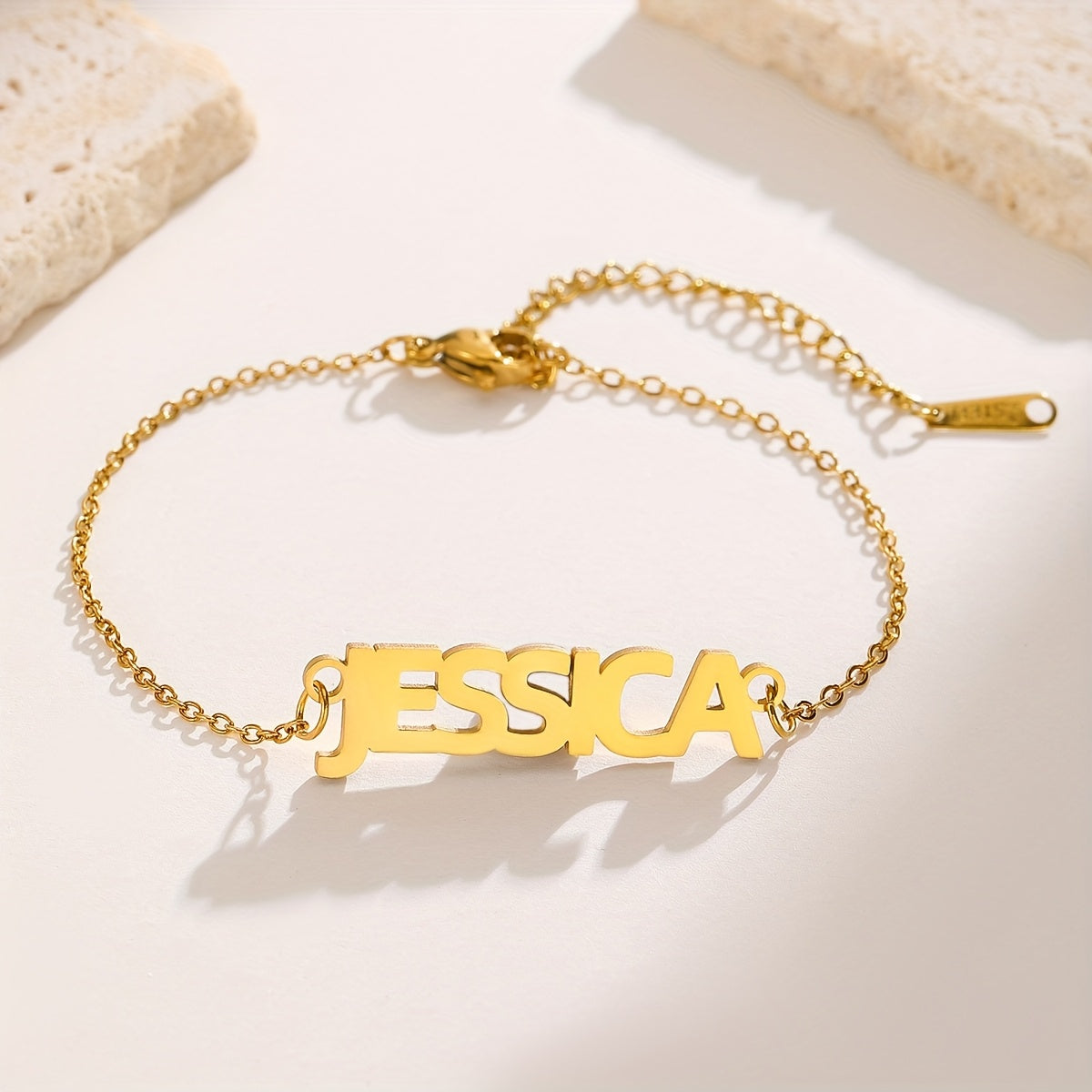 Get this personalized stainless steel bracelet with signature letter J for women.
