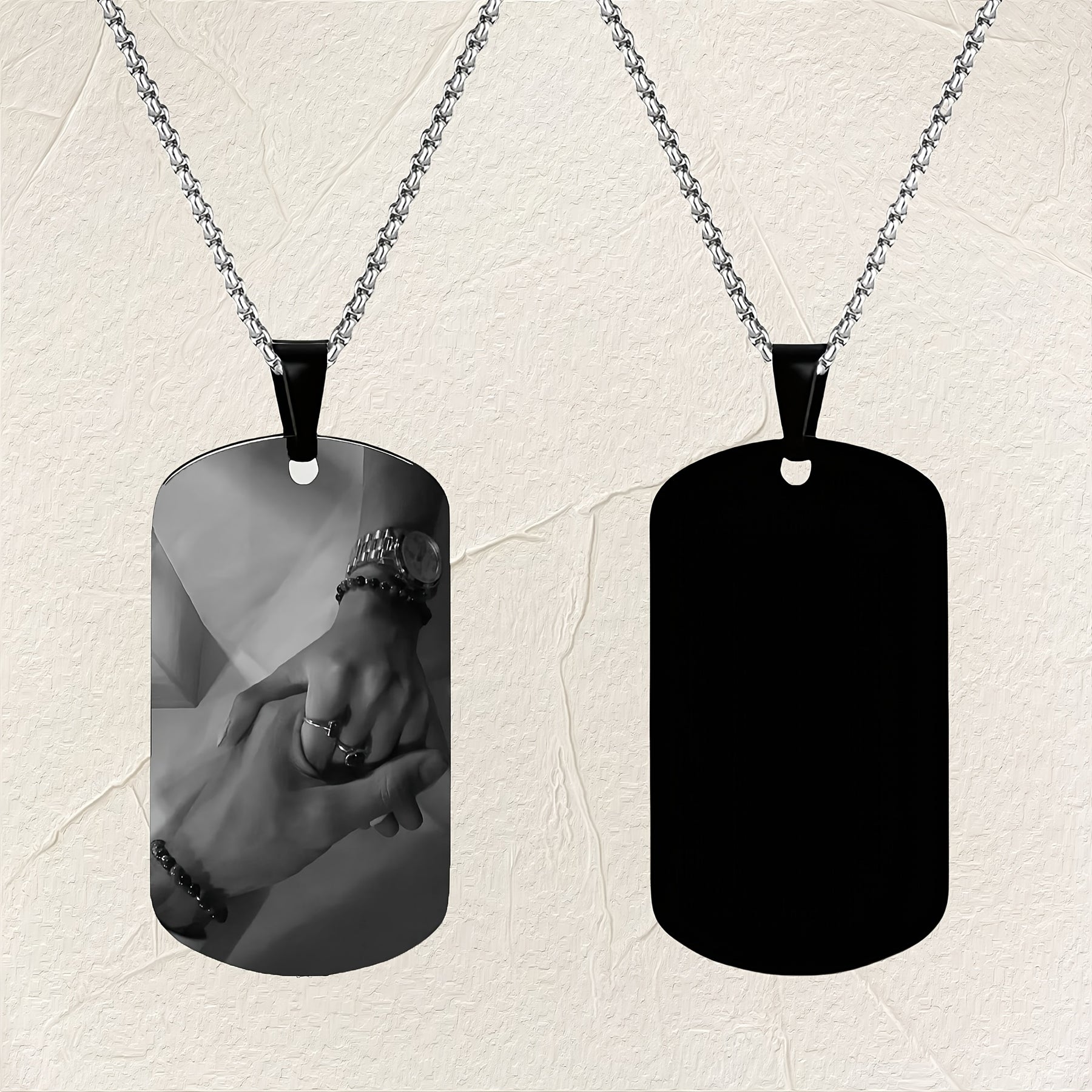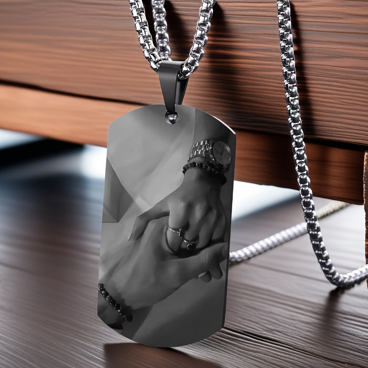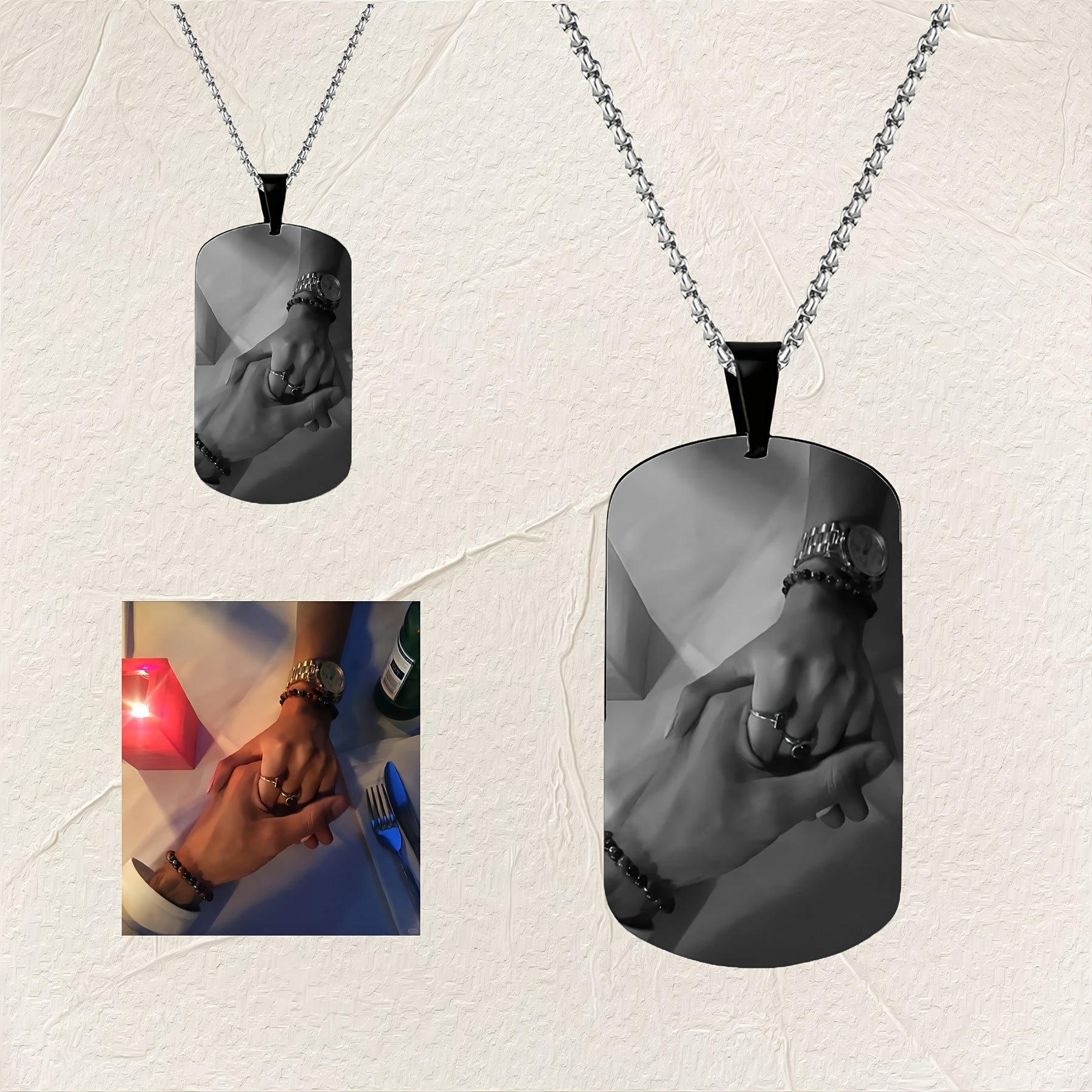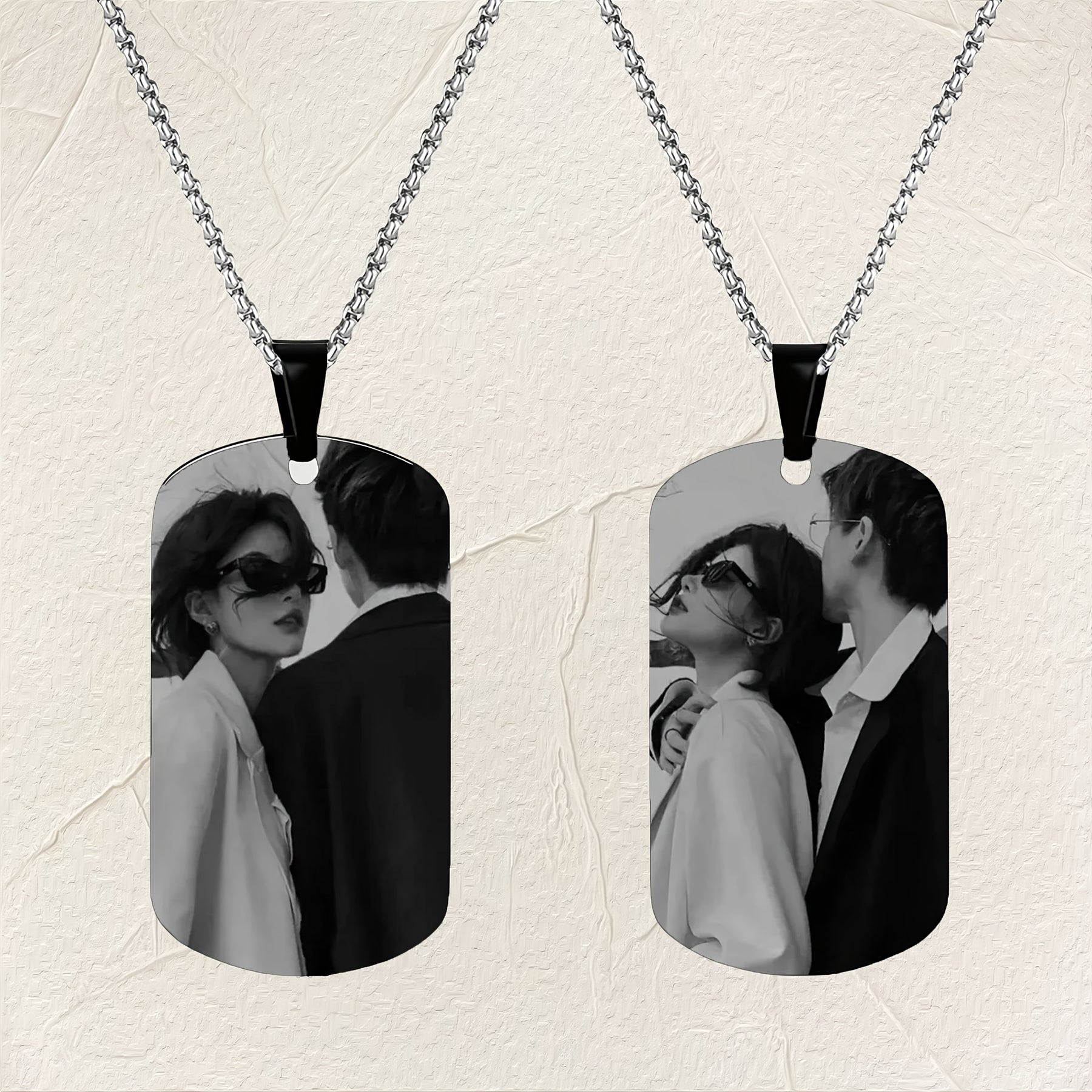 This personalized stainless steel necklace features custom engravings of meaningful photos, making it a perfect gift for men, couples, boyfriends, and family members. The necklace is durable, waterproof, and designed to last.