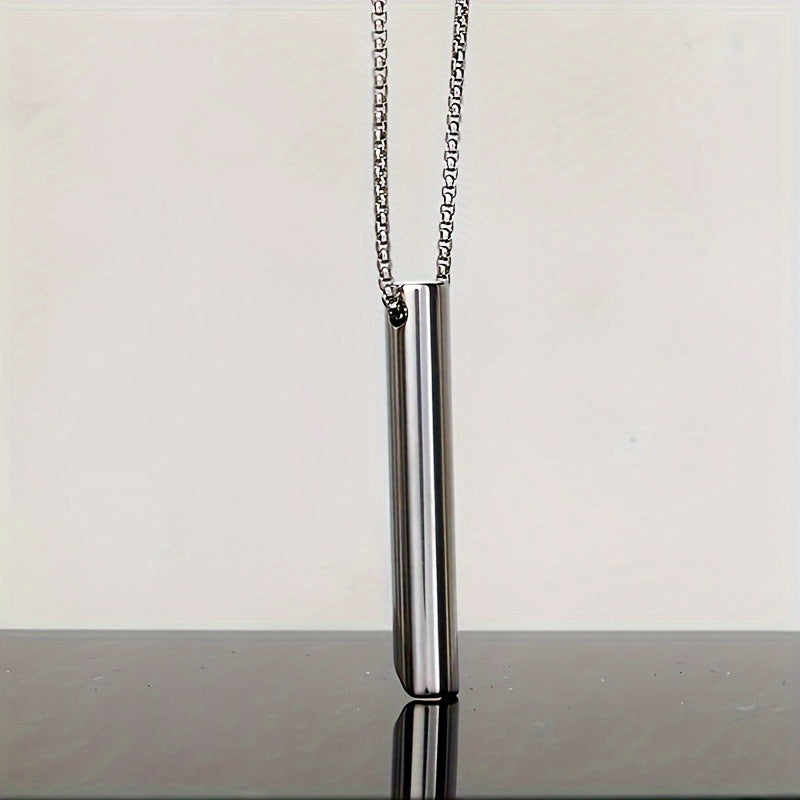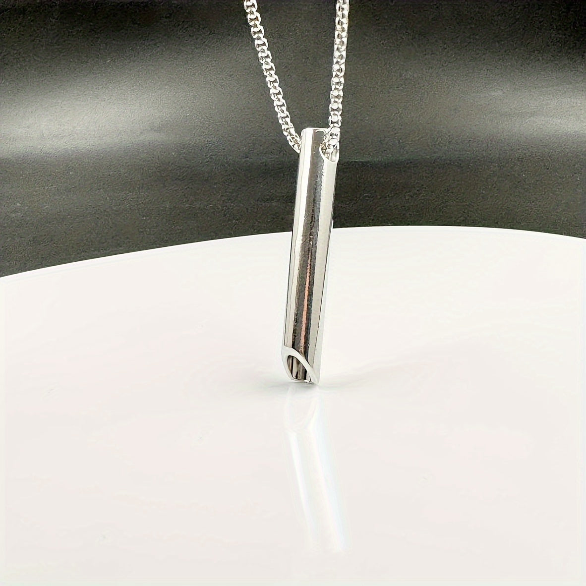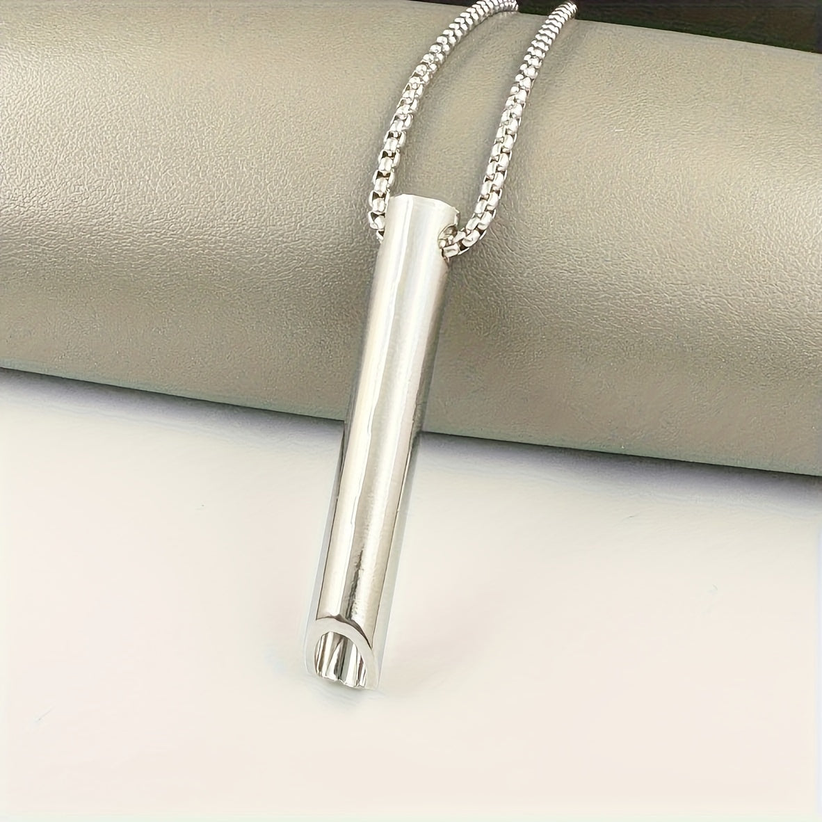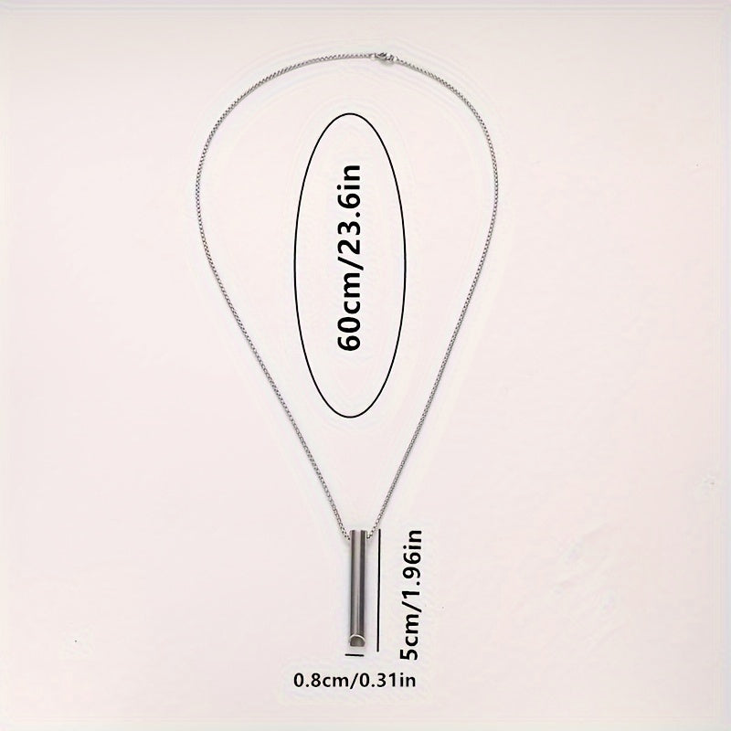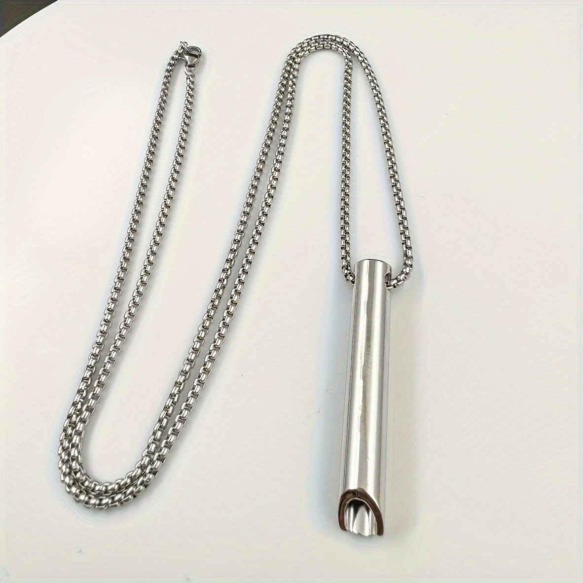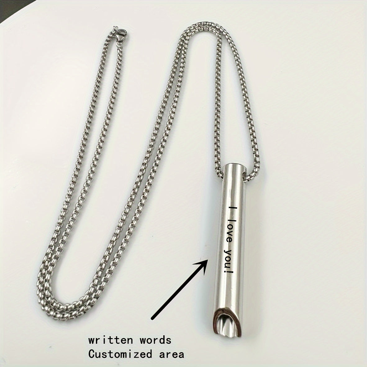 Elegant stainless steel necklace featuring a yoga meditation whistle pendant, designed to help relieve anxiety through mindful breathing. Personalize the pendant with engraved words for a unique touch.