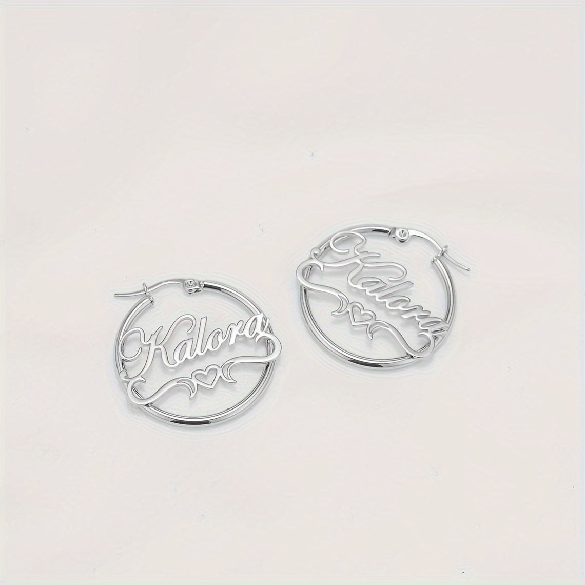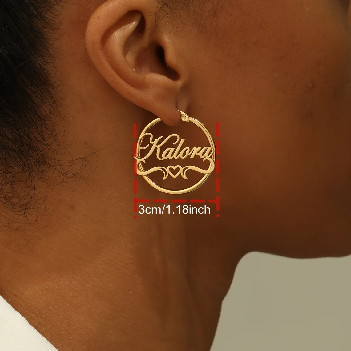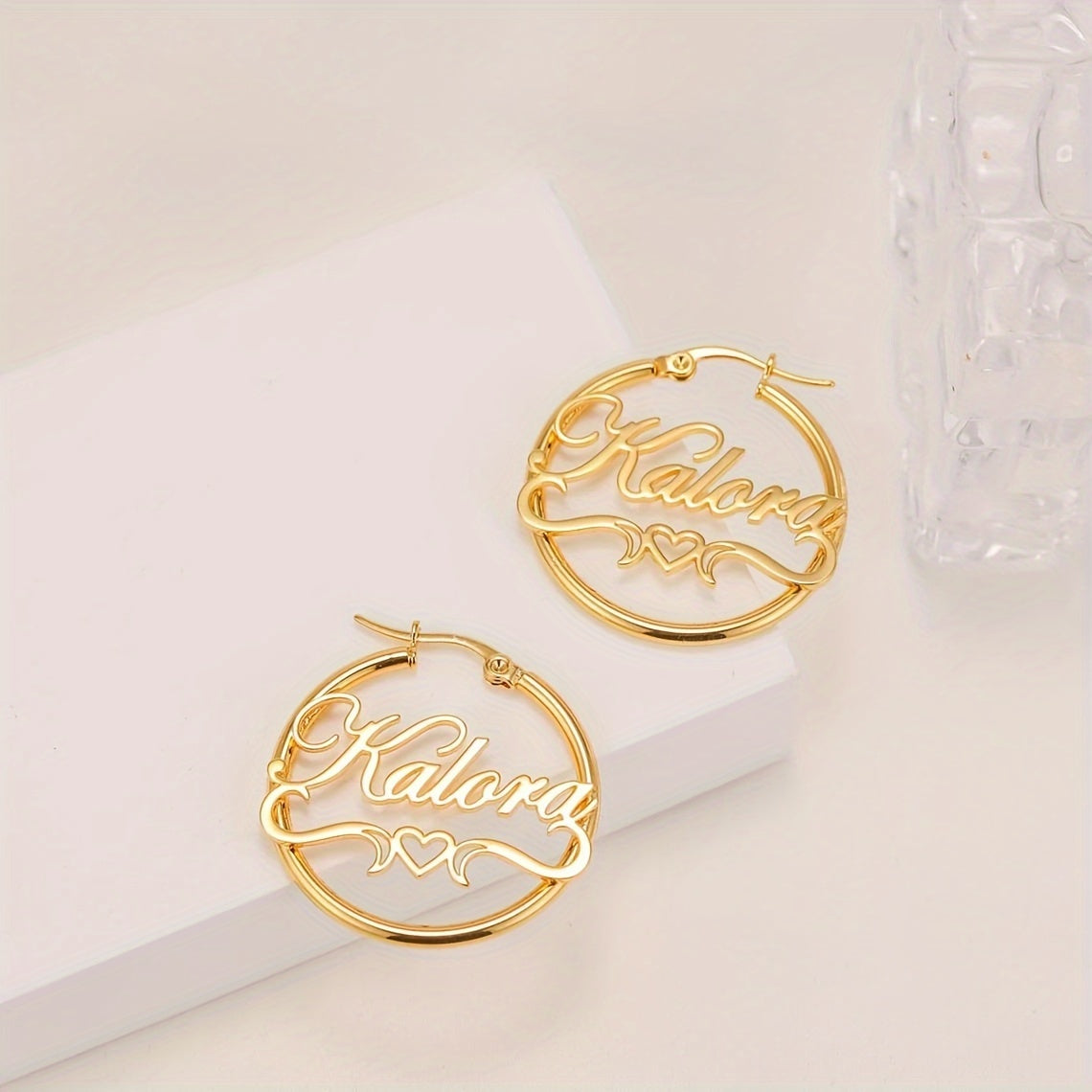 Add a touch of elegance to your daily look with these heart-themed stud earrings. Made of stainless steel with 18K golden plating, these earrings are customizable with your name and feature a hollow ribbon design.