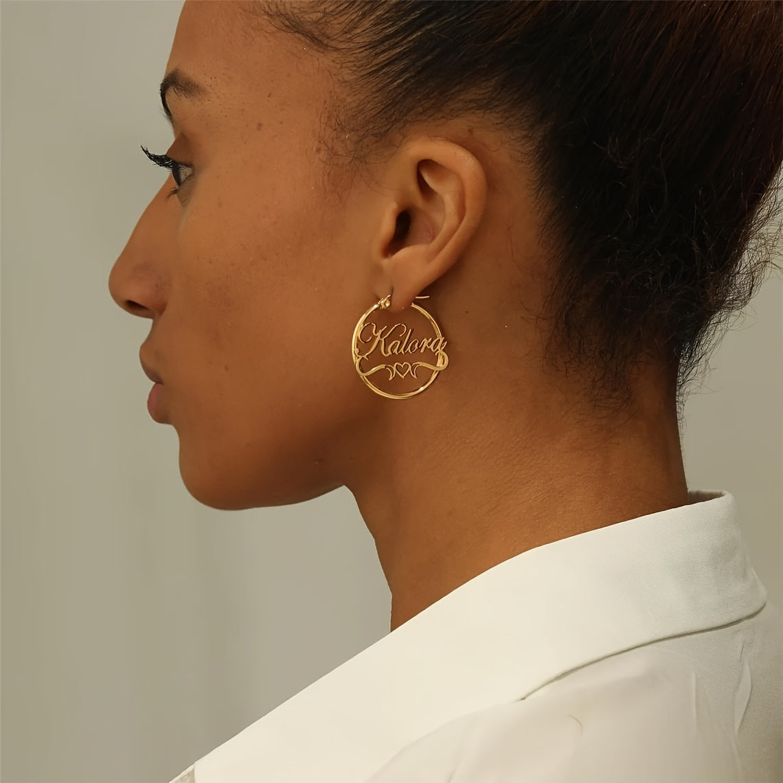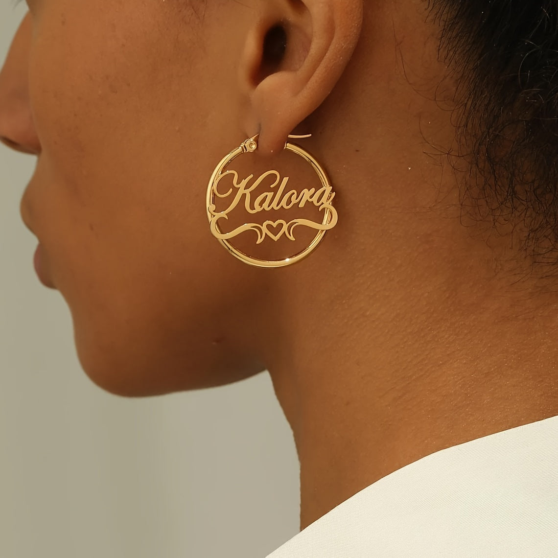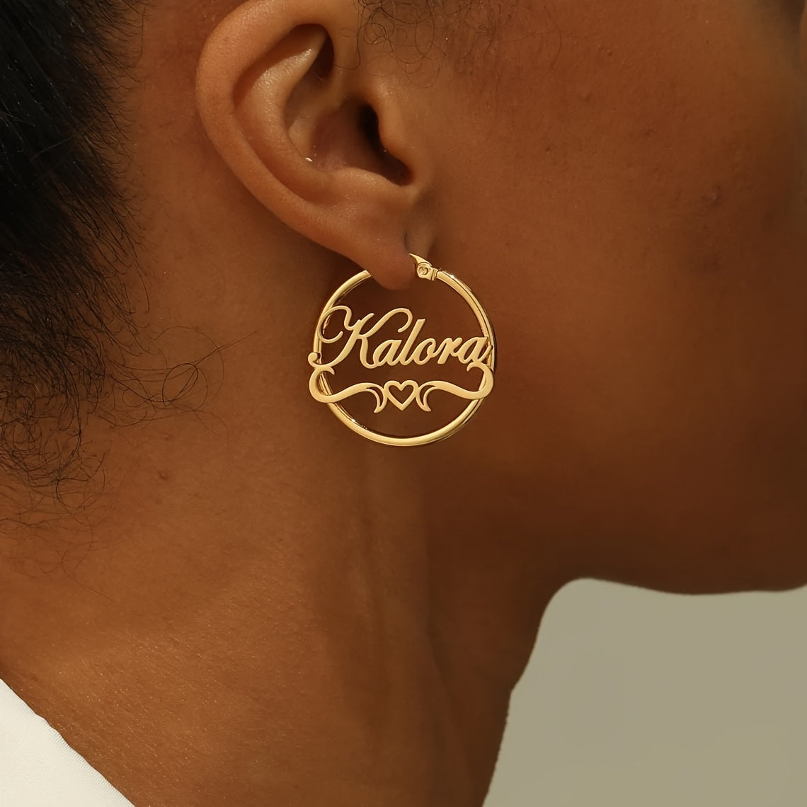 Add a touch of elegance to your daily look with these heart-themed stud earrings. Made of stainless steel with 18K golden plating, these earrings are customizable with your name and feature a hollow ribbon design.