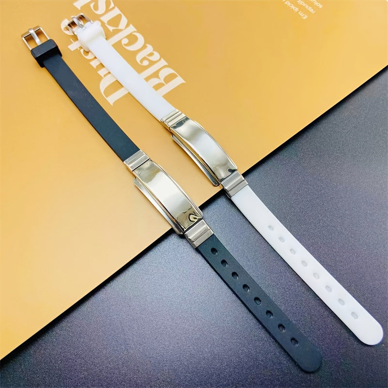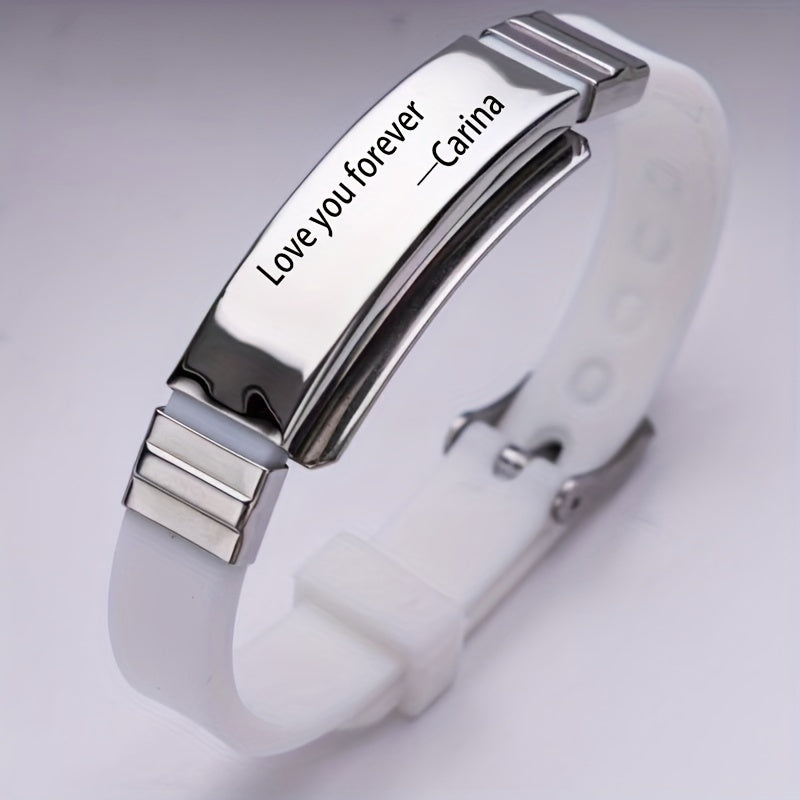 This silicone bracelet is perfect for men and women, featuring a sporty style that can be customized. It makes a great gift for parents, couples, anniversaries, and birthdays.