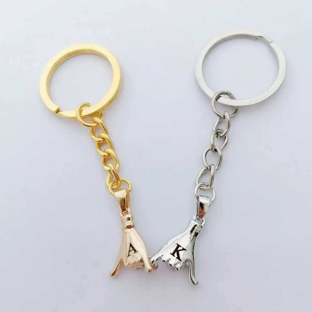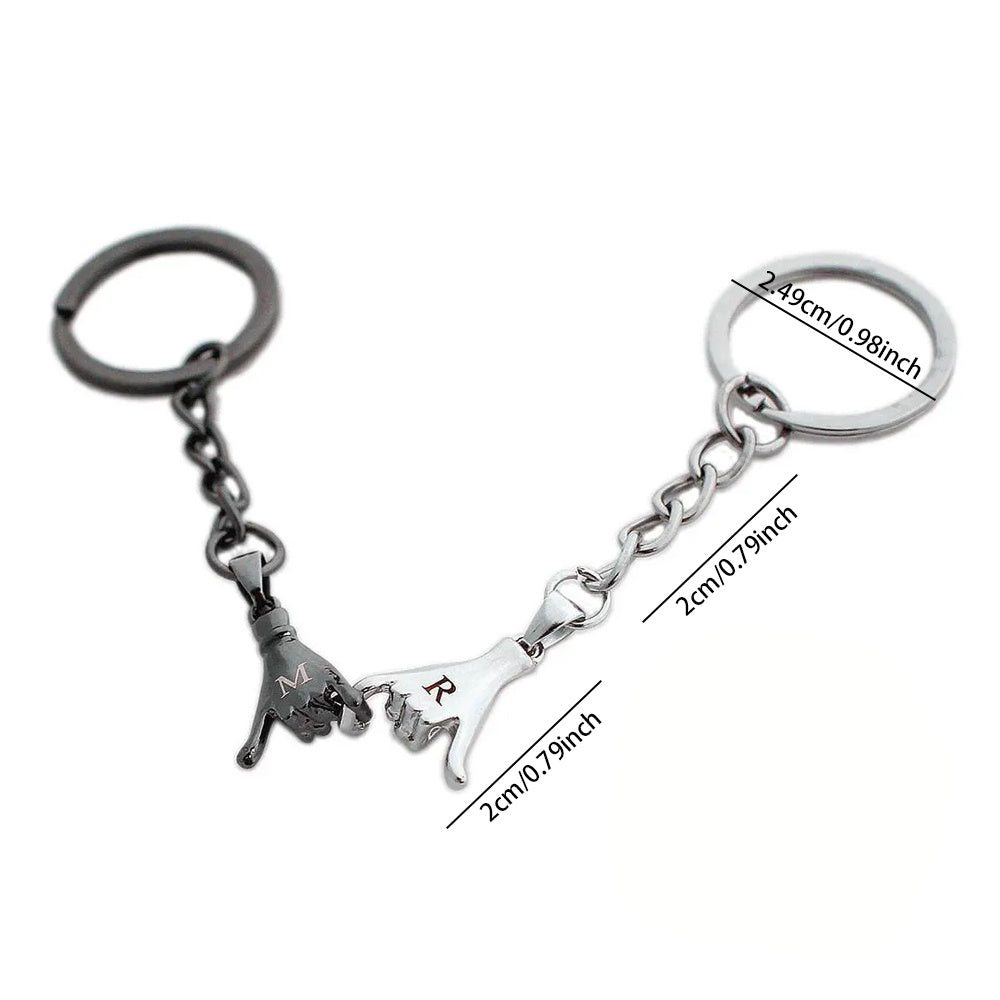 This set includes 2pcs personalized finger keychains perfect for couples. Great for newlywed wedding anniversary or any special occasion.