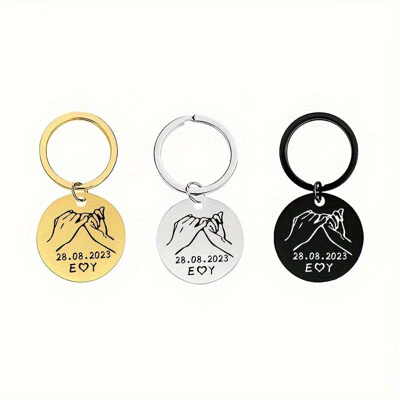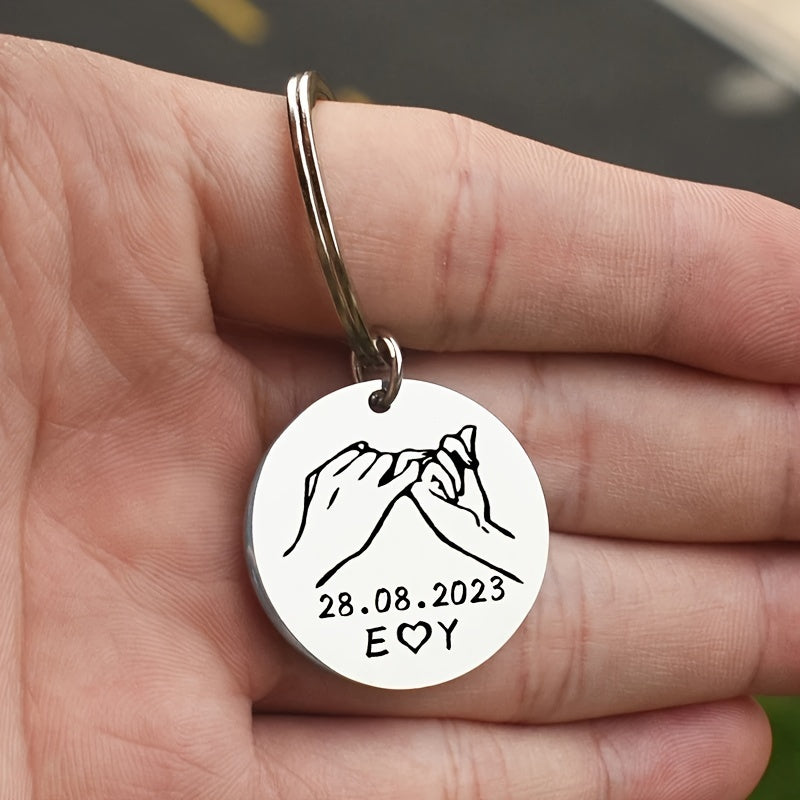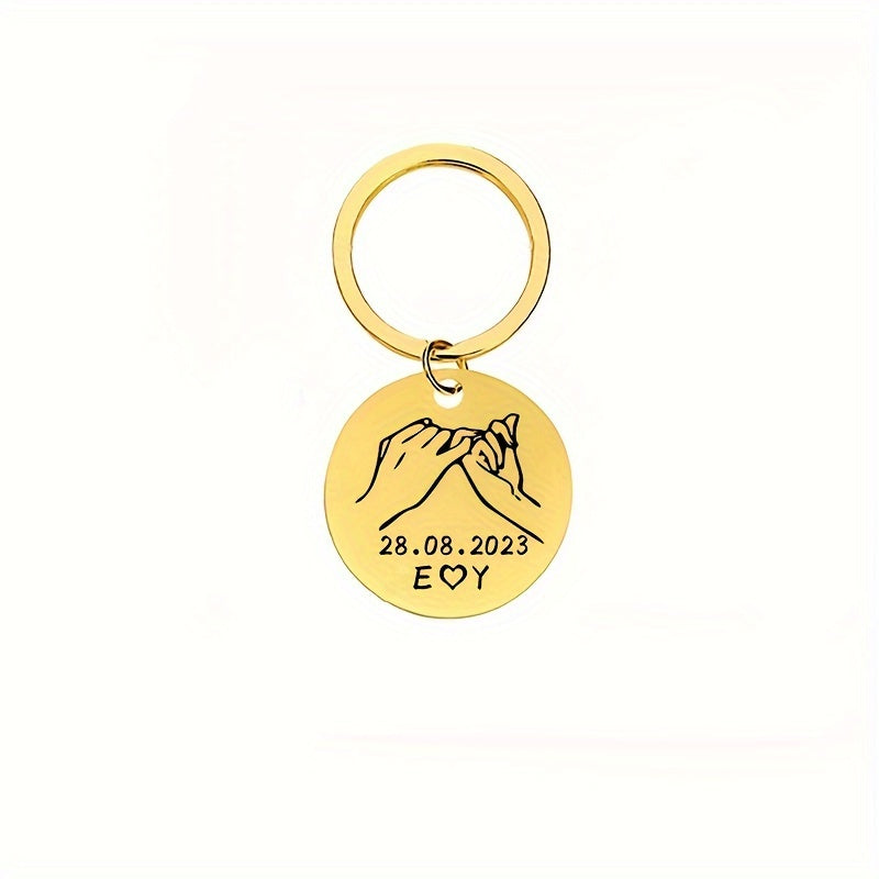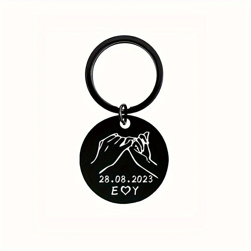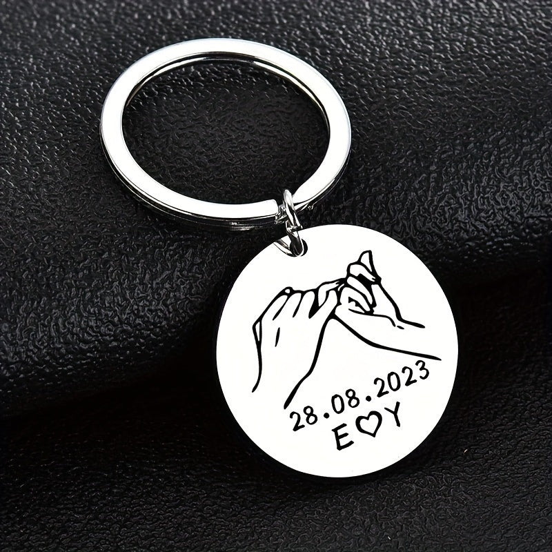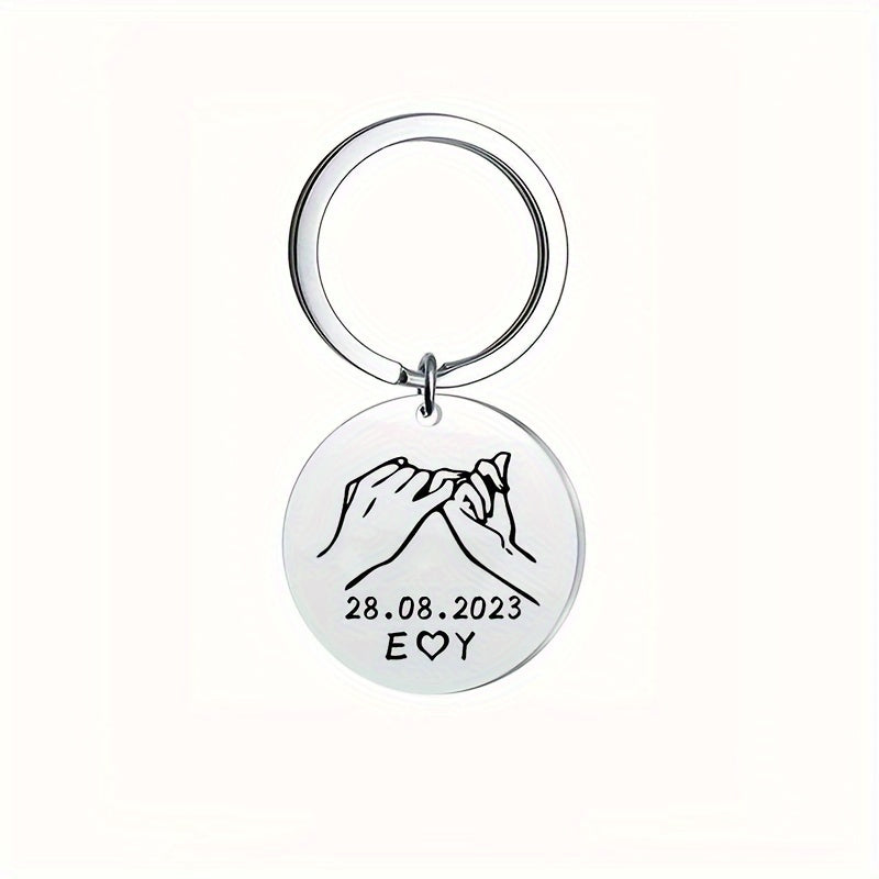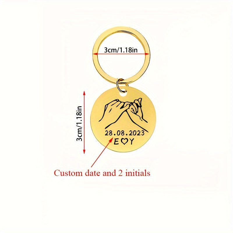 This stainless steel keychain can be personalized with a promise date, 2 letters, and initials. A perfect gift for your wife, husband, or a couple.