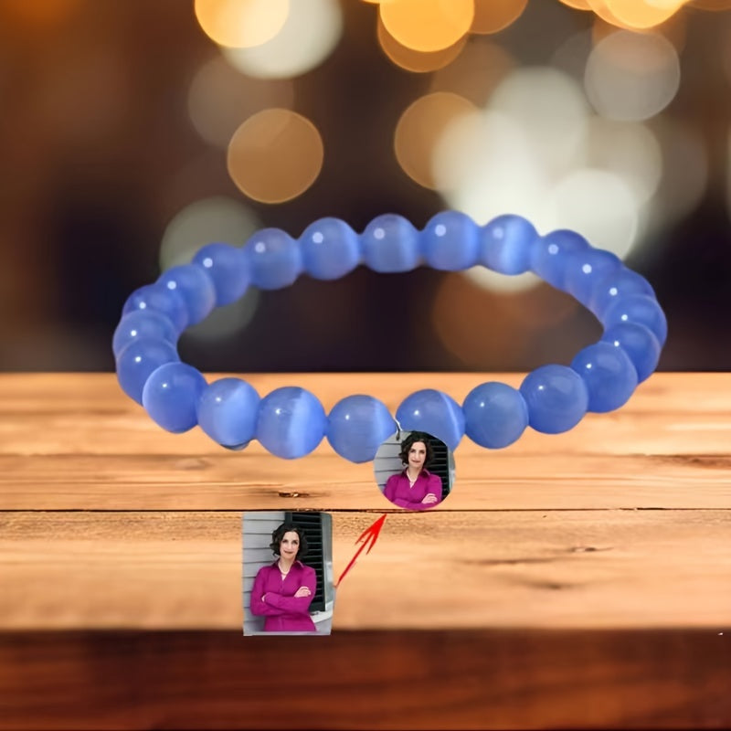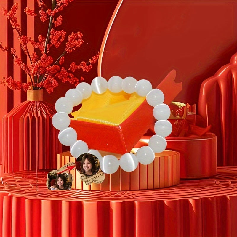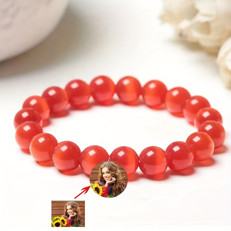 This beaded bracelet is a personalized piece of jewelry featuring a customized photo decor. It is designed to be delicate and perfect for females who love unique accessories.