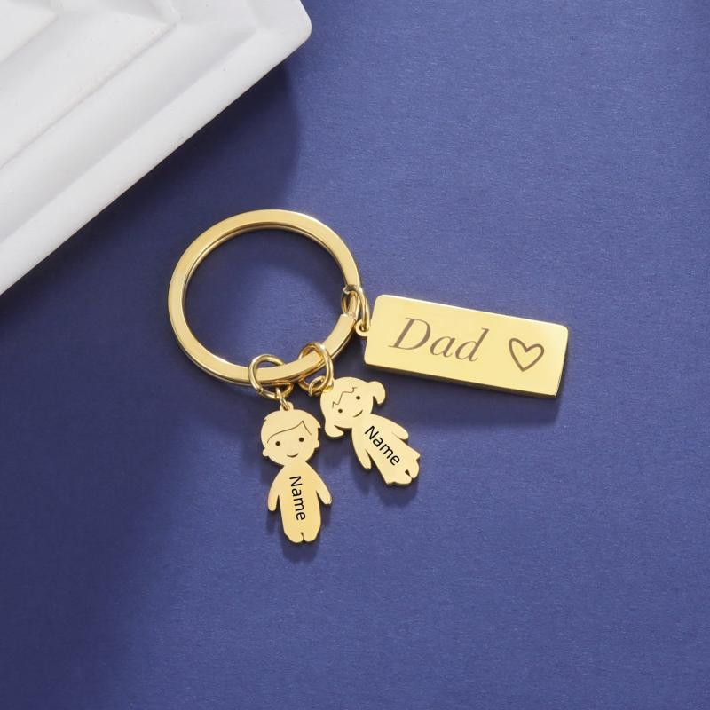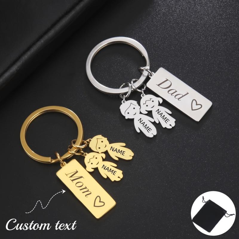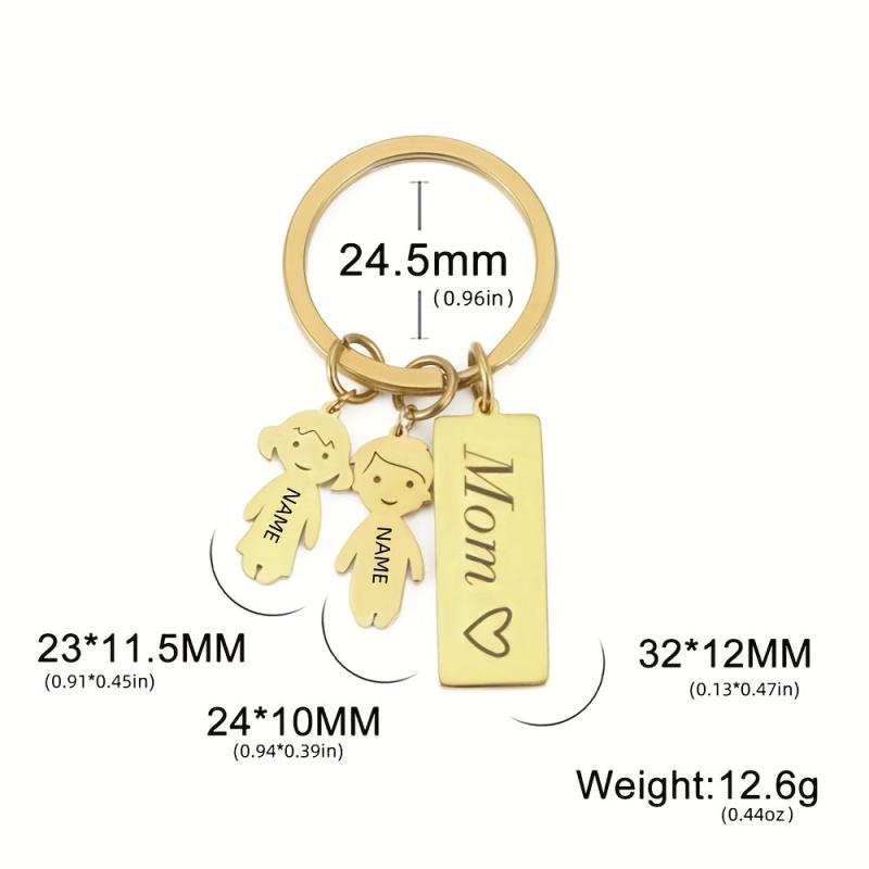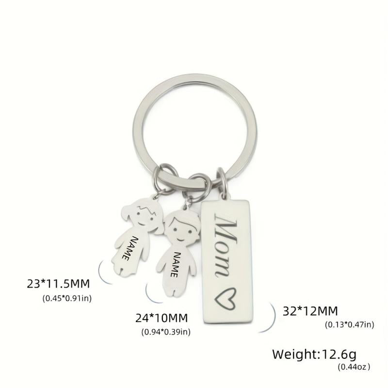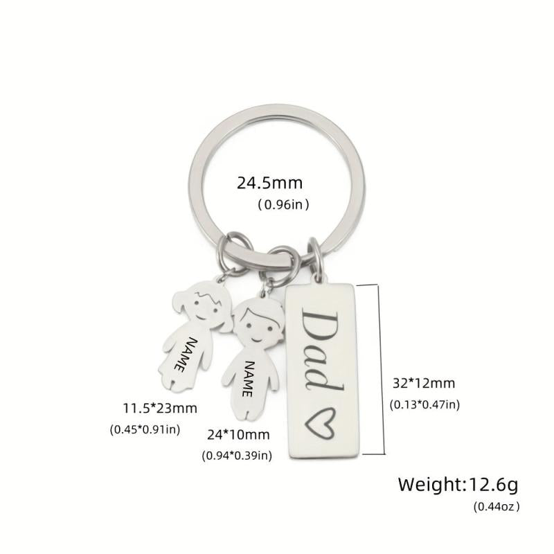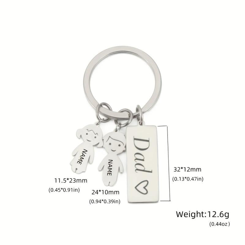 Get this personalized square geometric keychain made of stainless steel with an engraved name, perfect for both daughters and sons. A neutral style keychain for dads, moms, and the whole family.