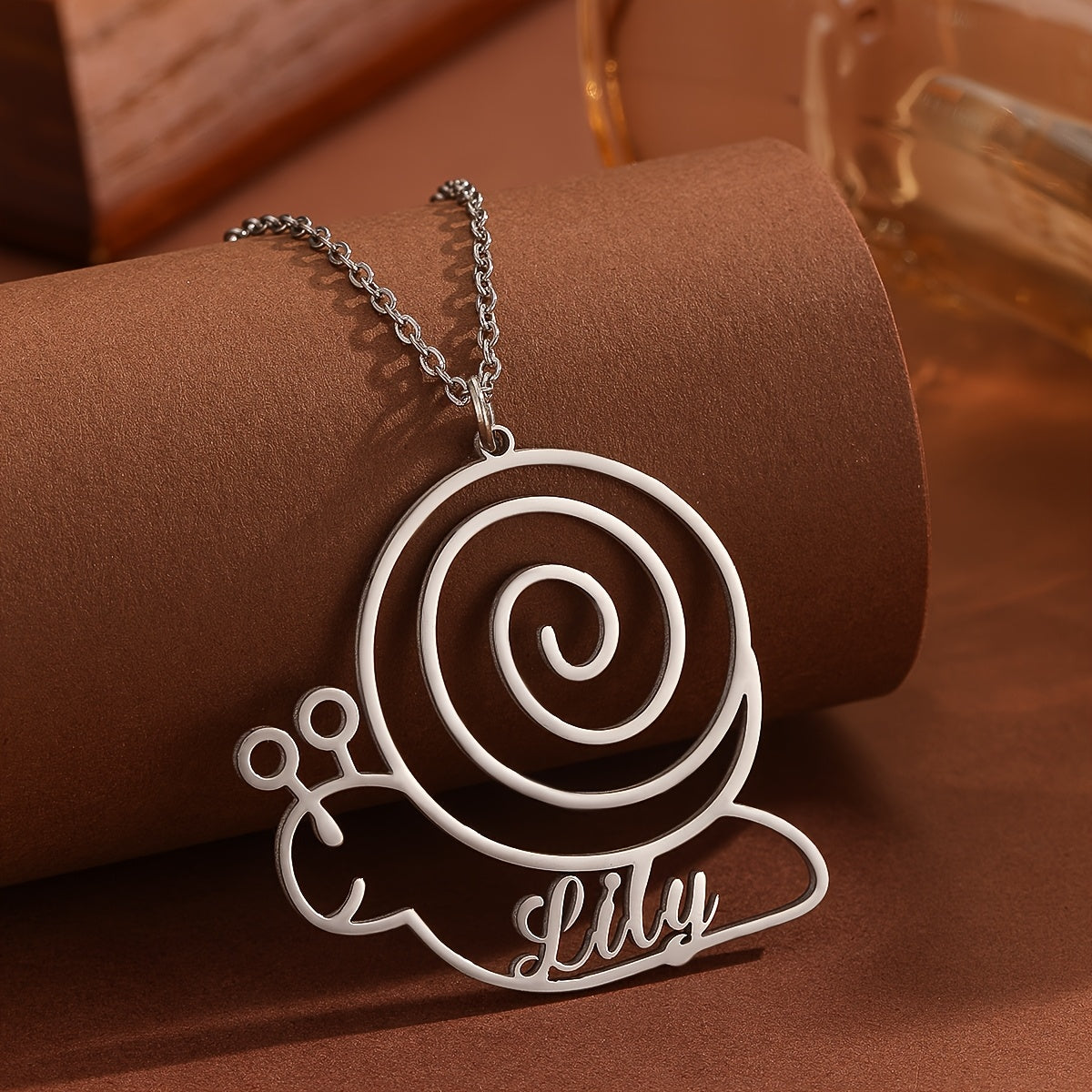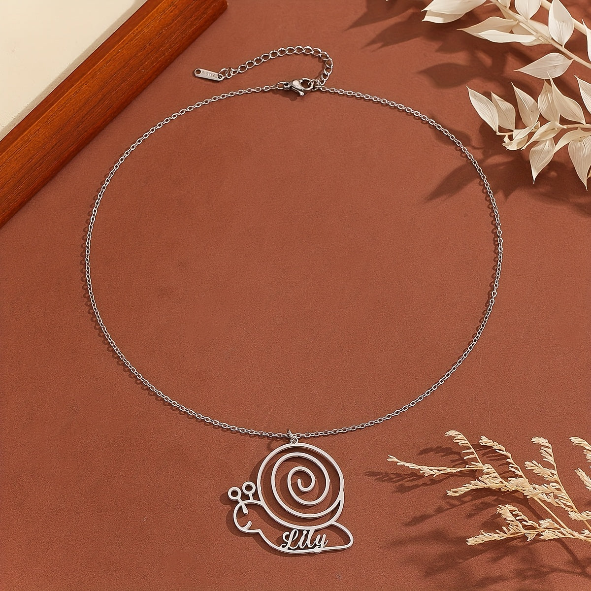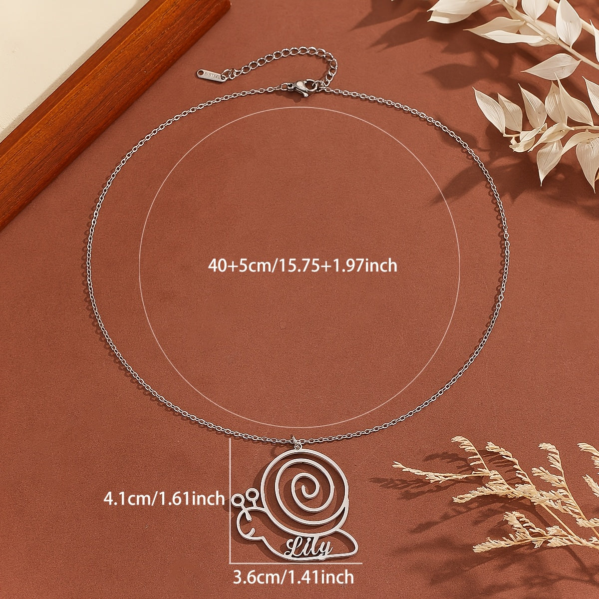 Engraved Snail Name Pendant Necklace Stainless Steel Jewelry Gift