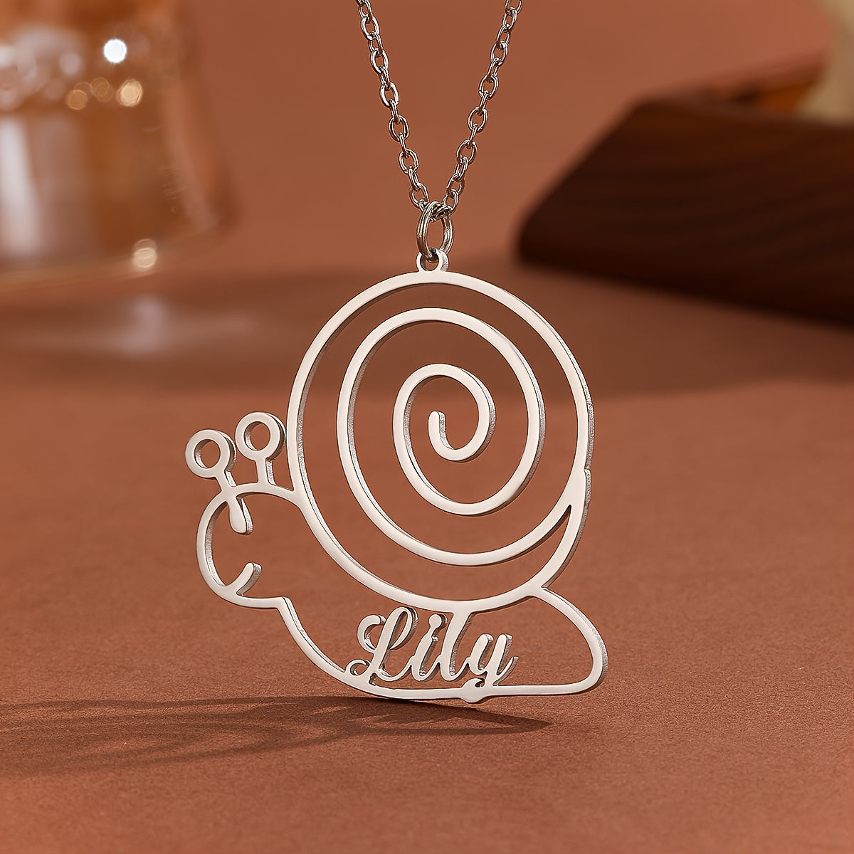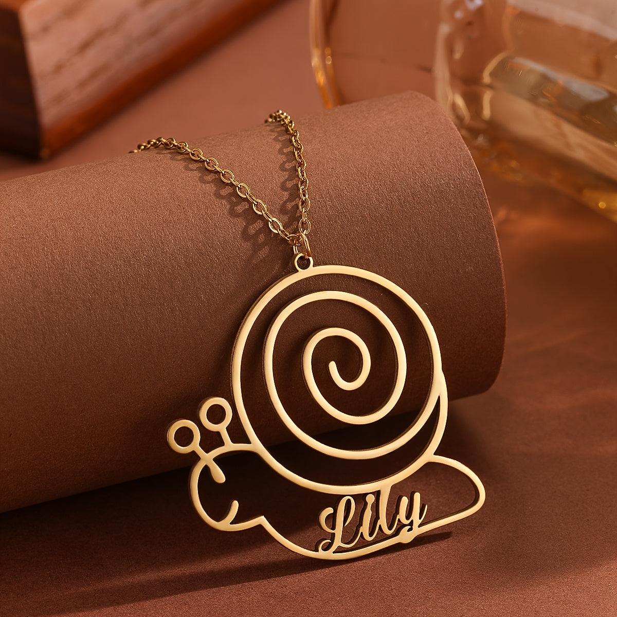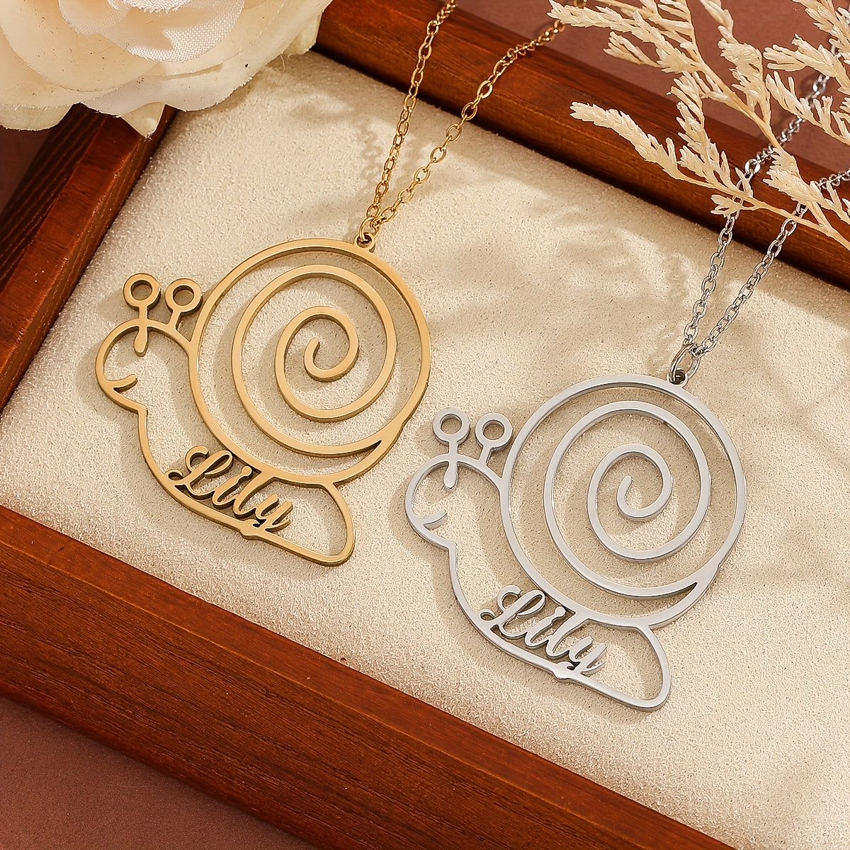 Engraved Snail Name Pendant Necklace Stainless Steel Jewelry Gift