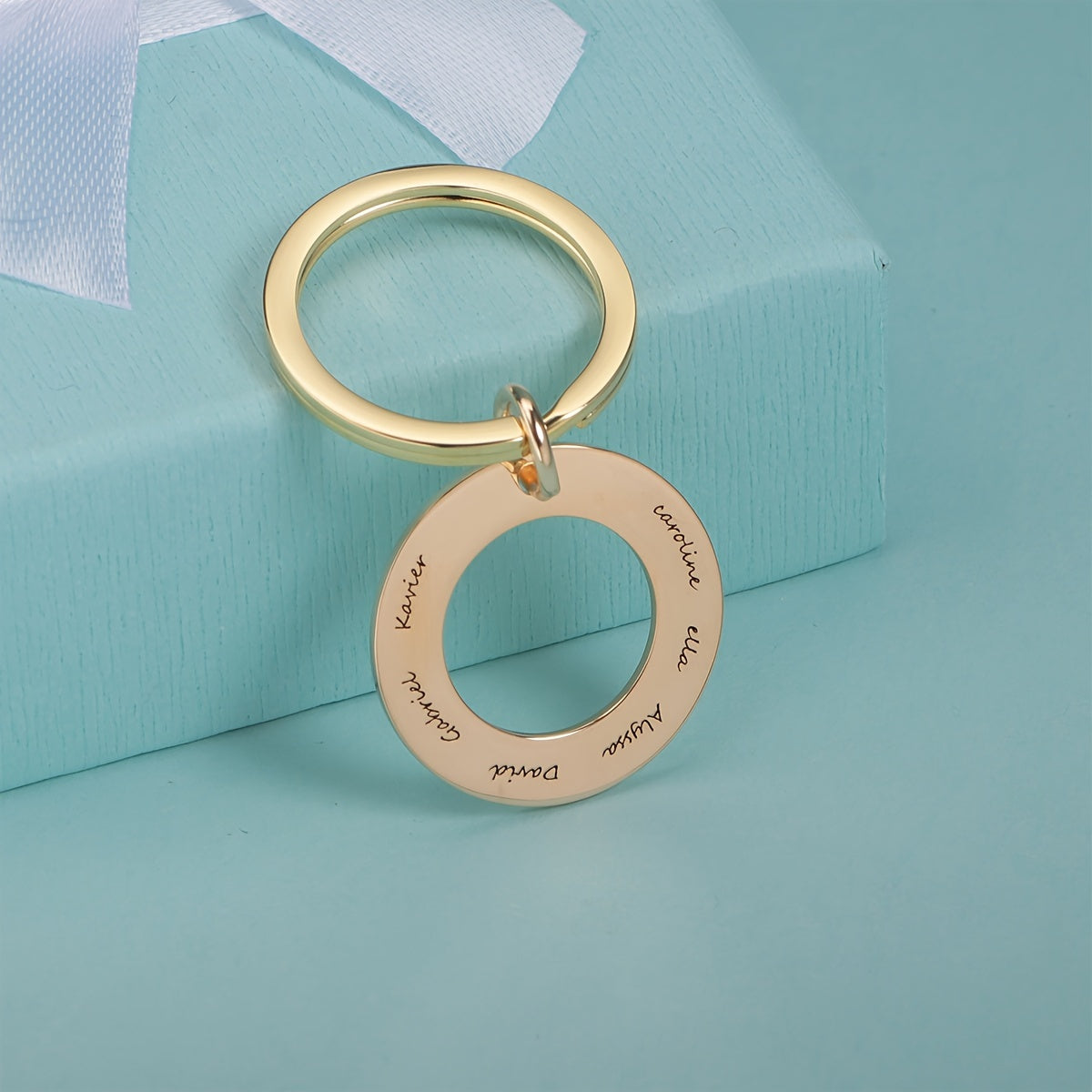 Personalized 1-6 Names Engraved Ring Keychain - Custom Father's Mother's Gift