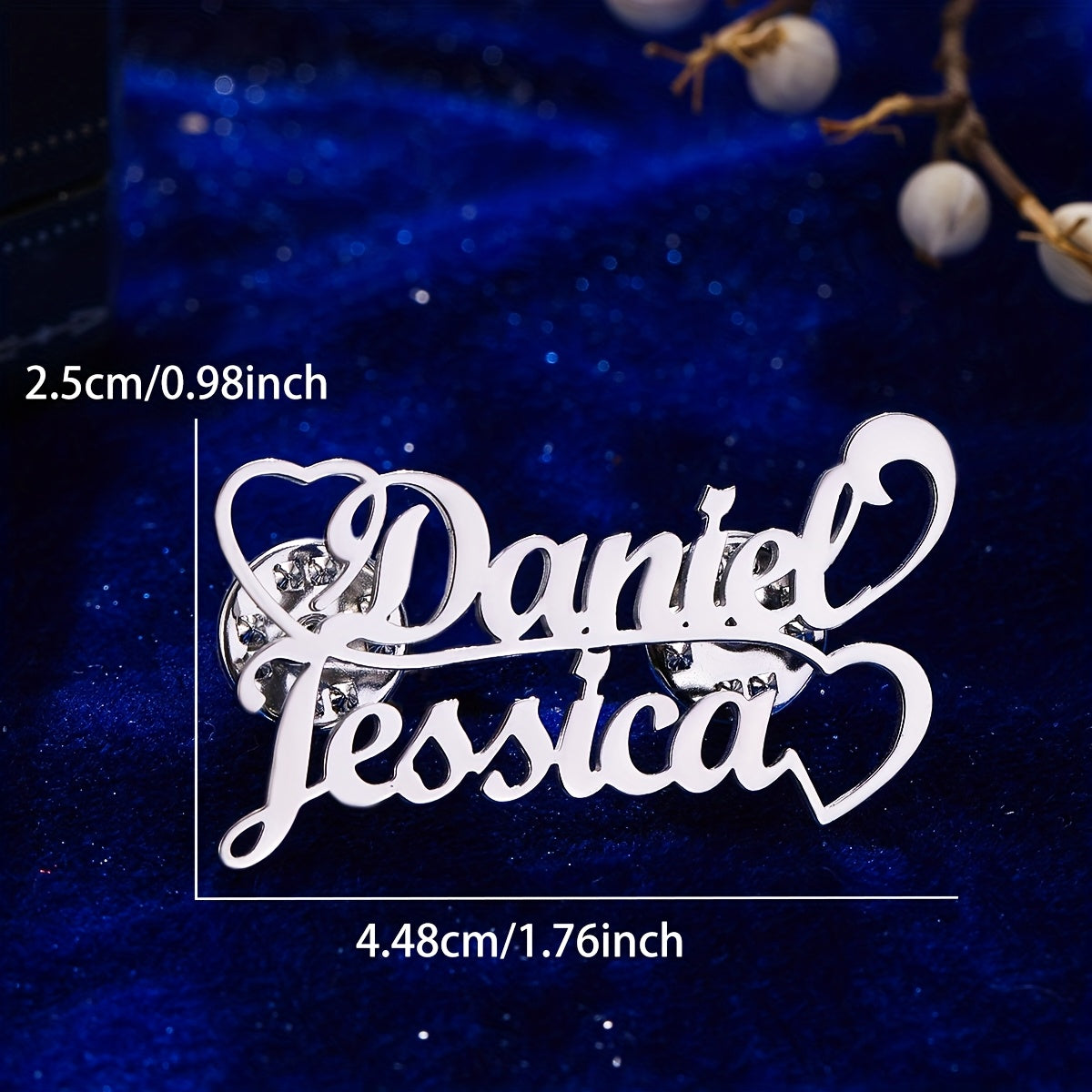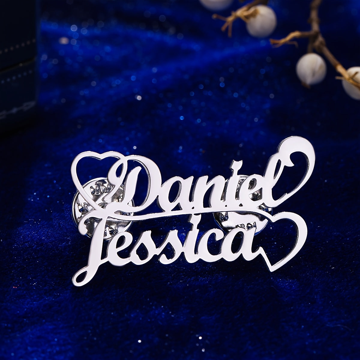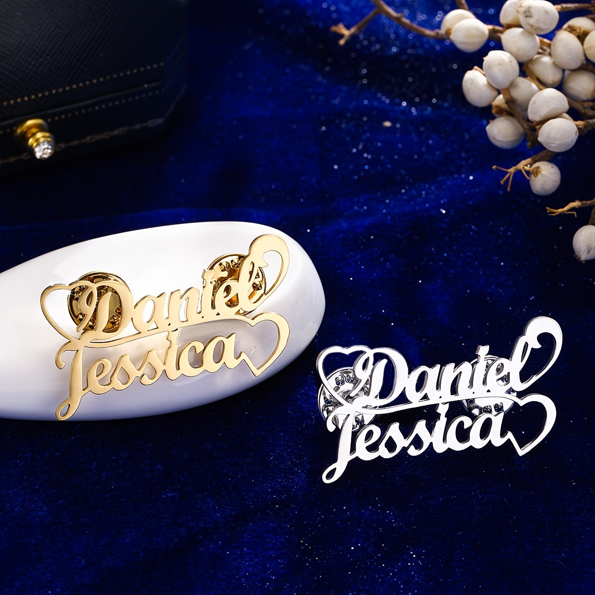 Personalized Daniel Jessica Heart Brooch Custom Stainless Steel Couple Pin