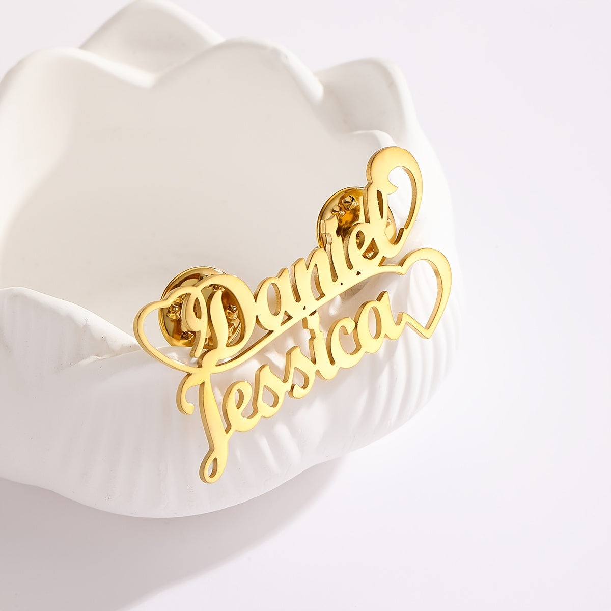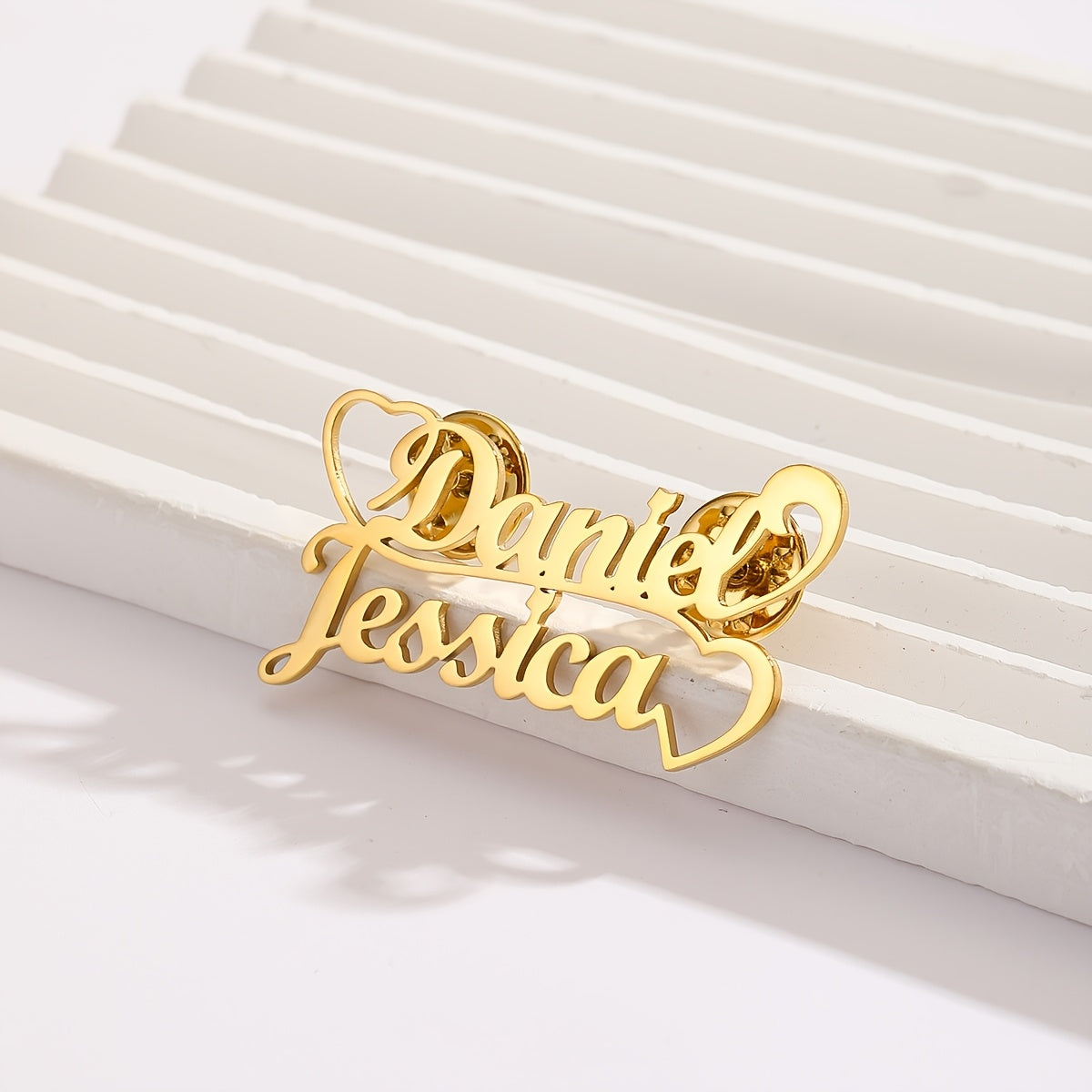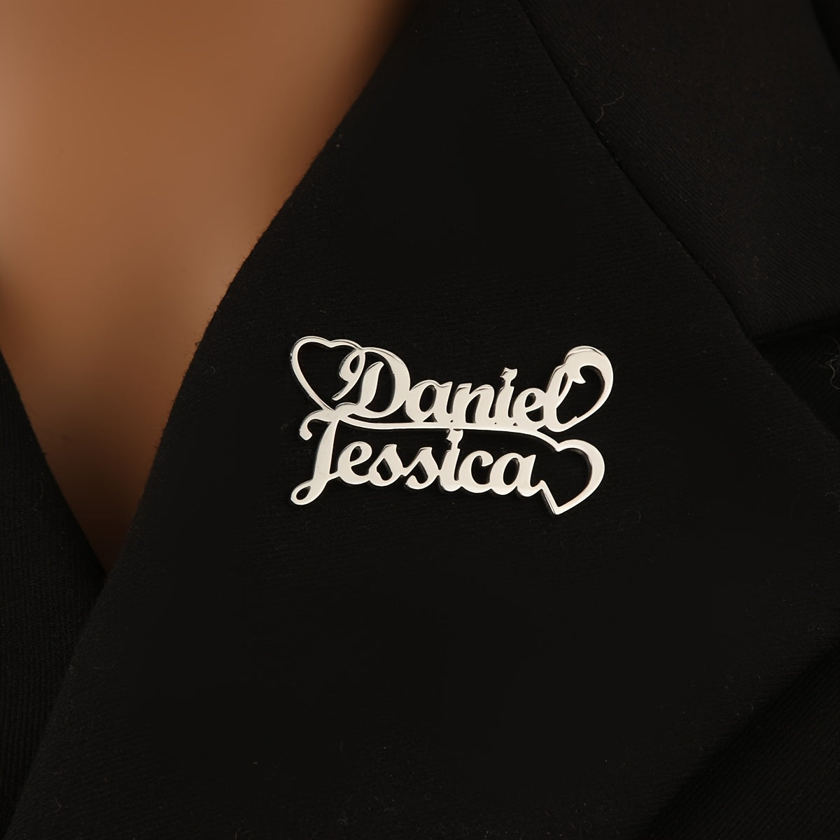 Personalized Daniel Jessica Heart Brooch Custom Stainless Steel Couple Pin