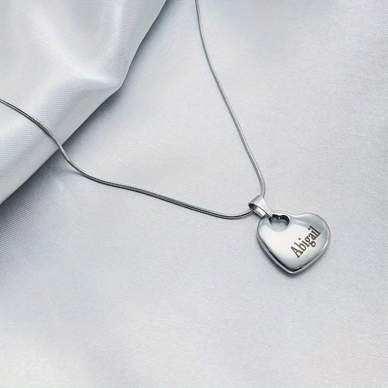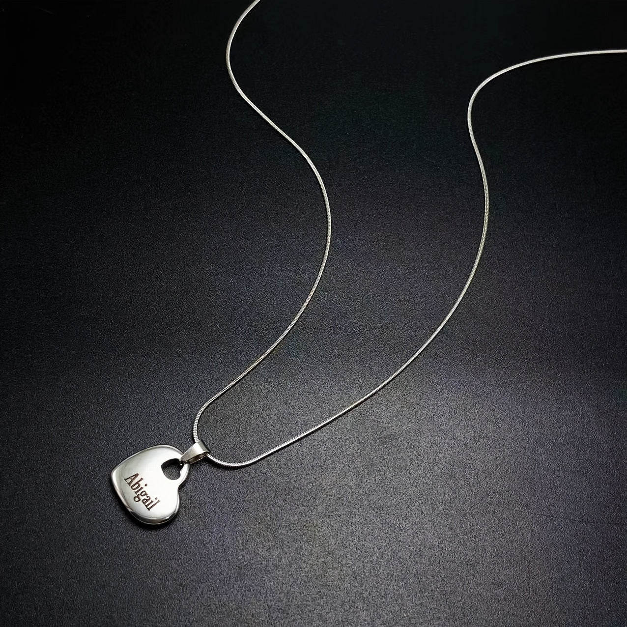 This custom engraved stainless steel heart pendant necklace features double-sided family names and a keel chain. It is ideal for everyday and party wear, making it the perfect July birthstone gift.