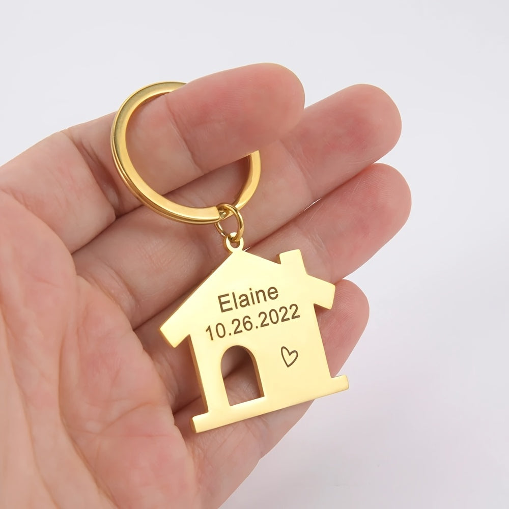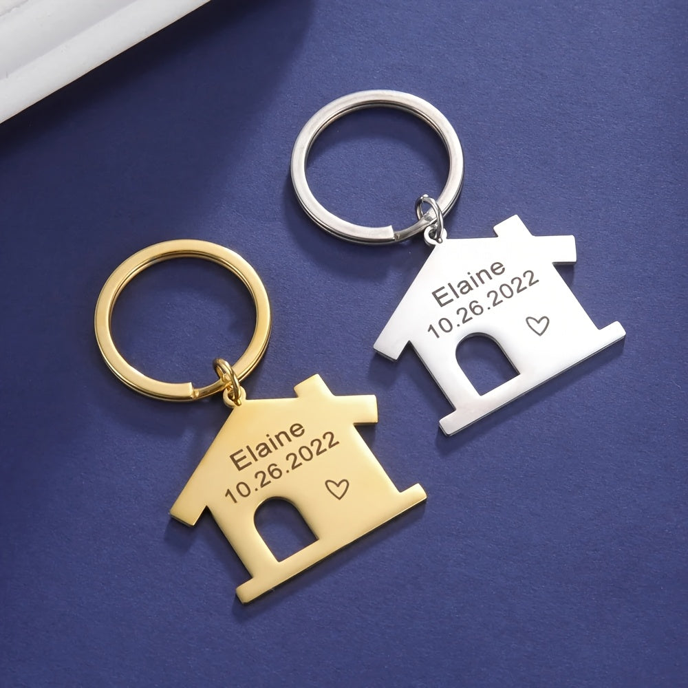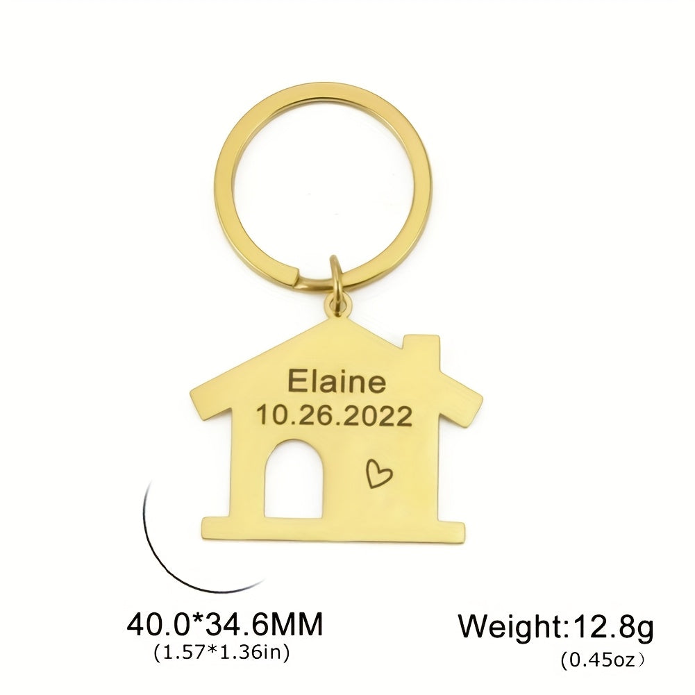 Customize this high-quality house shape keychain made of durable stainless steel. Ideal as a unique gift for anyone.