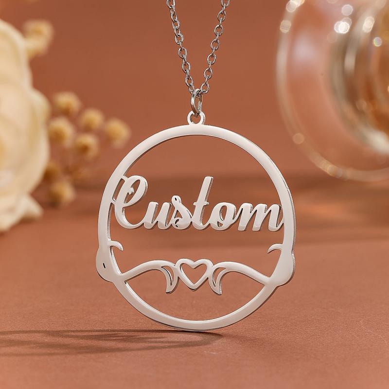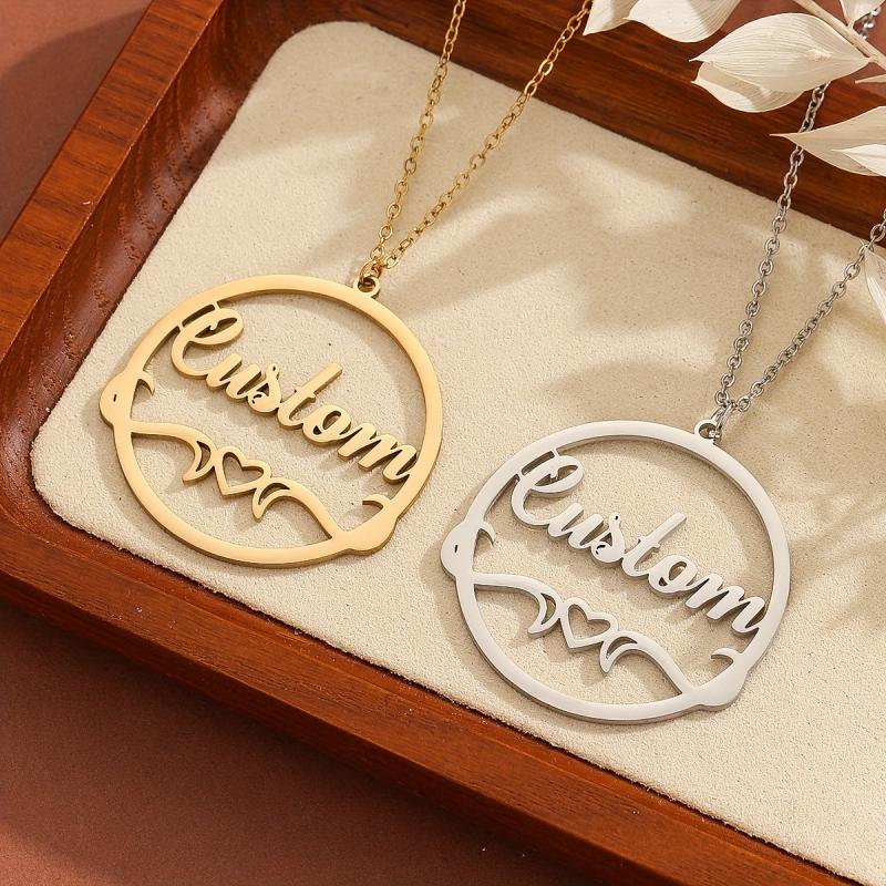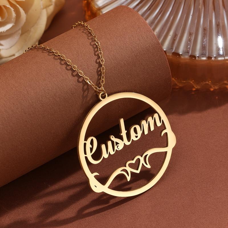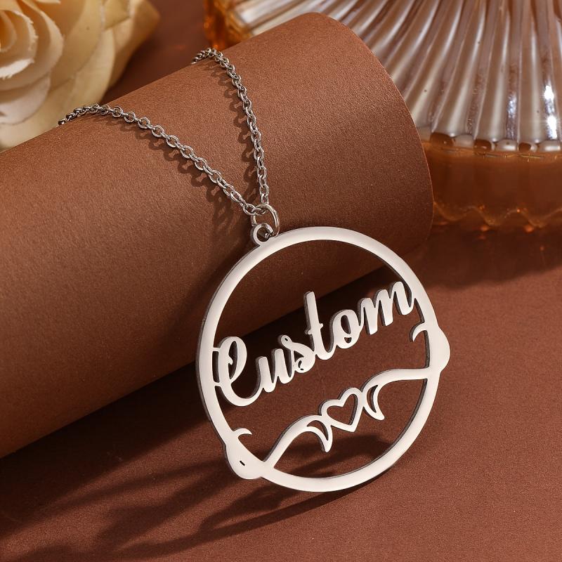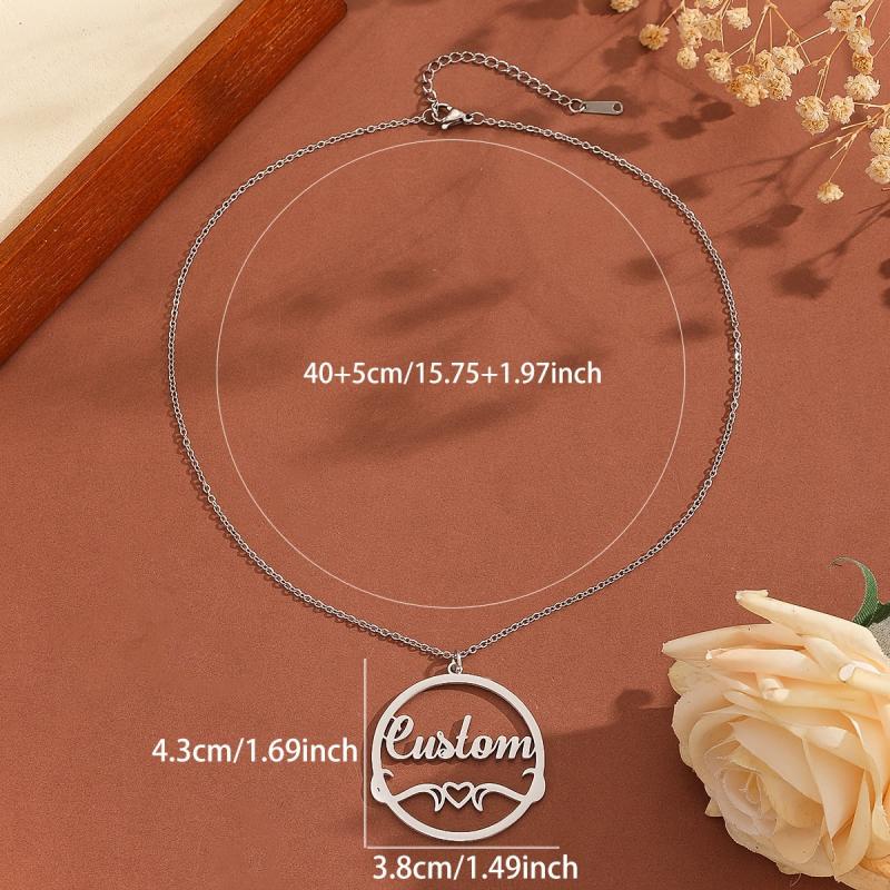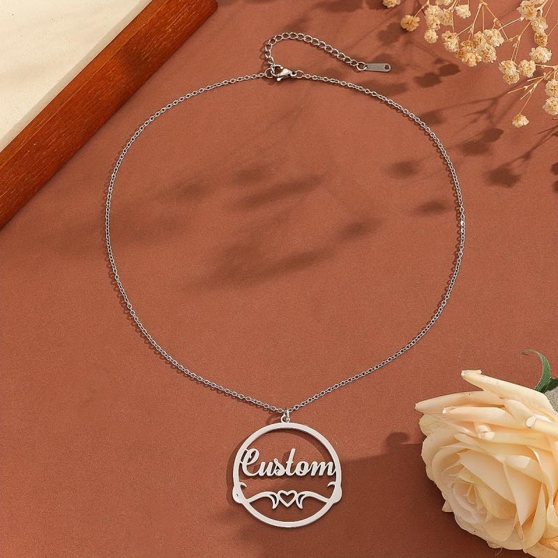 This custom name necklace features a heart and round pendant with art font design. Made of high-quality stainless steel, this necklace is the perfect Valentine's Day gift for your loved one.