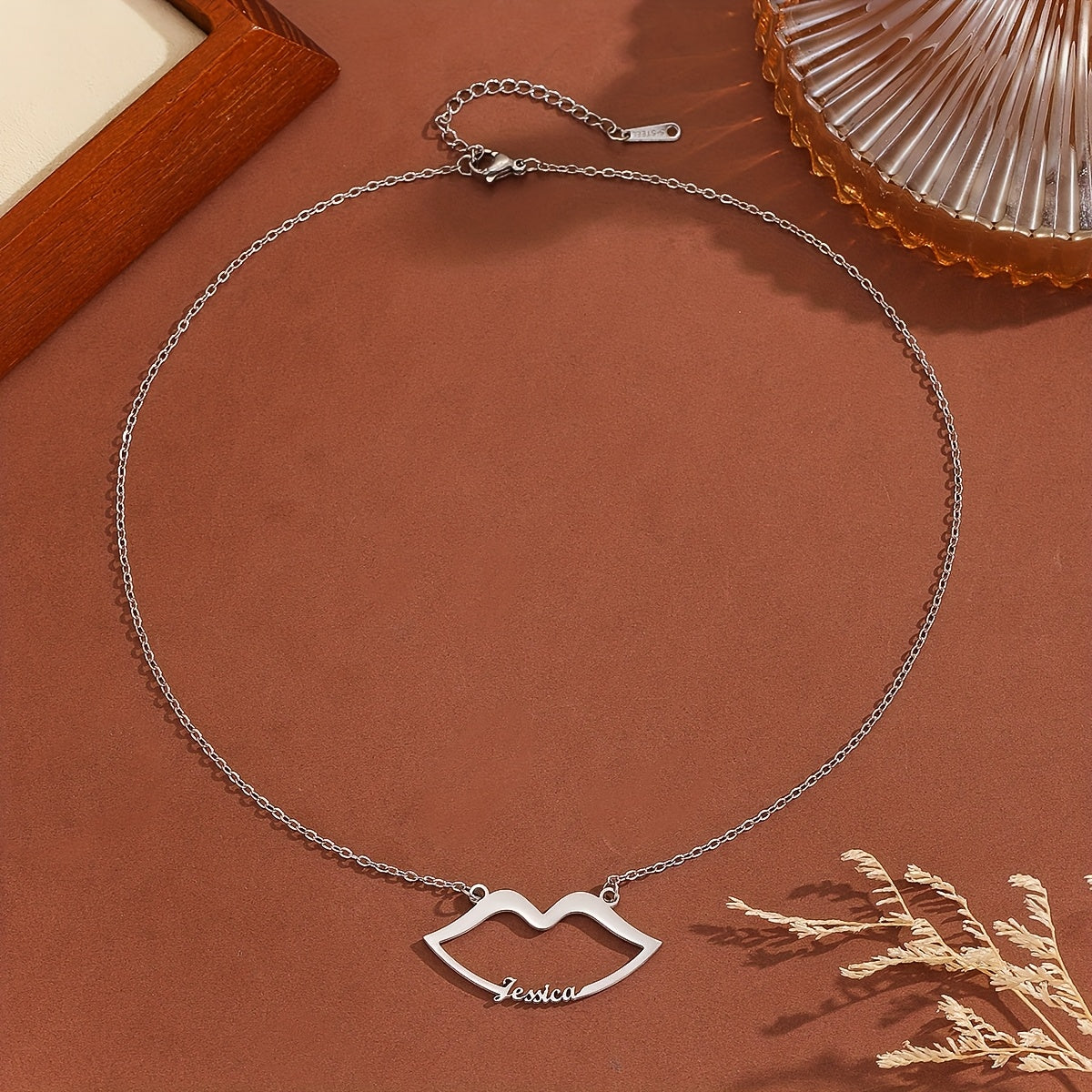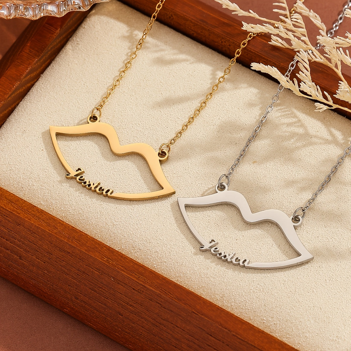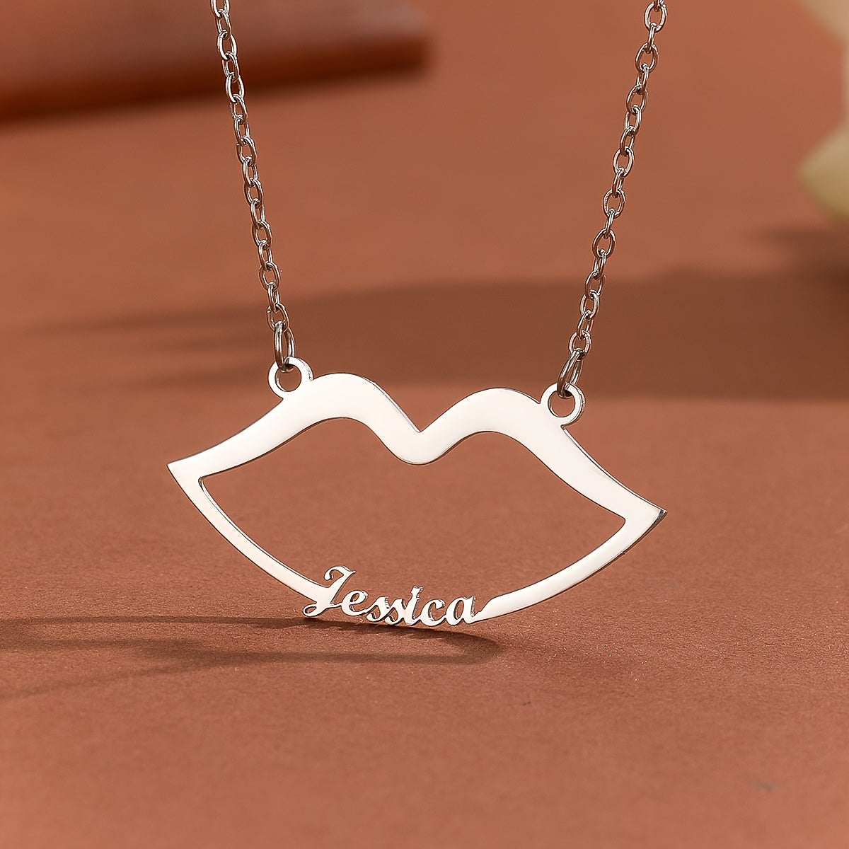 This stylish Lips Shape Name Necklace is a personalized accessory made of stainless steel. The minimal design adds a touch of uniqueness to your look.