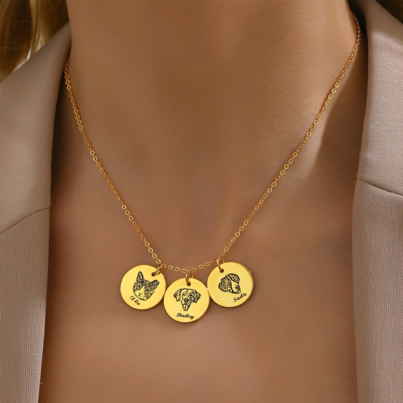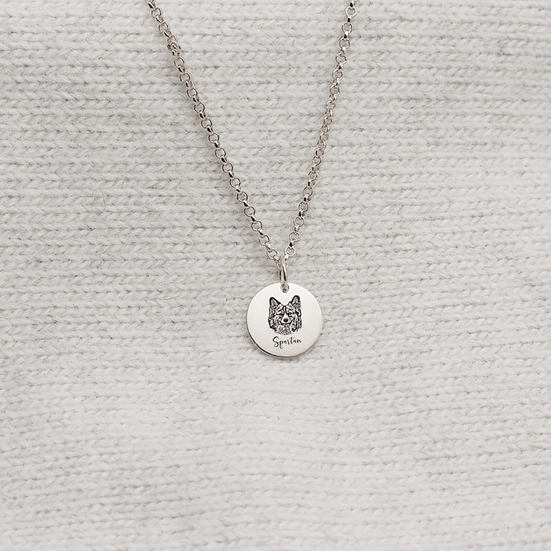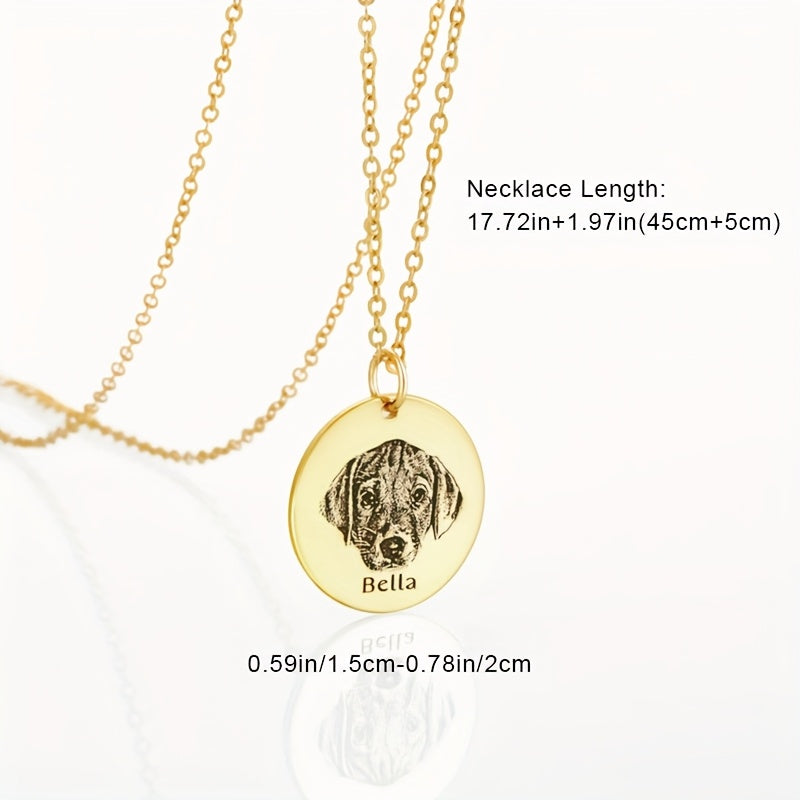 Personalized Pet Portrait Necklace with Actual Photo and Name Engraved