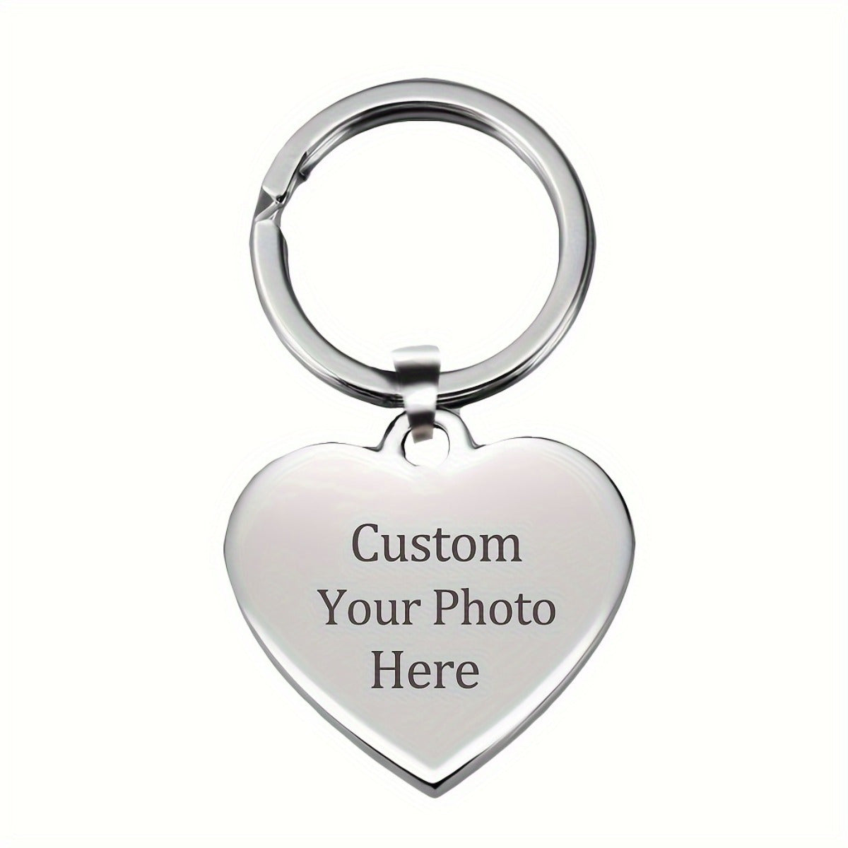 Create a unique keychain with your favorite picture engraved on a heart-shaped stainless steel pendant. Perfect for Valentine's Day, anniversaries, or any special occasion.