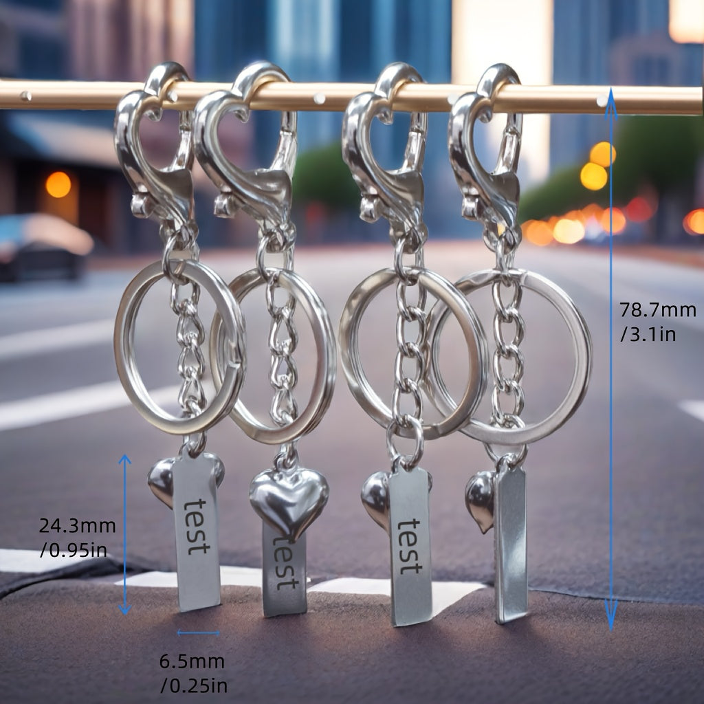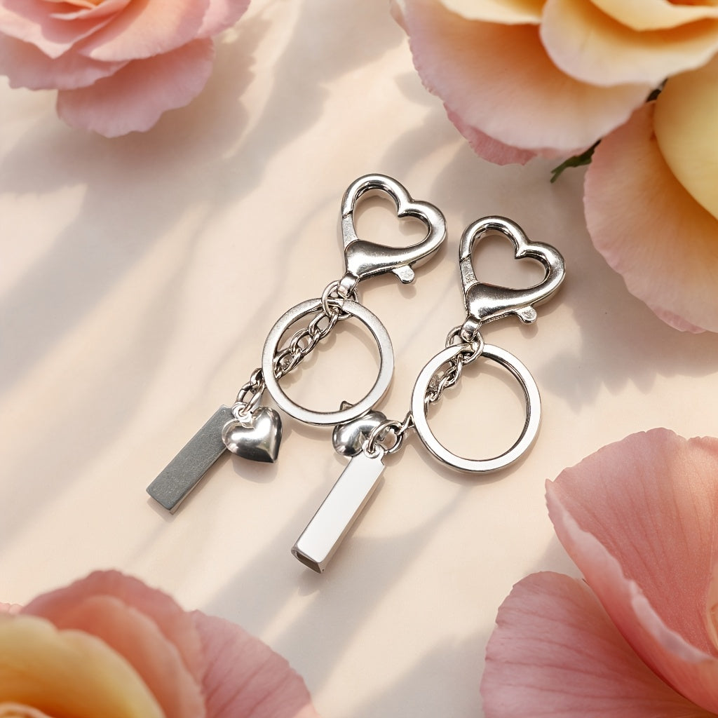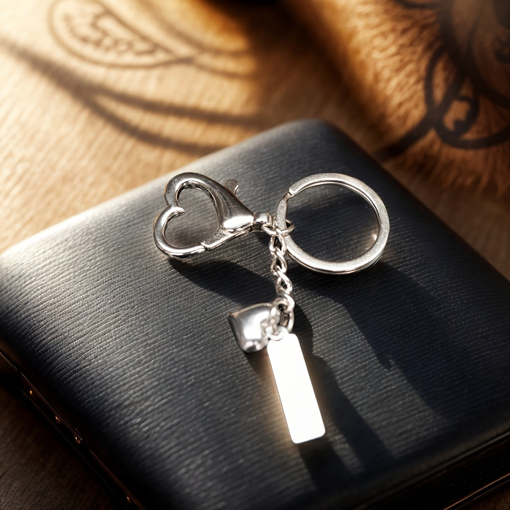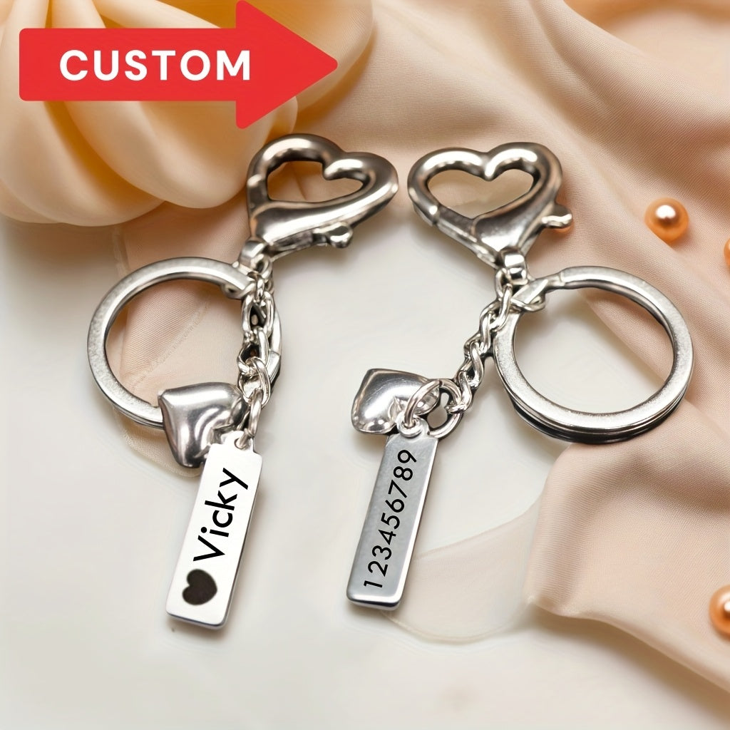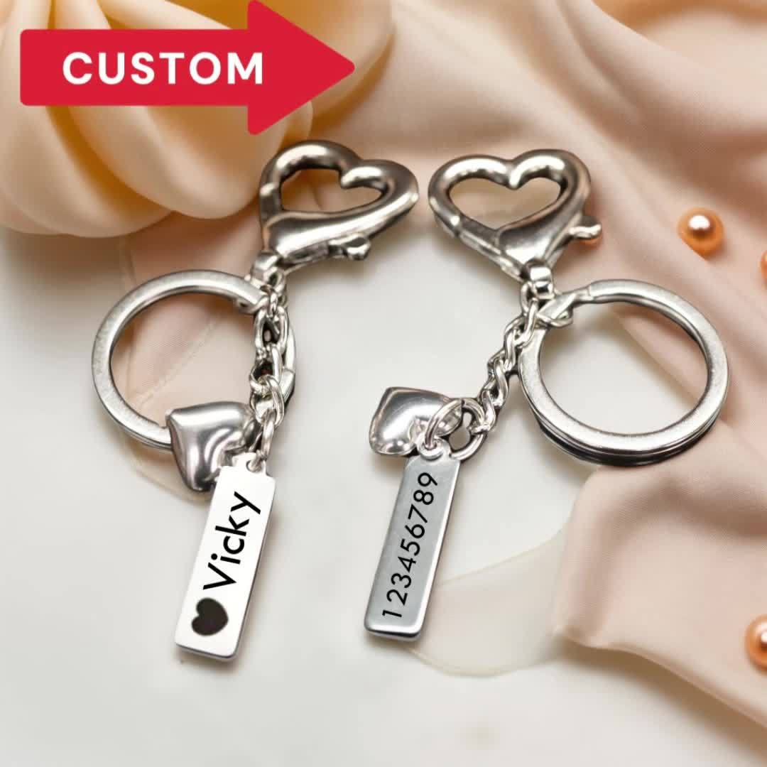 This custom engraved stainless steel heart keychain is perfect for adding a personal touch to your keys, bag, phone, or car. Ideal for gift giving, this keychain can be personalized with a name and message.