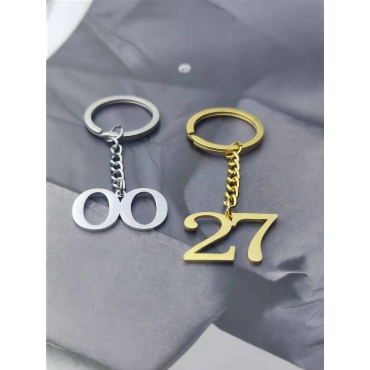 • Stainless steel keychain with personalized alphabet/number