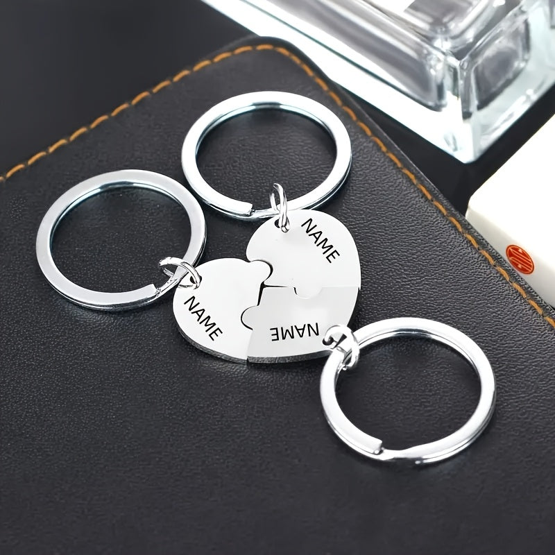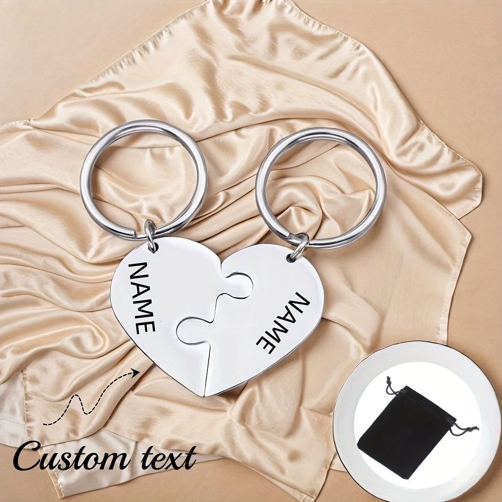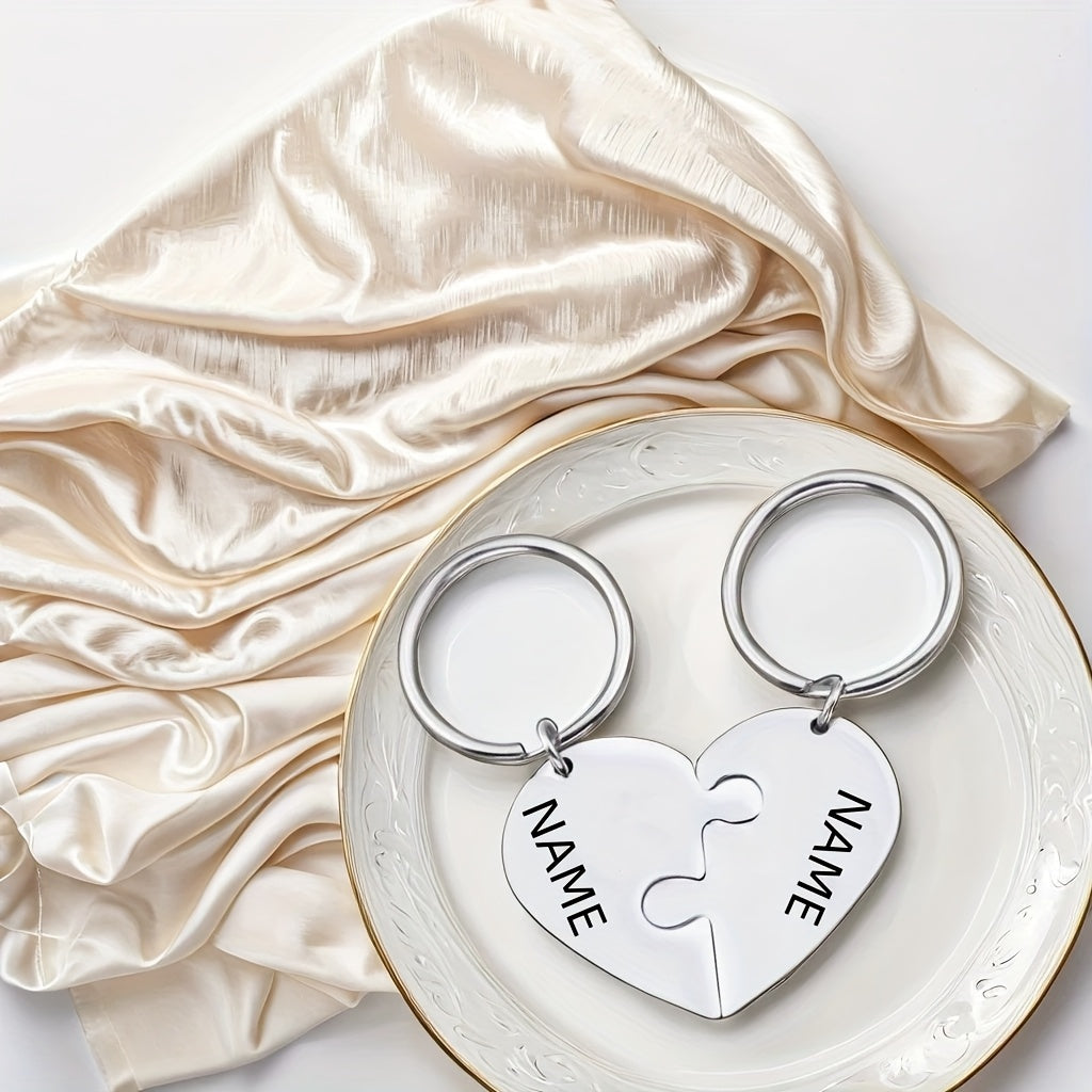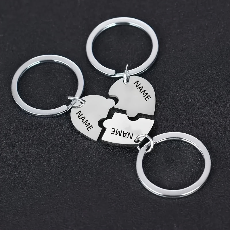 Personalized Stainless Steel Love Puzzle Keychain Set