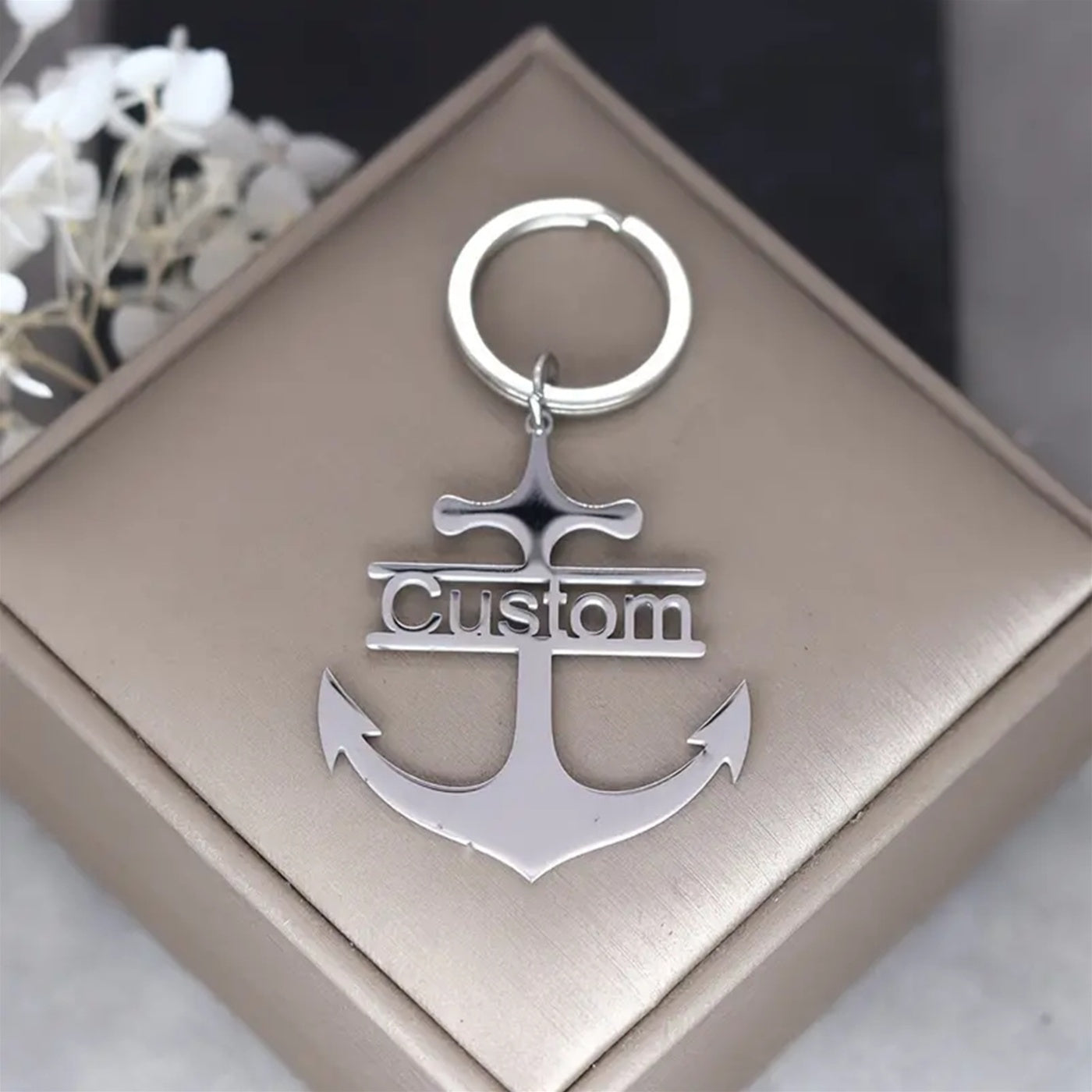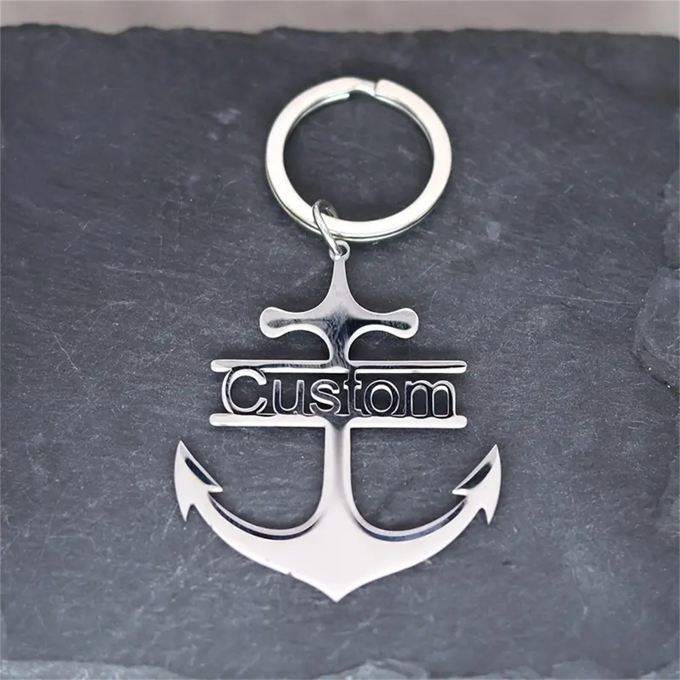 This durable stainless steel keychain features a customizable nautical anchor design, making it an ideal gift for Valentine's Day or Father's Day. The snap hook ensures your keys stay secure.