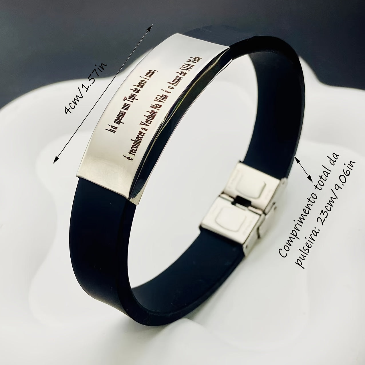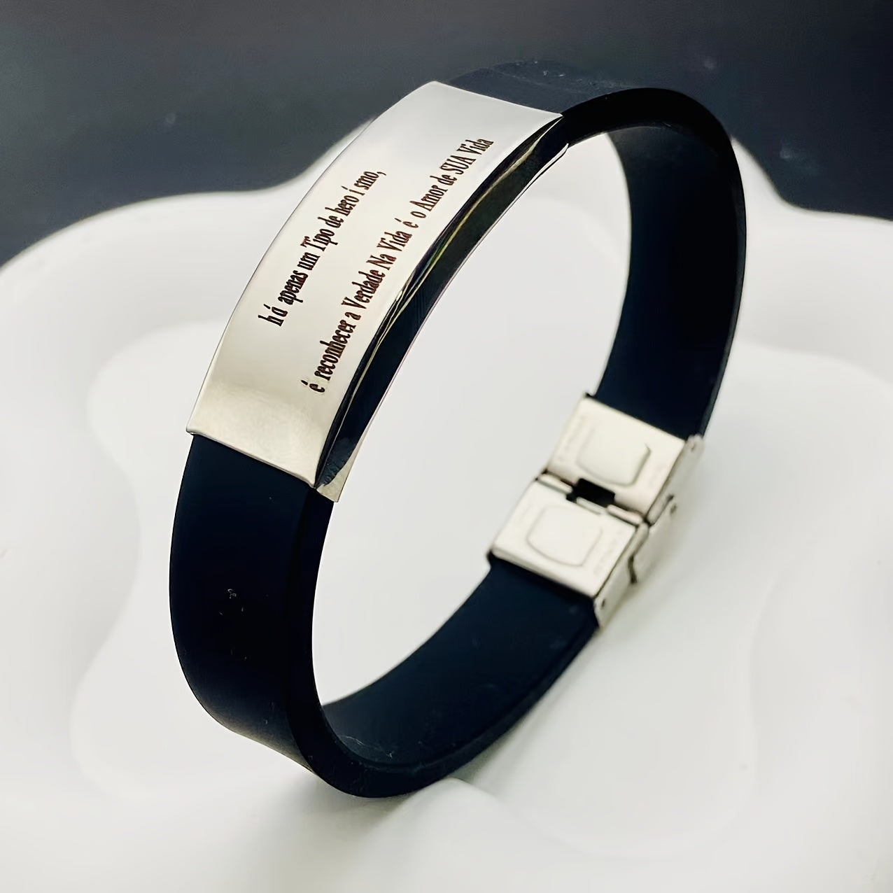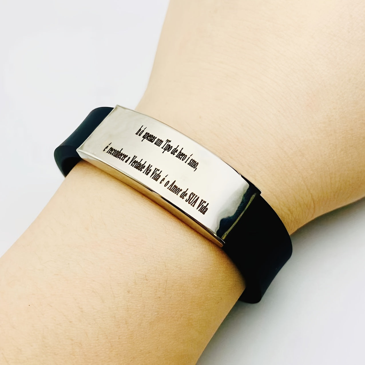 Get motivated with this low allergy silicone bracelet featuring customizable text up to 30 characters. Perfect for a touch of inspiration in Spanish or Portuguese.