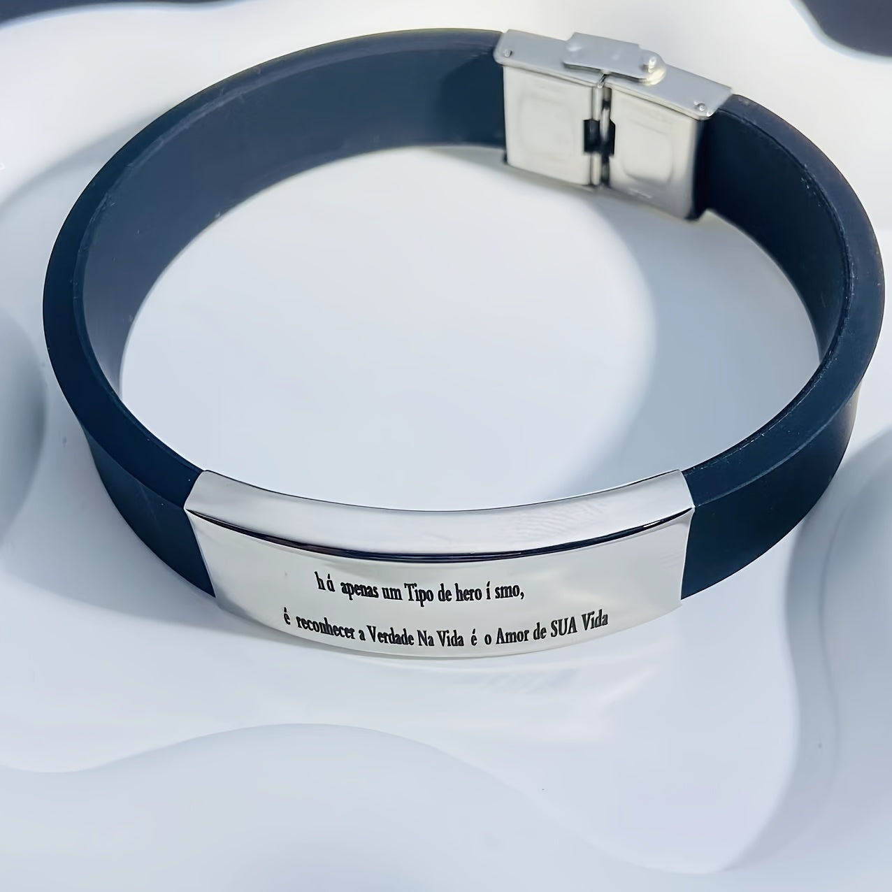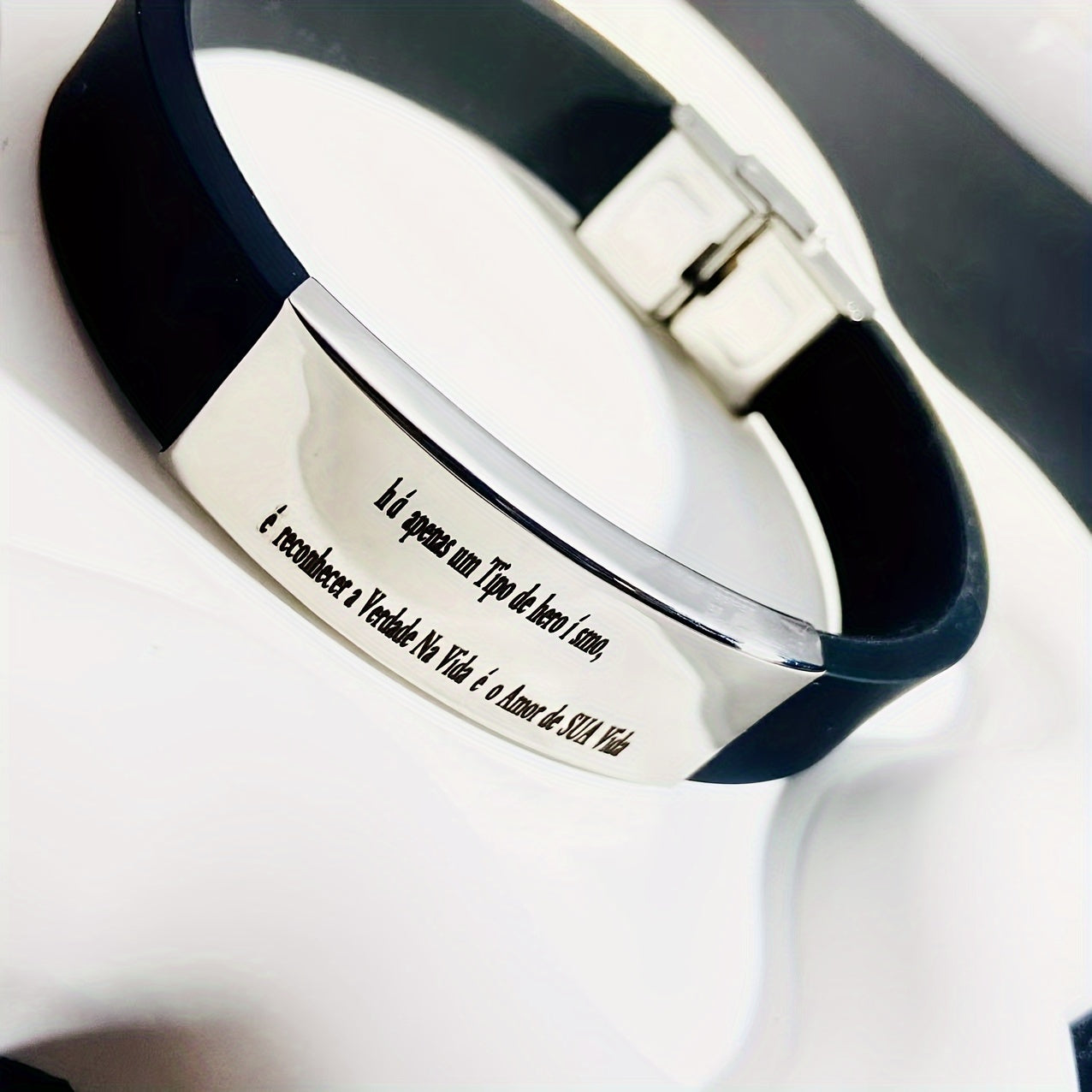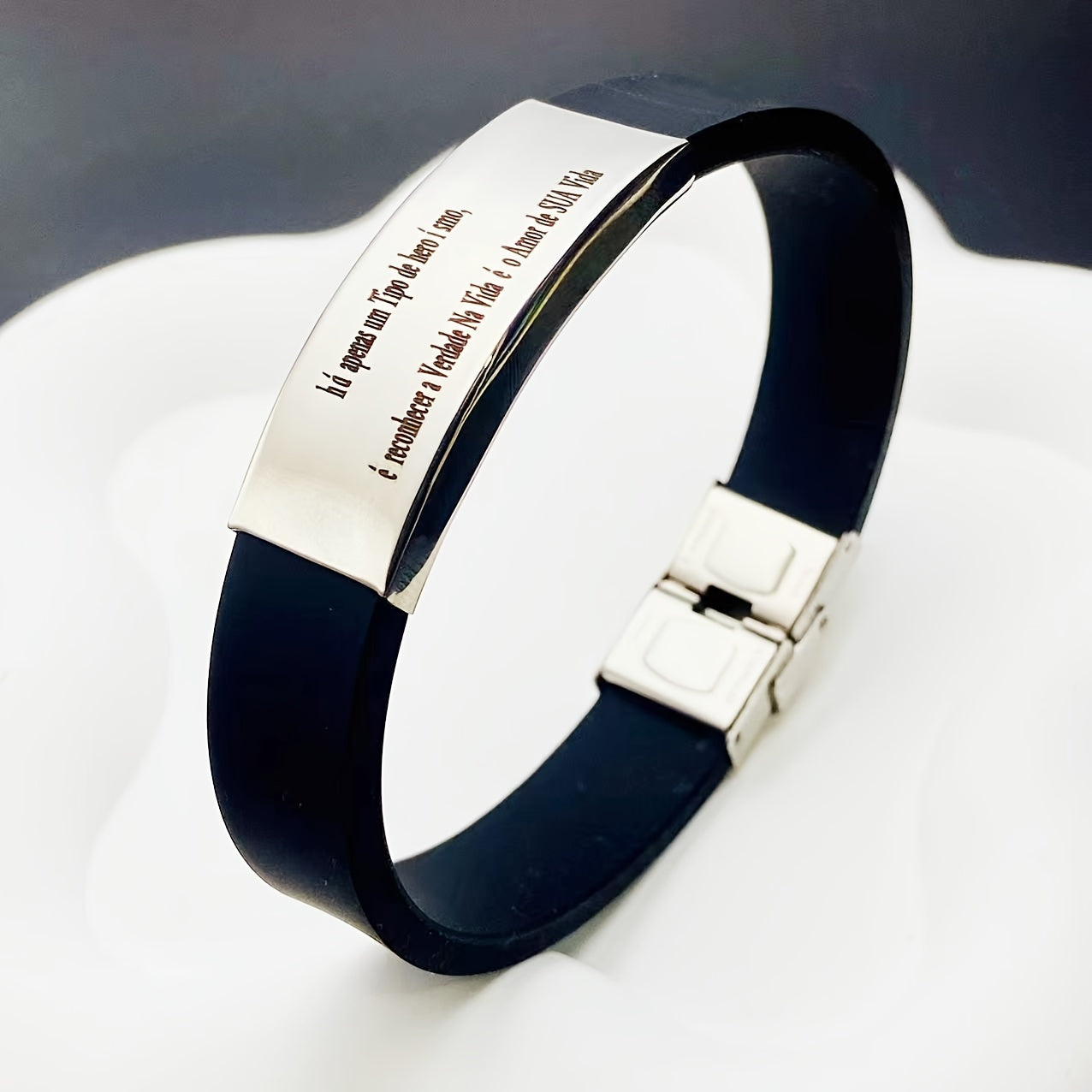 Get motivated with this low allergy silicone bracelet featuring customizable text up to 30 characters. Perfect for a touch of inspiration in Spanish or Portuguese.