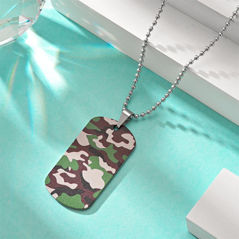 This unique camouflage necklace is the perfect accessory for daily wear or party outfits. Crafted from high-quality stainless steel, it features a special pattern that adds a touch of personality to any look.