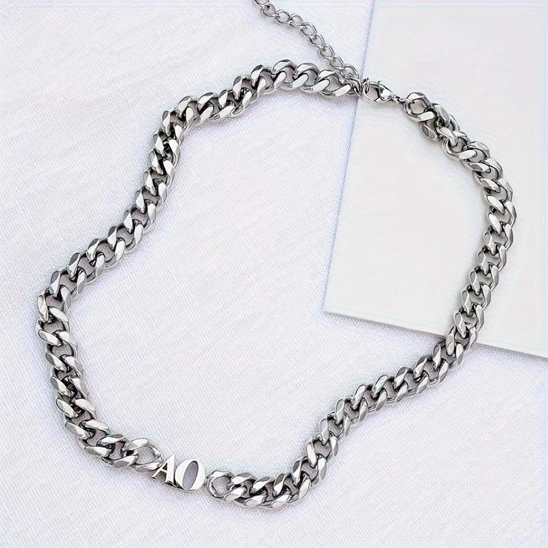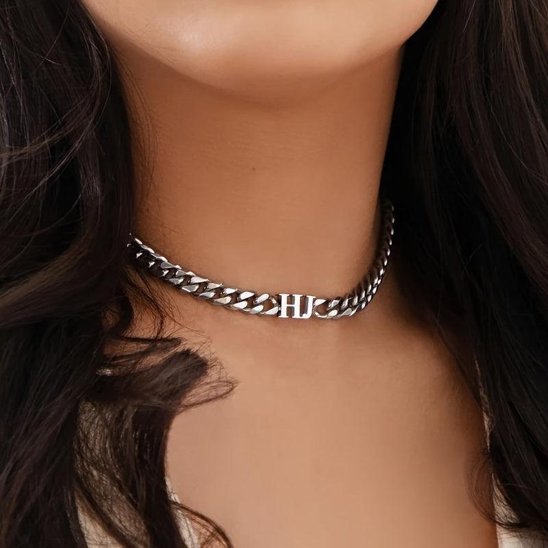 Add a touch of urban flair to your outfit with this custom hip hop style stainless steel letter necklace. Perfect for casual attire or as a stylish gift.