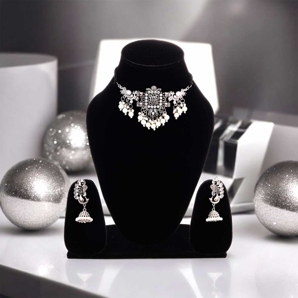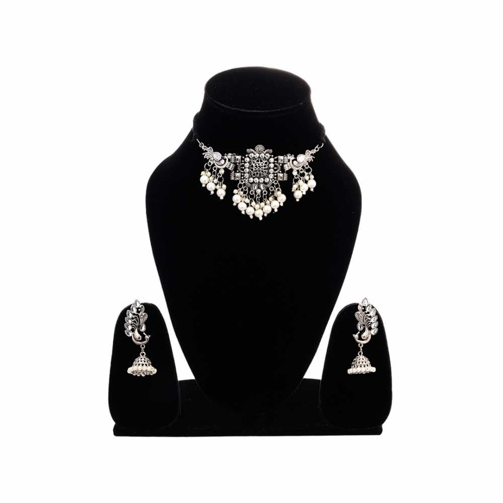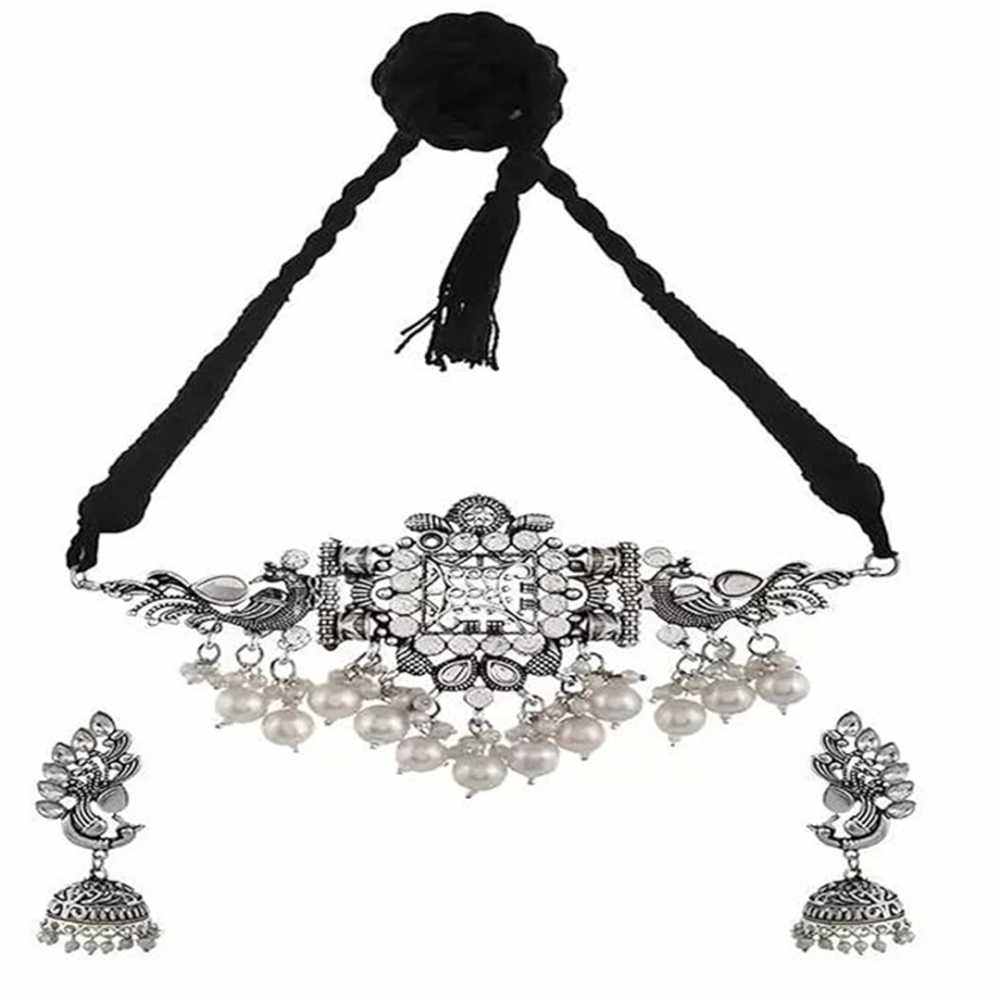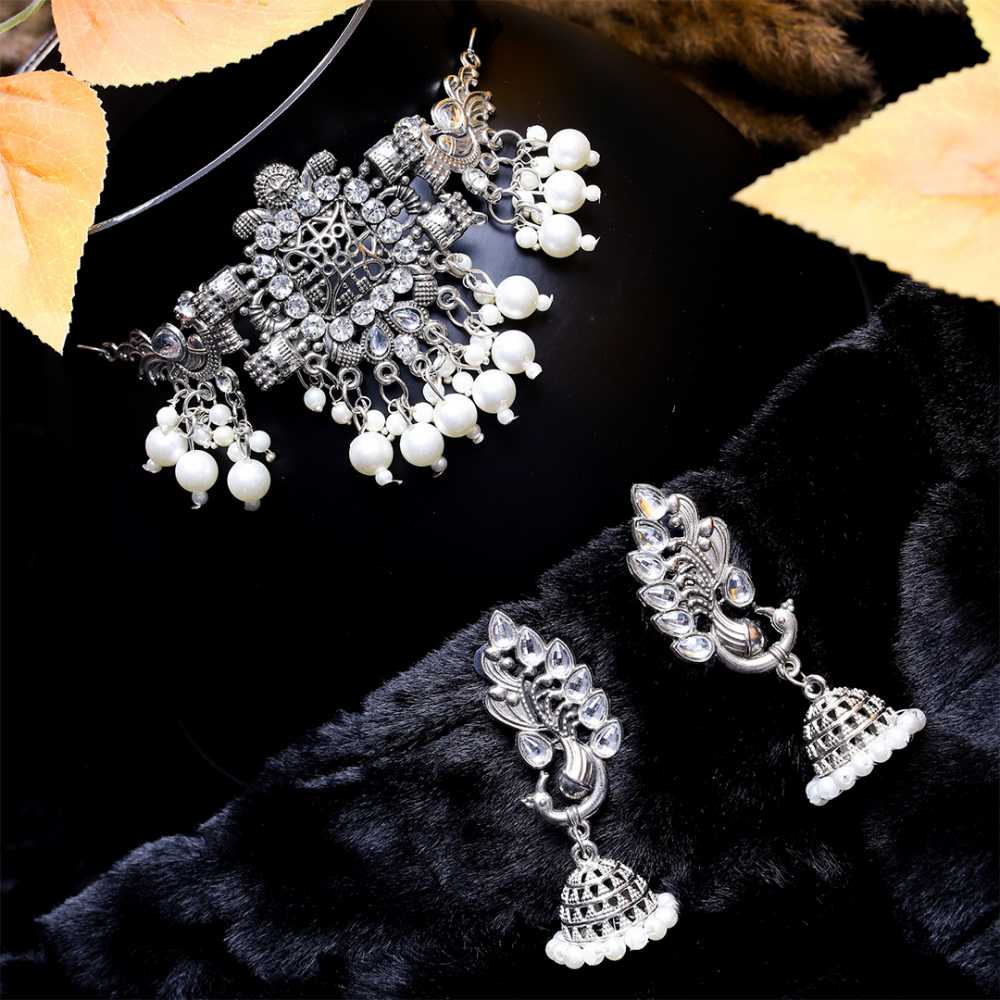 - Détails du produit : Cet ensemble de bijoux est fabriqué à partir d'un matériau de haute qualité plaqué argent oxydé et parsemé de perles et de pierres.