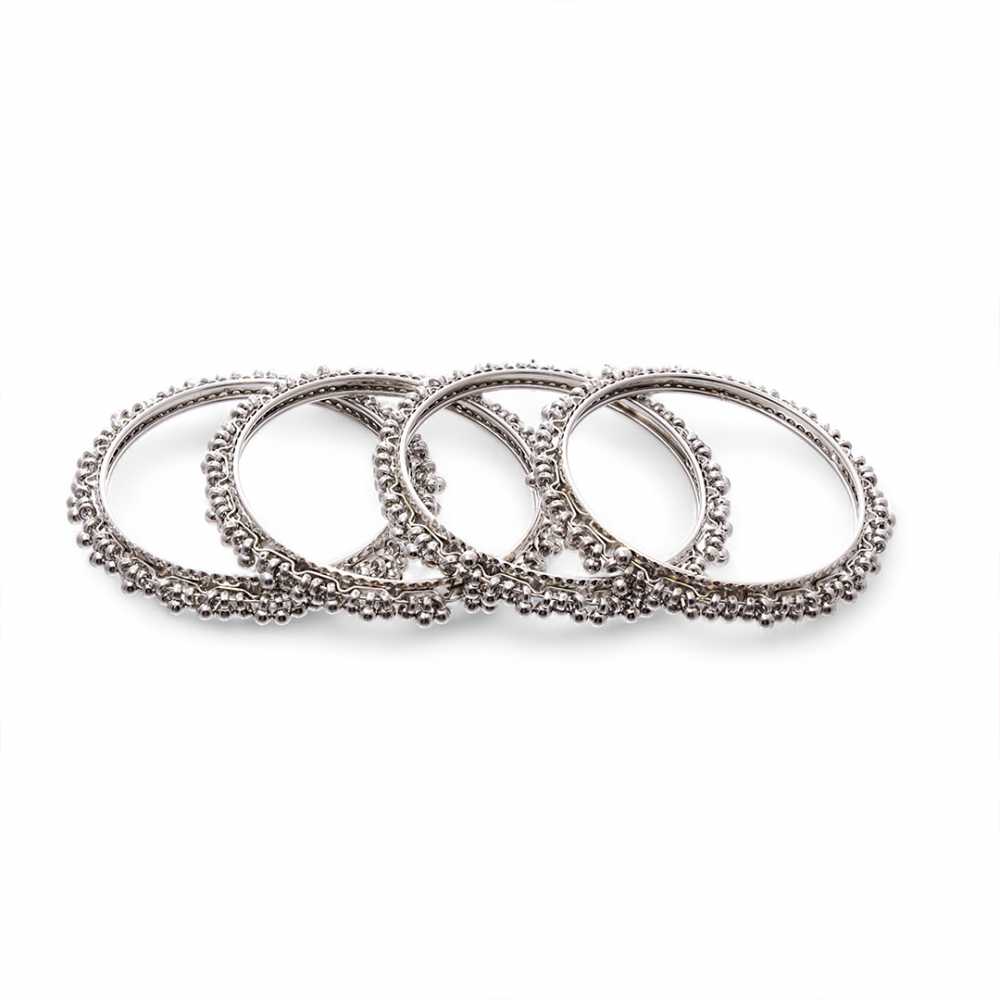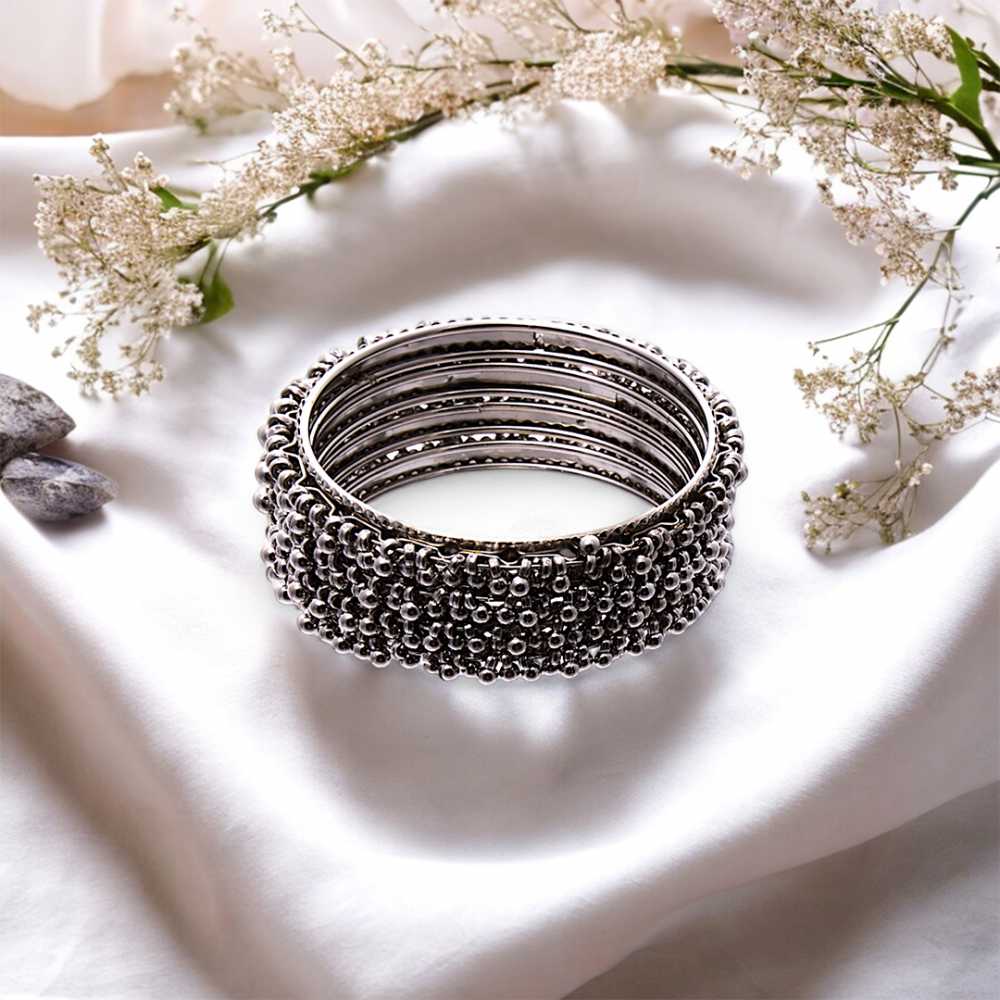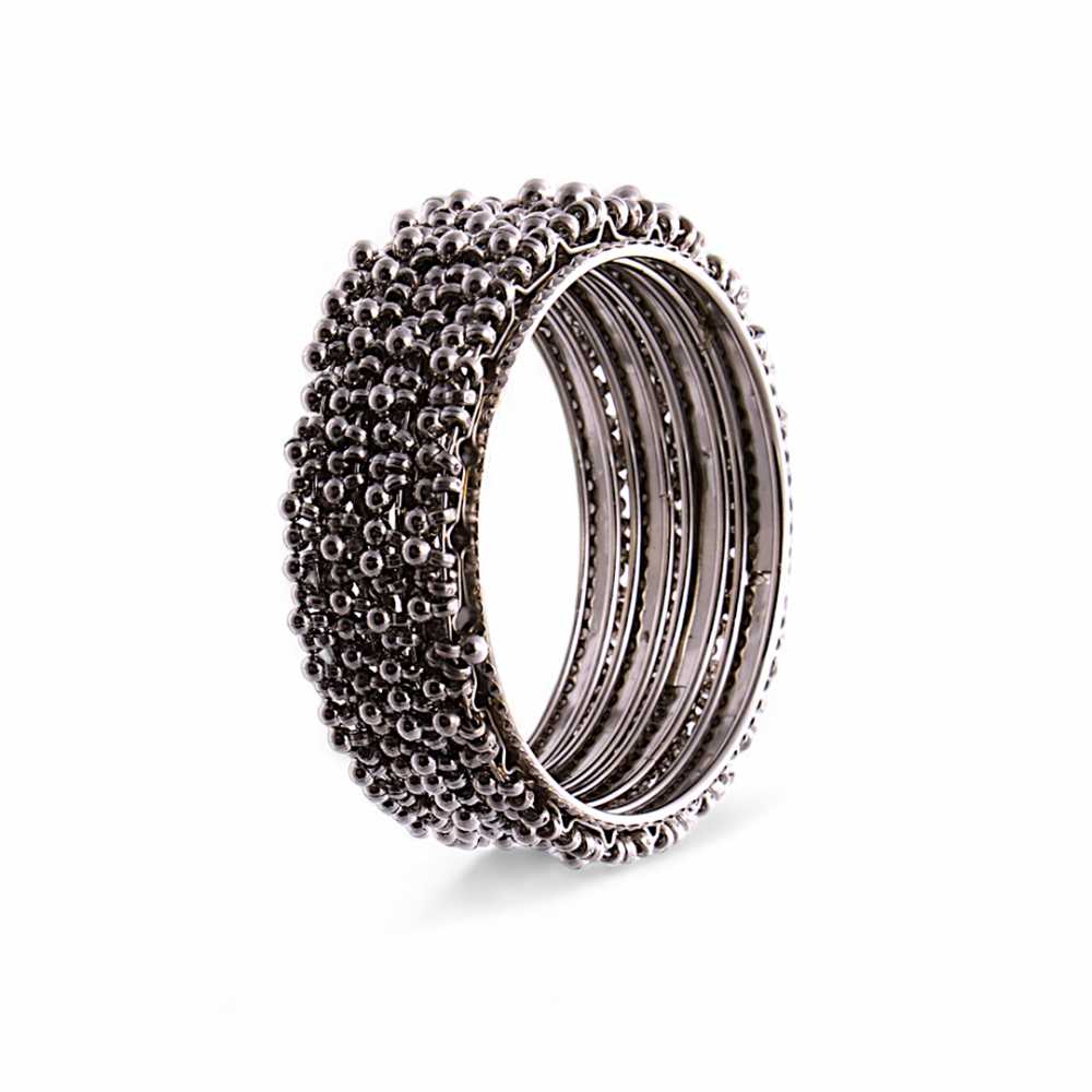 Ensemble de bracelets en argent oxydé pour femme parsemés de perles