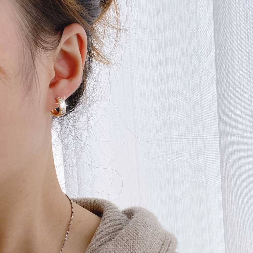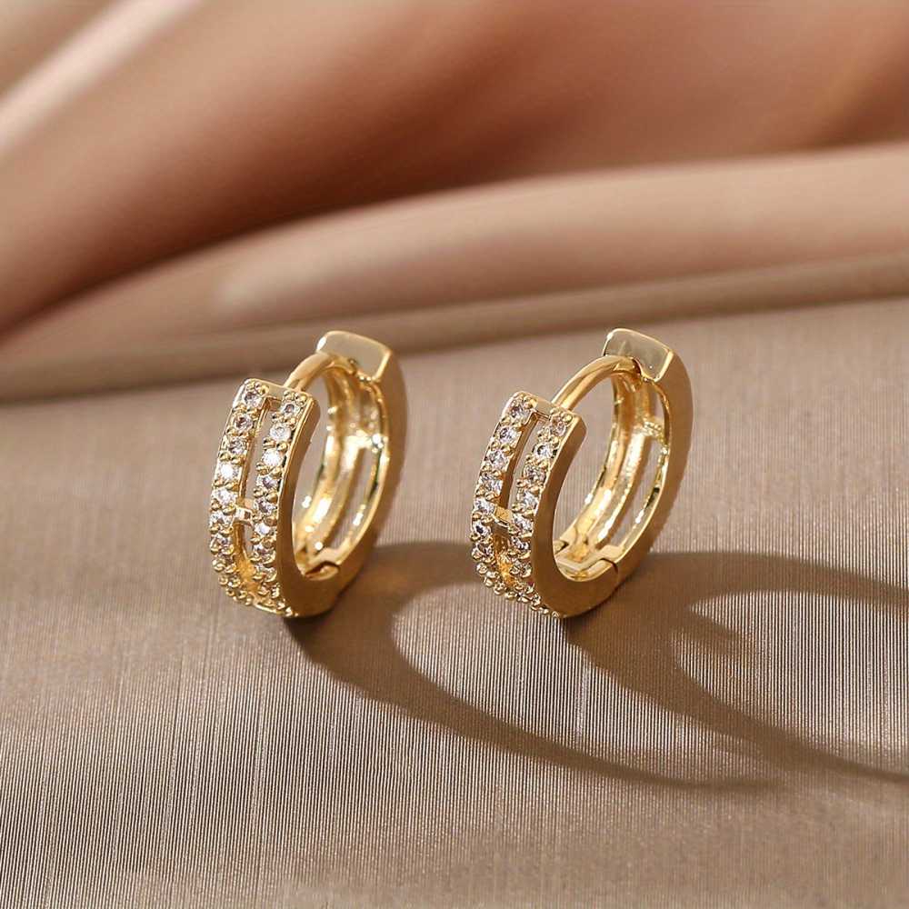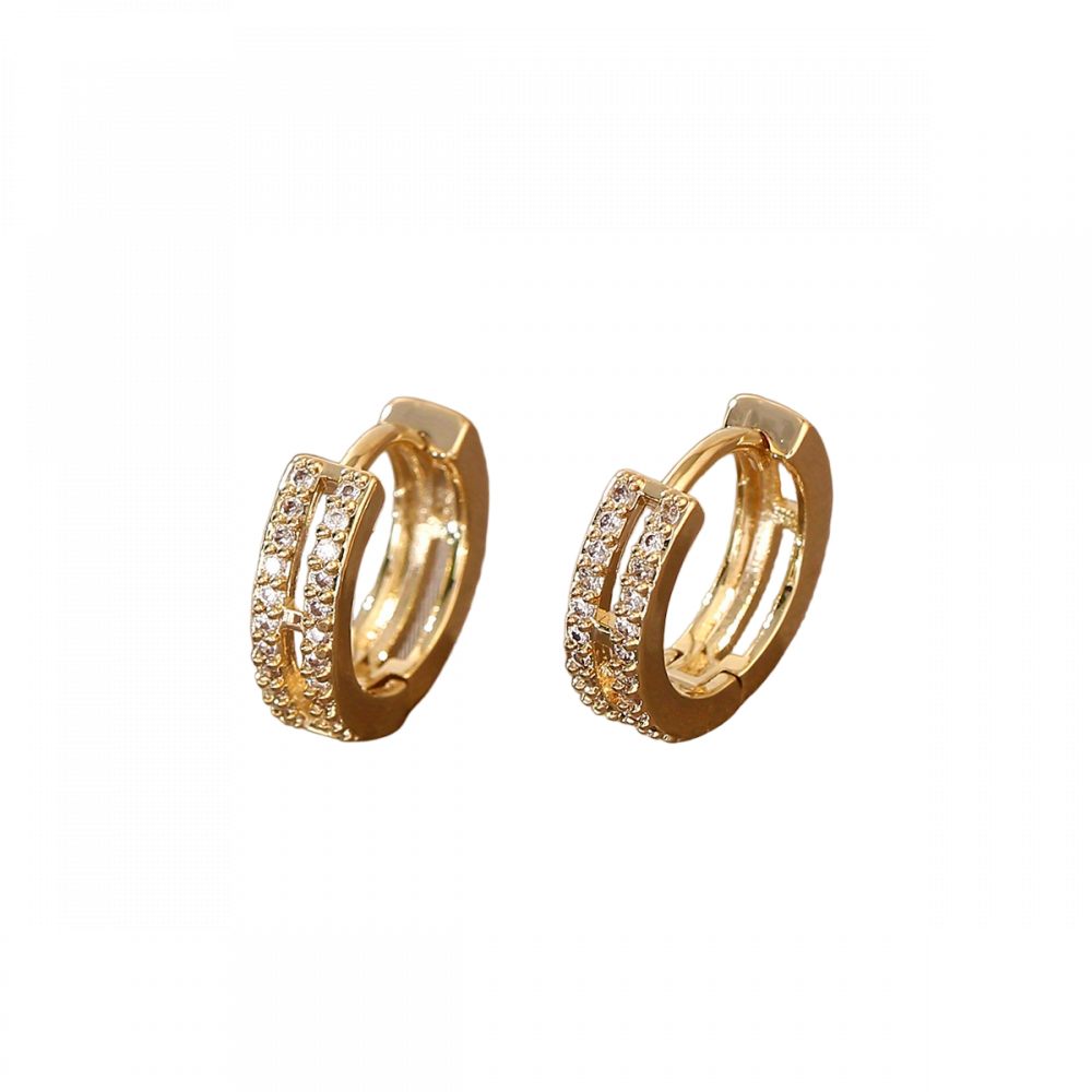 Boucles d'oreilles cartilage à double créoles pavées plaquées or pour femme