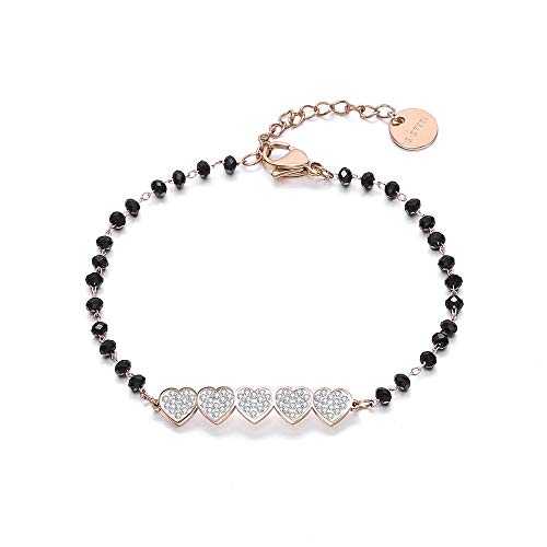 Bracelet en perles de cœur en zircone plaqué or rose pour femme