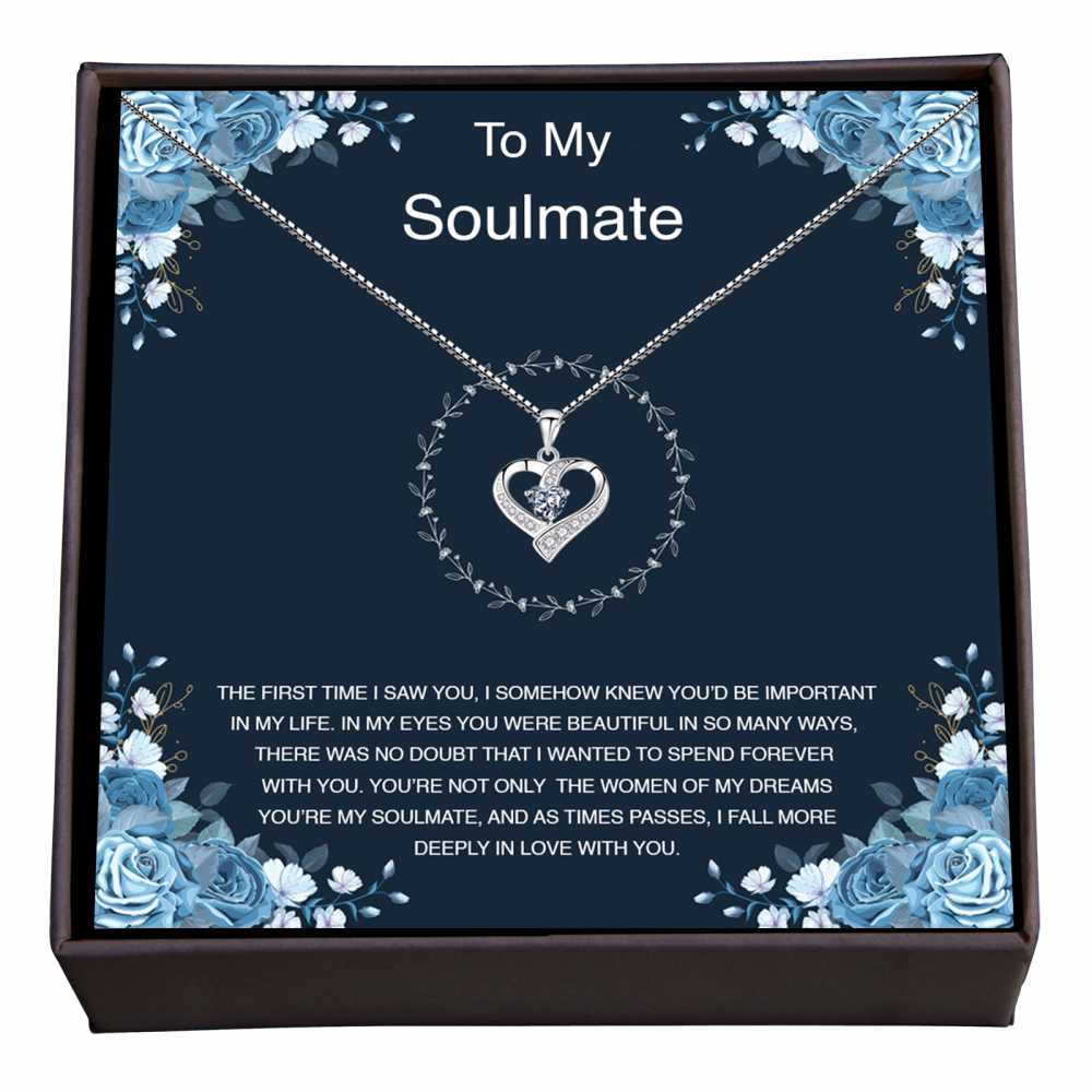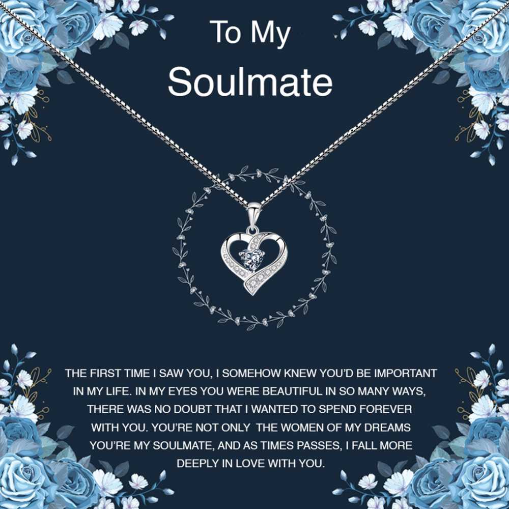 Pendentif en forme de cœur en zircone plaqué argent pour femme avec carte de message personnalisée à mon âme sœur