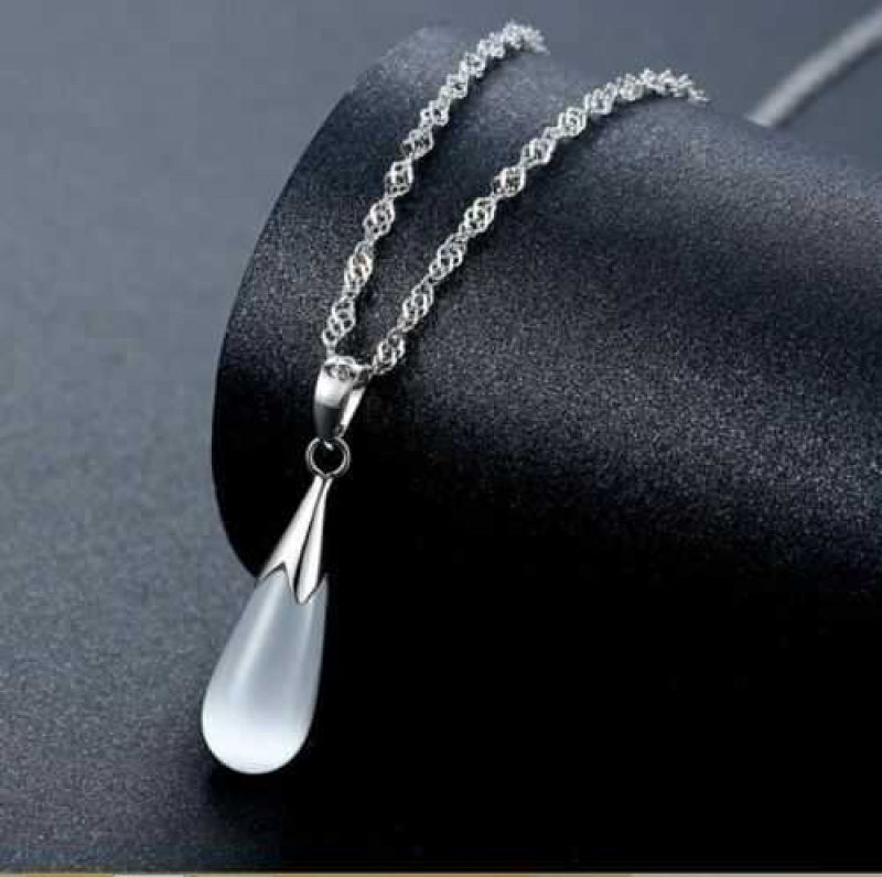- Détails du produit : Fabriqué à partir de métal plaqué argent de haute qualité et d'un pendentif en forme de larme opalescent méticuleusement conçu.