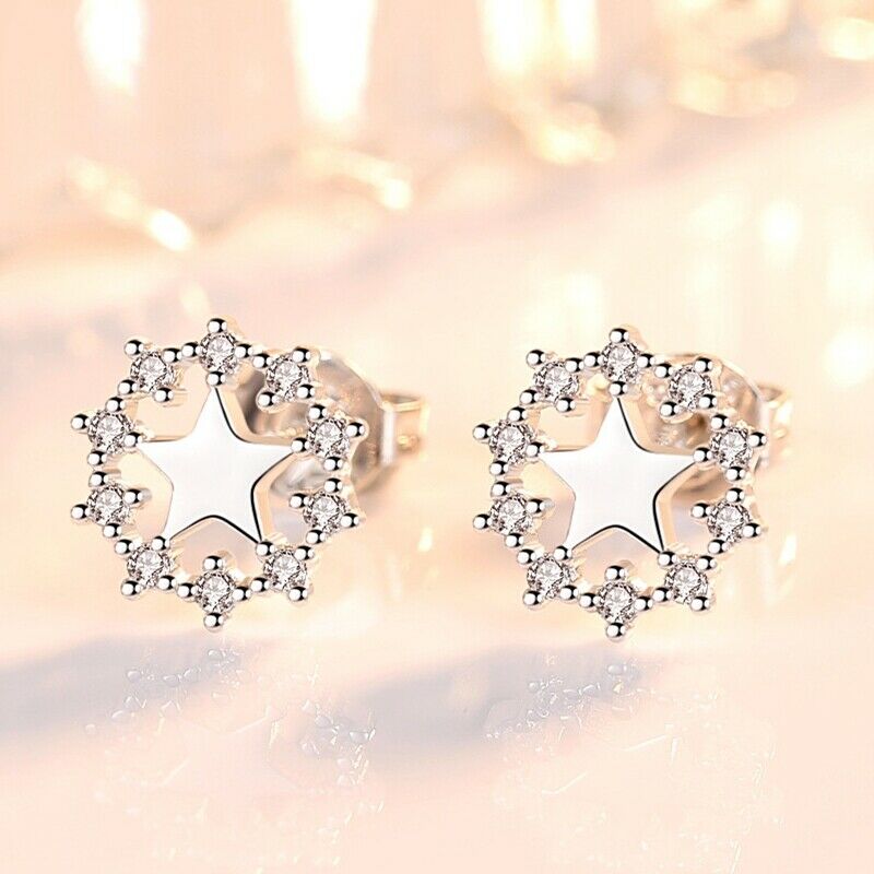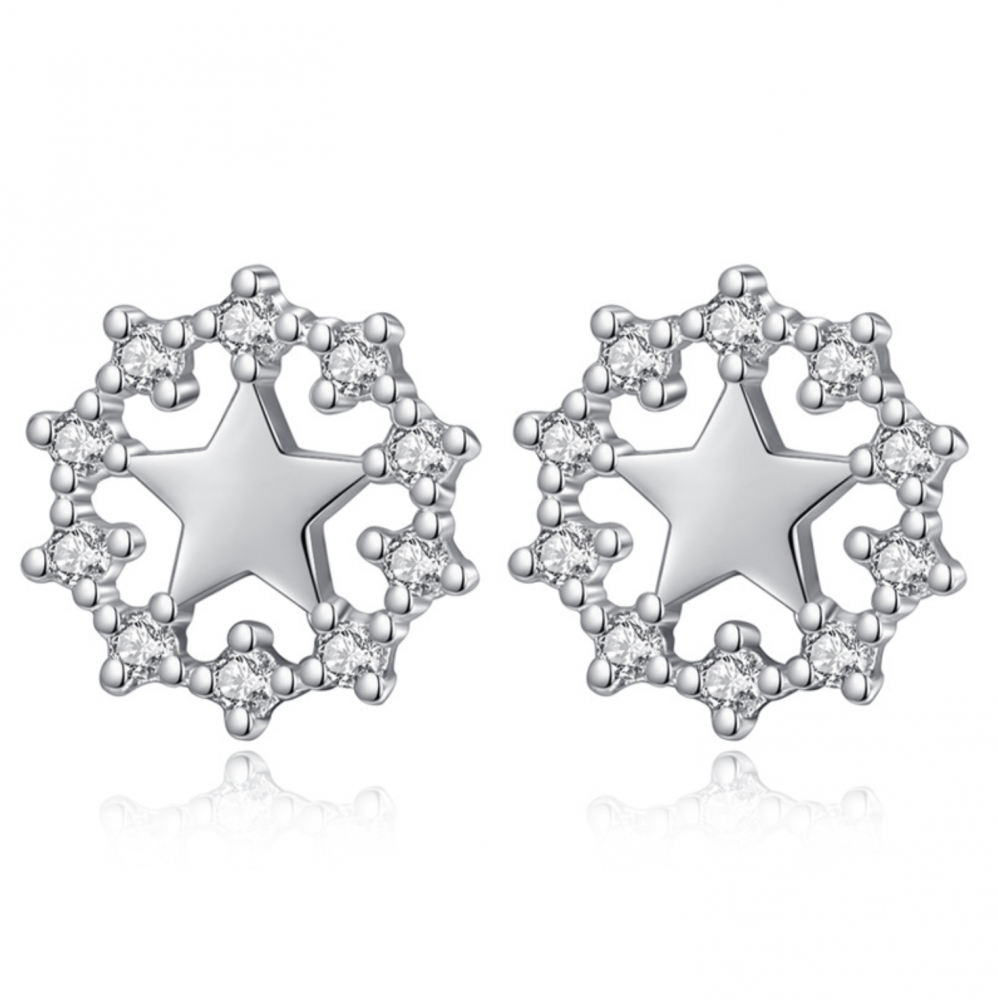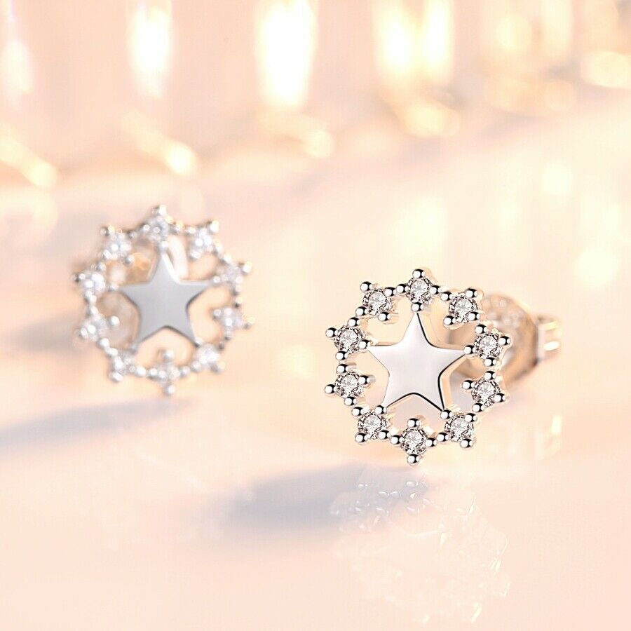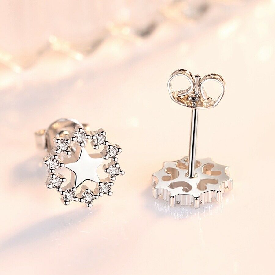 Boucles d'oreilles à tige en forme d'étoile de Noël en plaqué argent et zircone pour femme