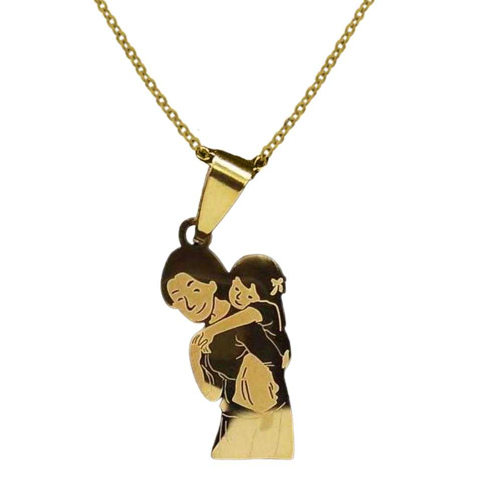 Chaîne pendentif maman et fille en acier inoxydable plaqué or pour femme