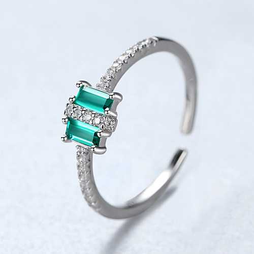 Bague ajustable en argent plaqué avec zircone cubique taille baguette pour femme