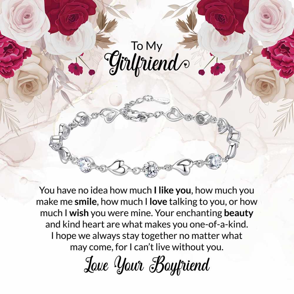 - Détails du produit : Ce bracelet est fabriqué dans un matériau de haute qualité plaqué argent et serti de zircones cubiques. Il est doté d'une fermeture sûre, confortable et facile. Il est accompagné d'une carte message.
