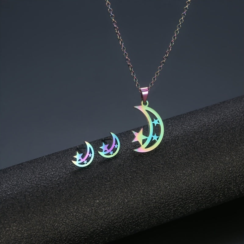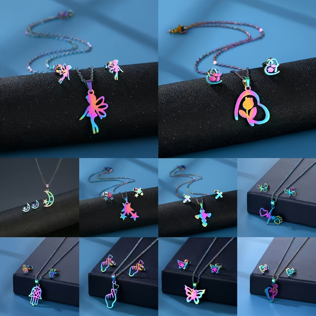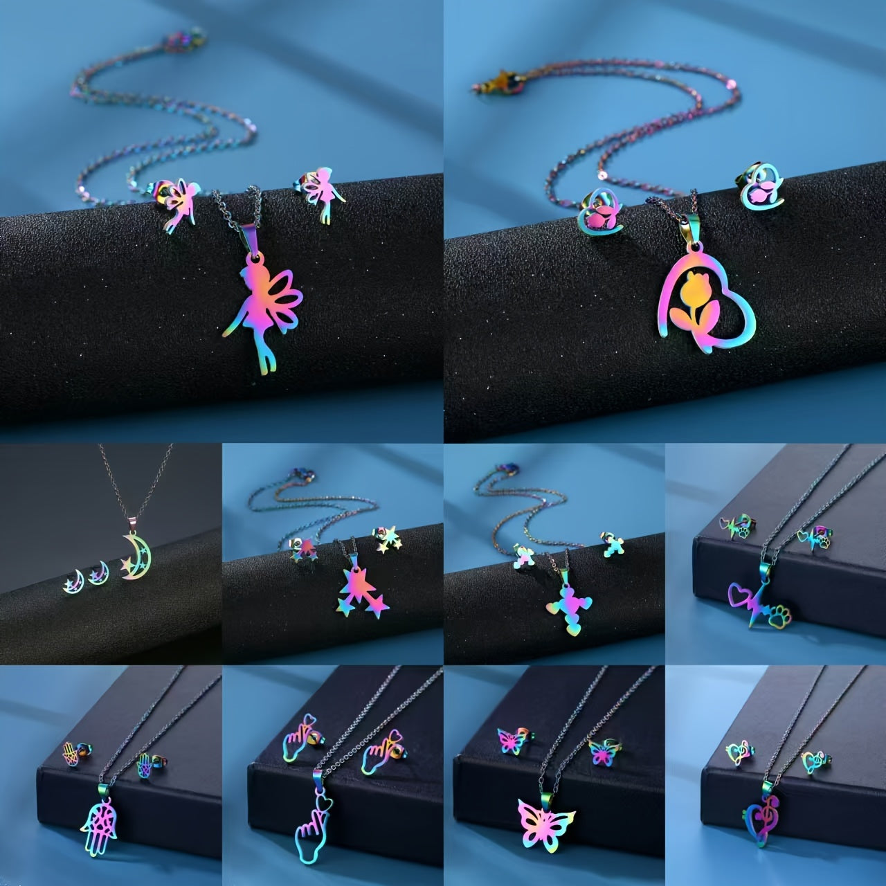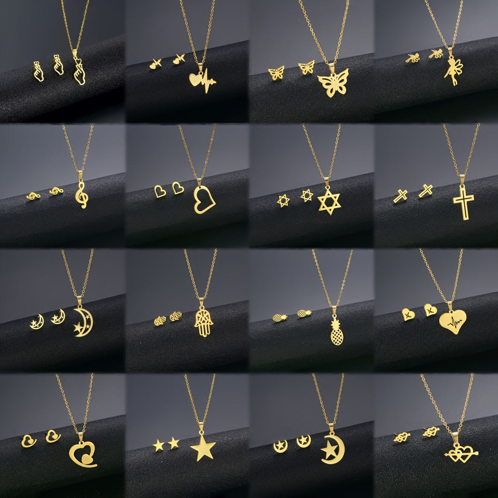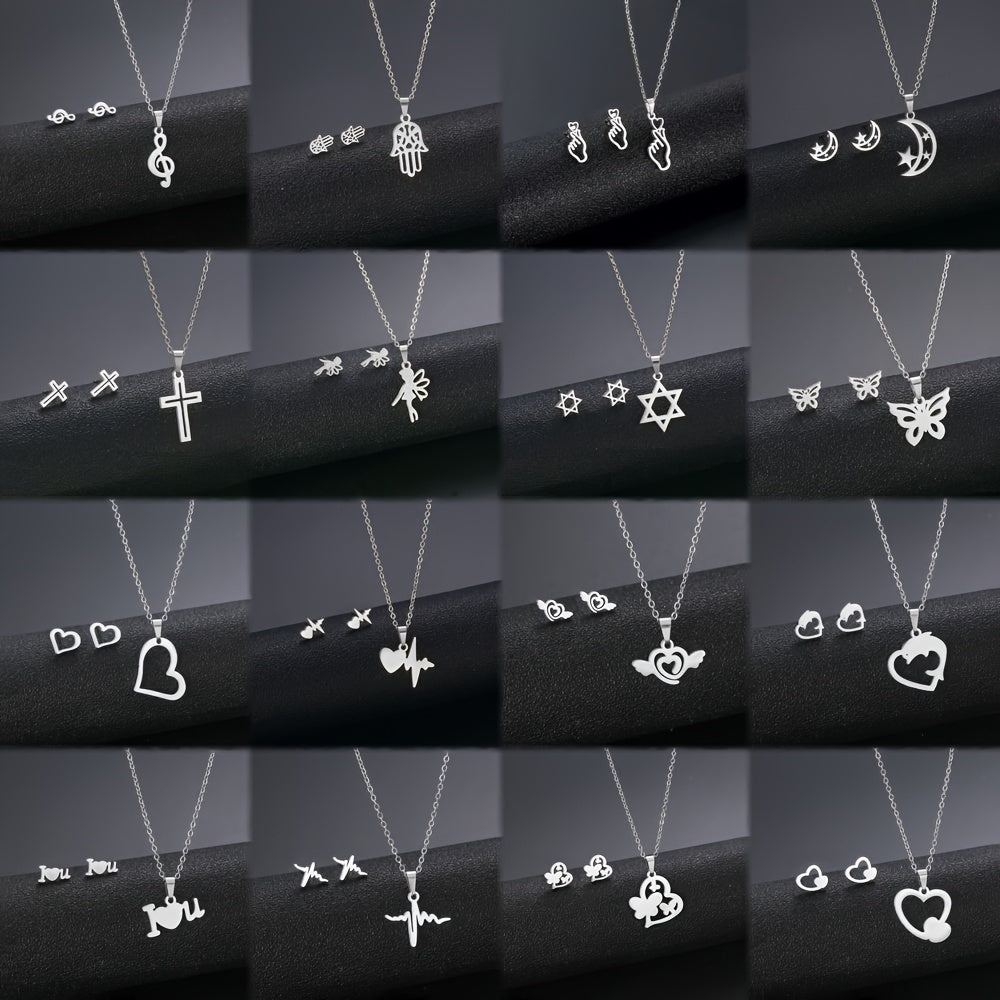 This 10-piece jewelry set includes a stylish stainless steel necklace and earrings combo. It is versatile for daily wear or gift-giving occasions. The set features a high choke design and is made without plating, ensuring long-lasting quality.