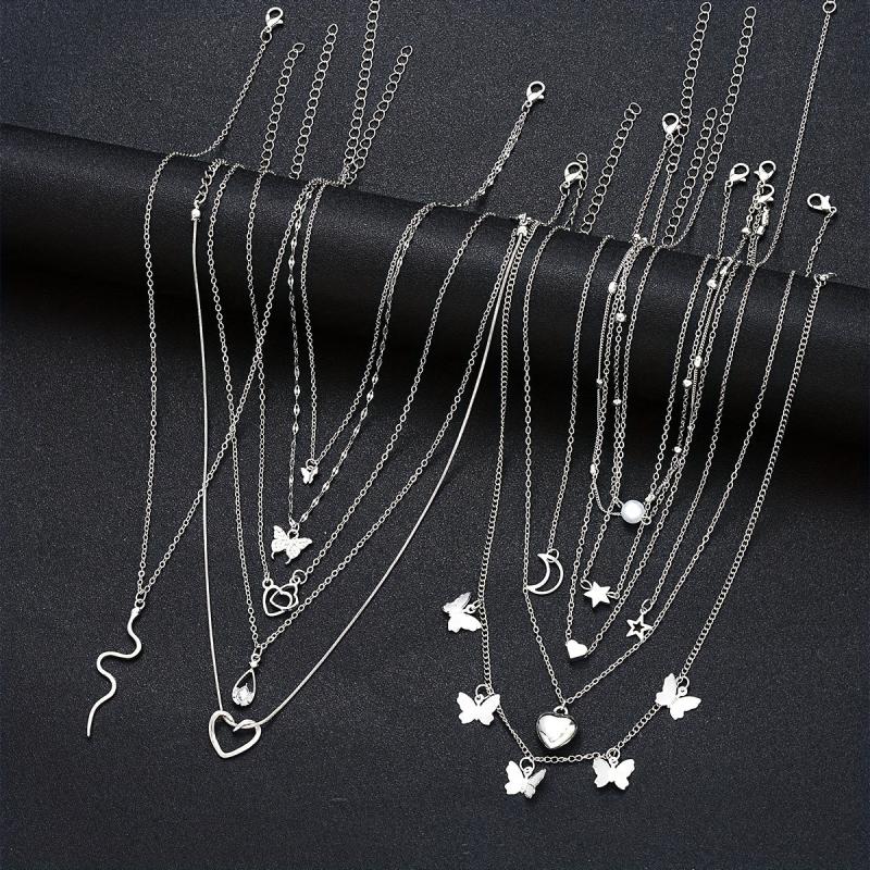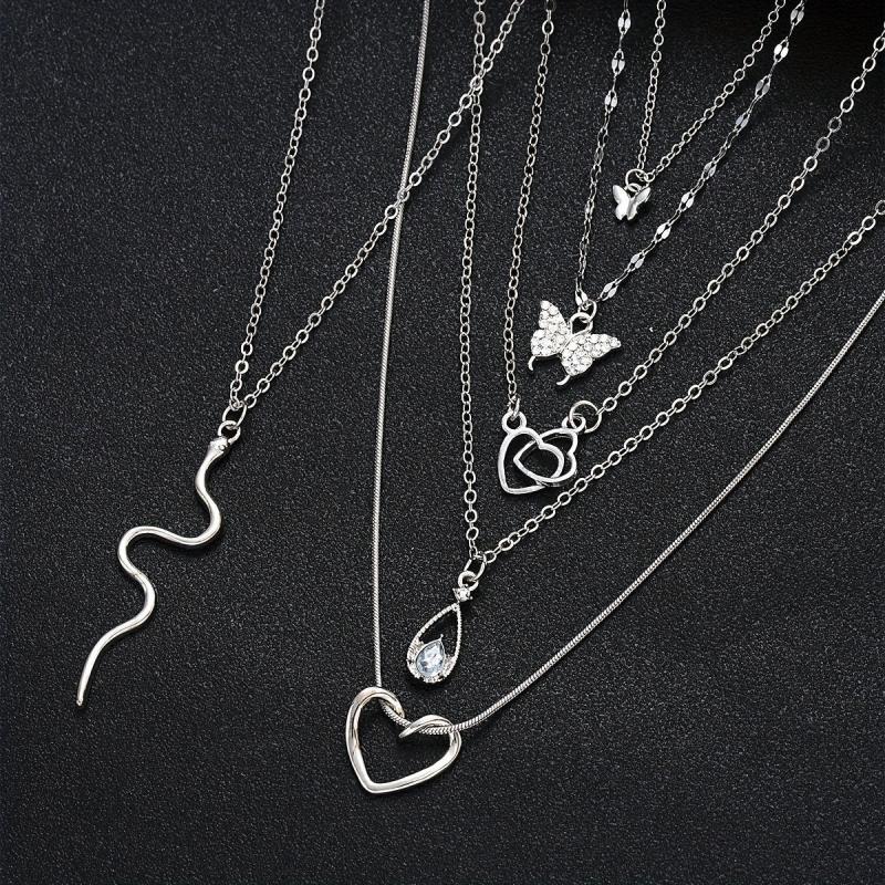 11pcs Heart Snake Butterfly Pendant Necklace Set for Women&