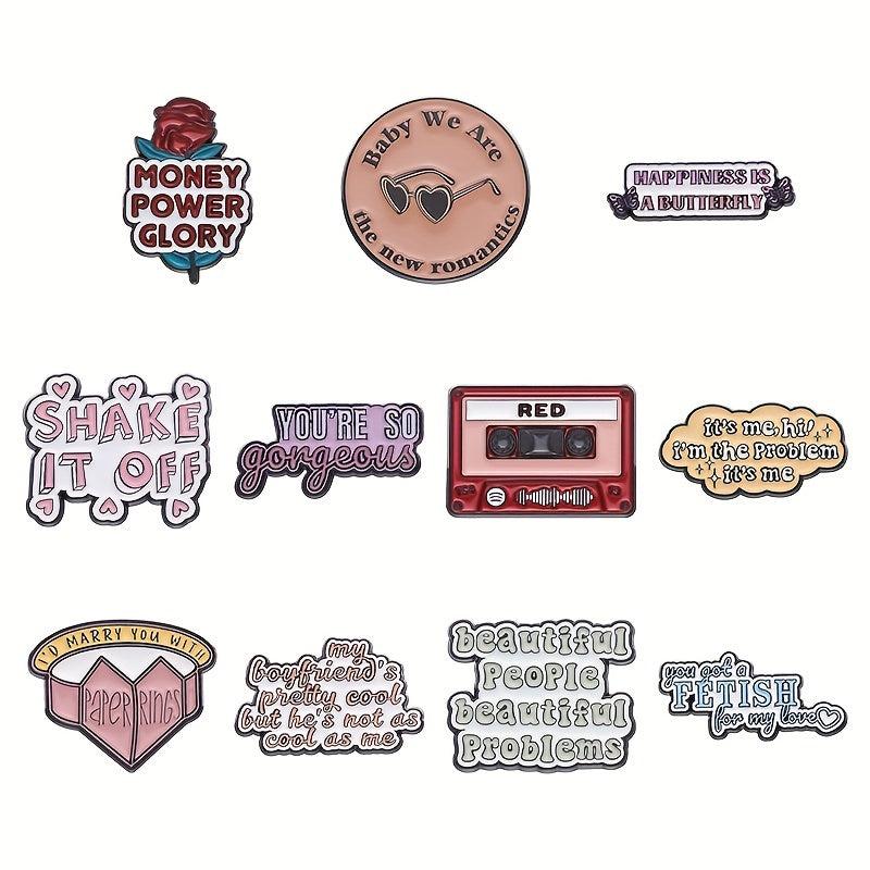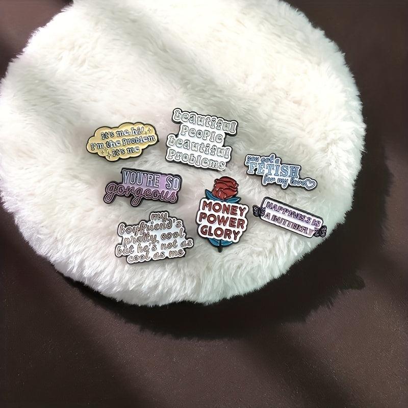 This set of 11 pins features letter pattern phrases that add a touch of humor to your clothing. Perfect for women who love to accessorize with unique and fun pieces.