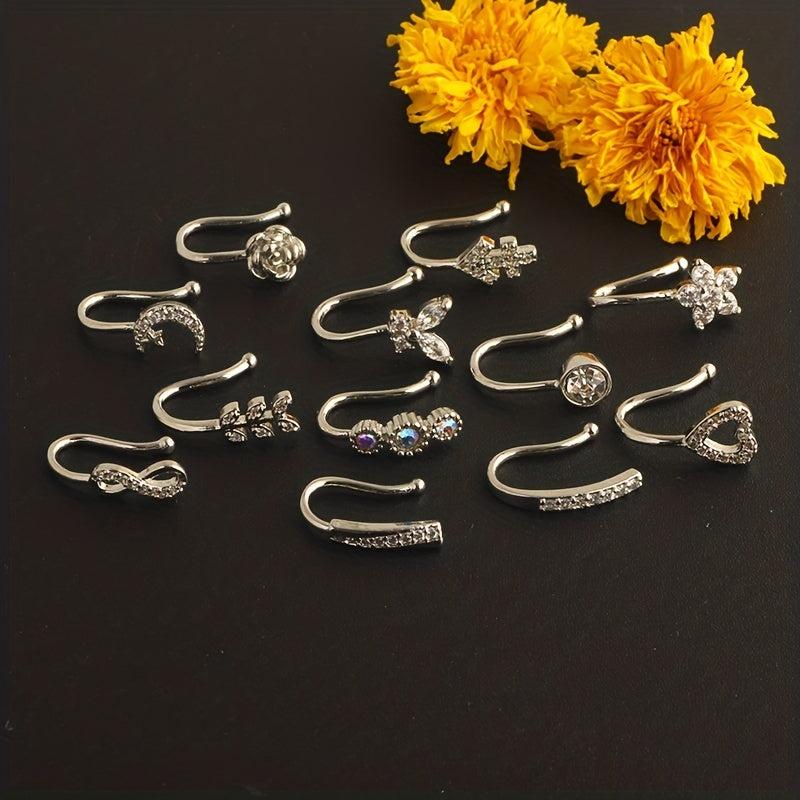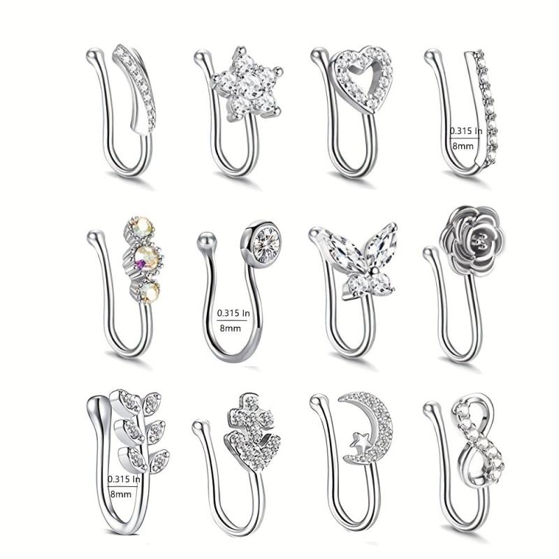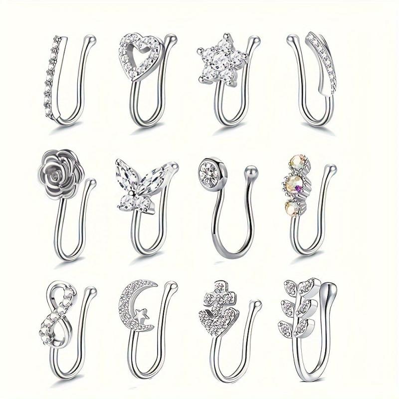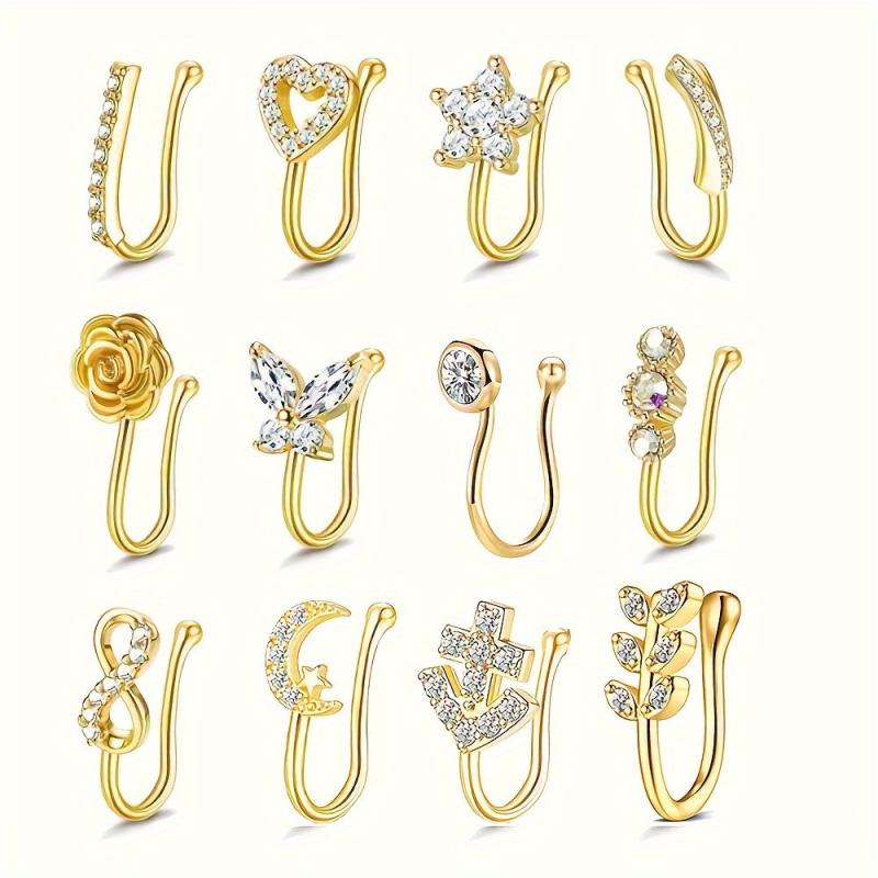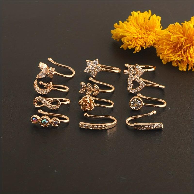 12pcs Copper Faux Nose Cuff Set with Zirconia Inlay for Women